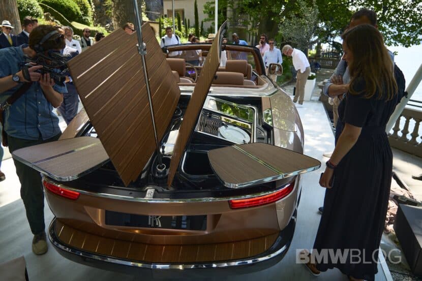 However, the main event is the spectacular wooden rear deck that opens up to provide an umbrella, cutlery, champagne coolers, serving plates, and more. Pop the back of the Boat Tail open and you can have the picnic of Bond villains. It’s equal parts lovely and hilariously over-the-top. Which basically sums up the entire Rolls-Royce brand. Though, I do have to wonder: after the picnic is over, where do you put the dirty plates and forks? I guess that’s Nigel the Butler’s problem to deal with.