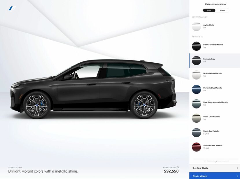 Luckily, the iX is premium enough in BMW’s lineup that they won’t charge for paint colors – except for Storm Bay Metallic and Aventurin Red Metallic. But I can live without them. Remembering Sophisto Grey from the i8 and some earlier cars, I’d have to choose that as my color.