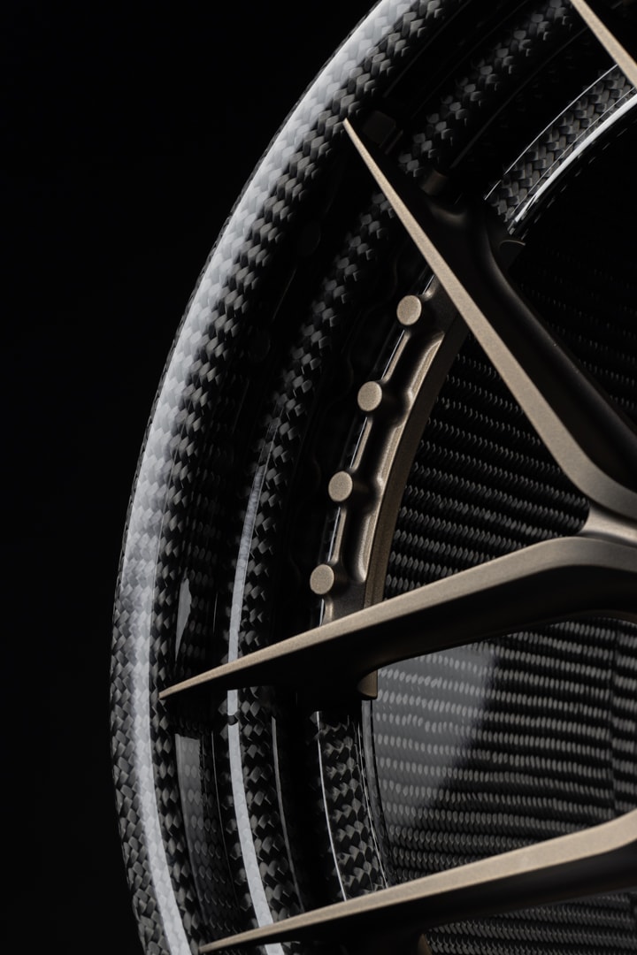 To start, the CRBN Series HX1 wheel will consist of four styles–the HX100 Mesh, HX101 Y-Spoke, HX104 V-Spoke, and HX107 Split 5-Spoke, all of which will be offered in 20, 21, and 22-inch diameters. HRE also went to great lengths to make sure no seam lines were visible, by creating a perfectly seamless outer layer of carbon. Looking at the carbon barrels up close, in these new press photos, they look stunning.