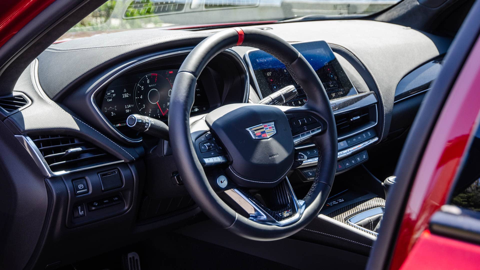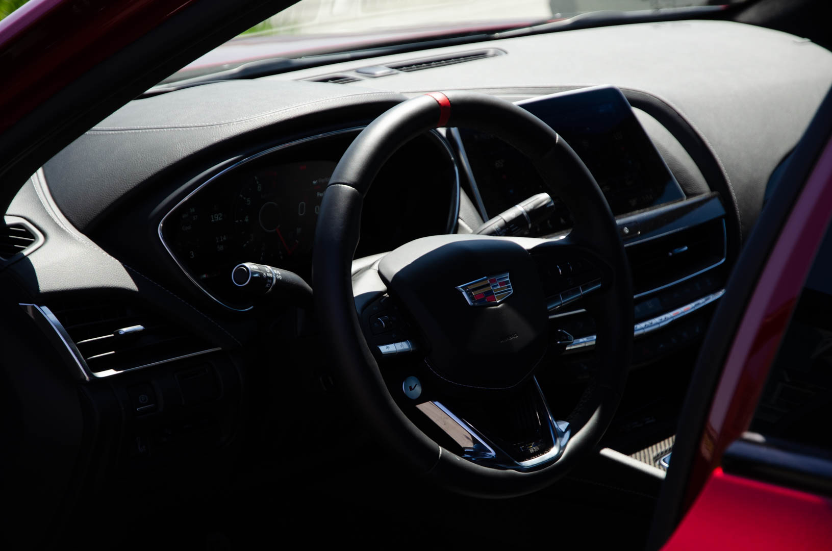 Modern Cadillacs aren’t known for stellar interiors, especially if you’re used to German brands. While their designs are fine and their tech works well enough, they often have cheap-ish materials in places that would appall most German car customers. The CT5-V Blackwing’s cabin is mostly very nice, but it still suffers from typical GM cost-cutting in some areas. One very minor niggle that did bother me a bit was its turn signal stalk, which not only feels cheap but is placed awkwardly, making it slightly uncomfortable to use. It’s a minor thing but one you have to use constantly, so it can become annoying.