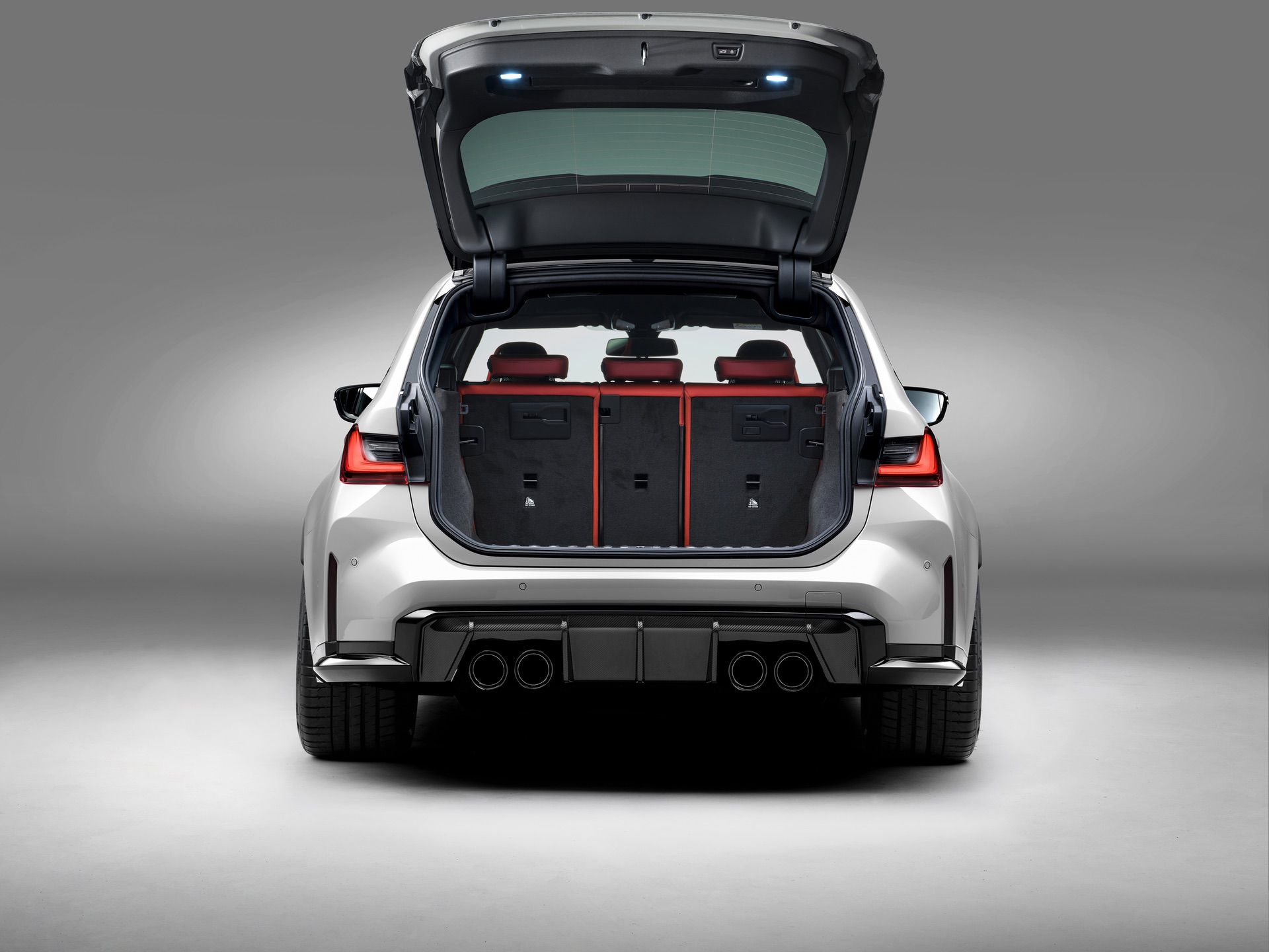At an additional cost, the M3 Touring can be fitted with an M Race Track Package encompassing those ceramic brakes along with front bucket seats. It also includes the M Driver’s Package, track-oriented tires, and carbon fiber trim strips on the inside. Other noteworthy extras include the laser headlights found in the M3 Sedan, but they’re not the sharper-looking lights introduced with the 3 Series LCI. As for the quad 100-mm exhaust tips, they come in high-gloss black but can be optionally had in chrome as well.