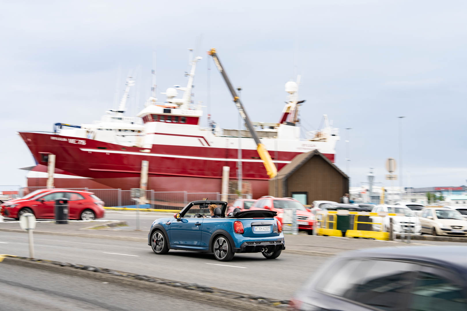 The sights change depending on where you go in Reykjavik. Much of the city is filled with brightly colored buildings and homes, scenery that can counteract the gloom of winter months, which gives it a lively, cheerful feel, perfect for an open top MINI with 228 horsepower and 235 lb-ft of torque.