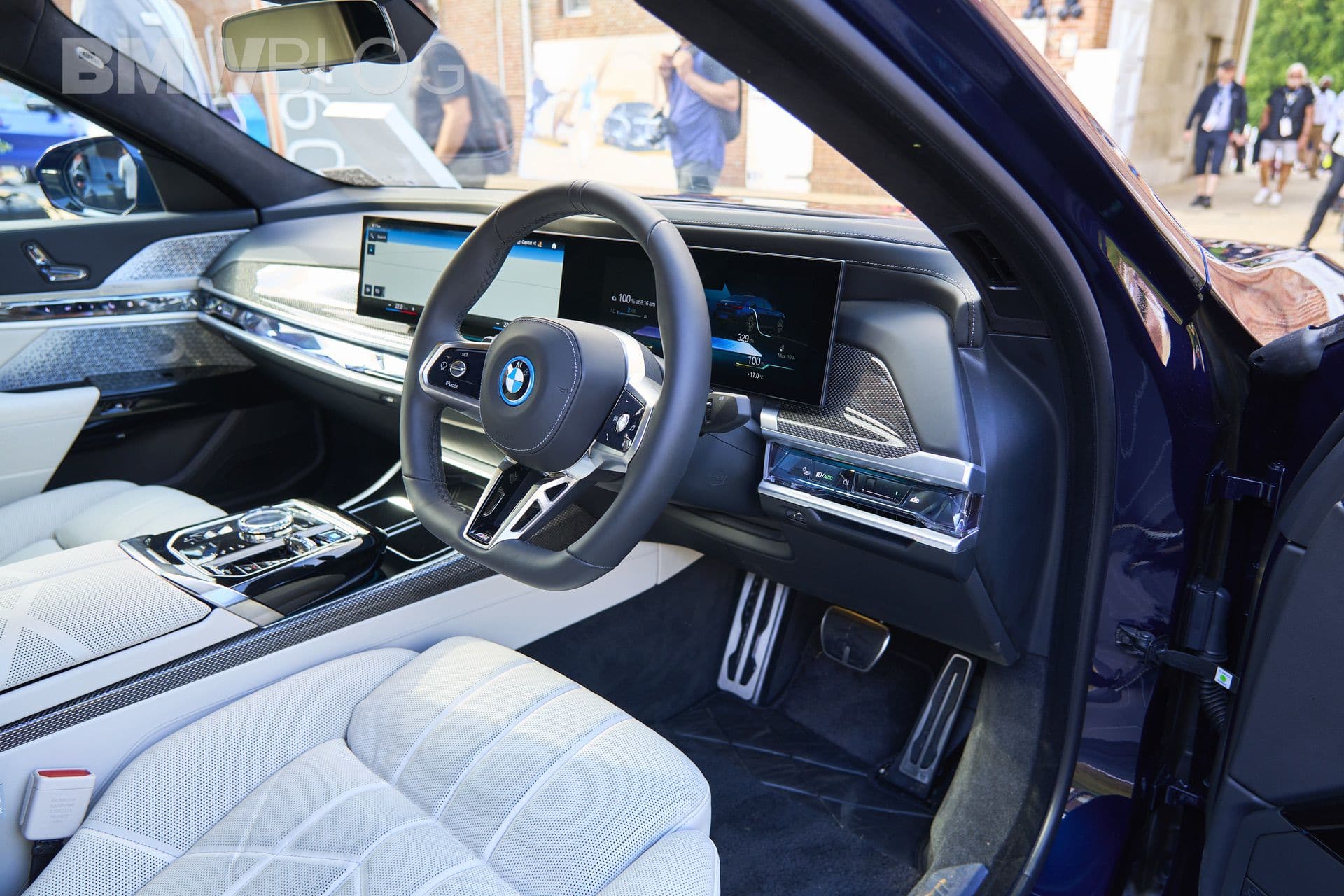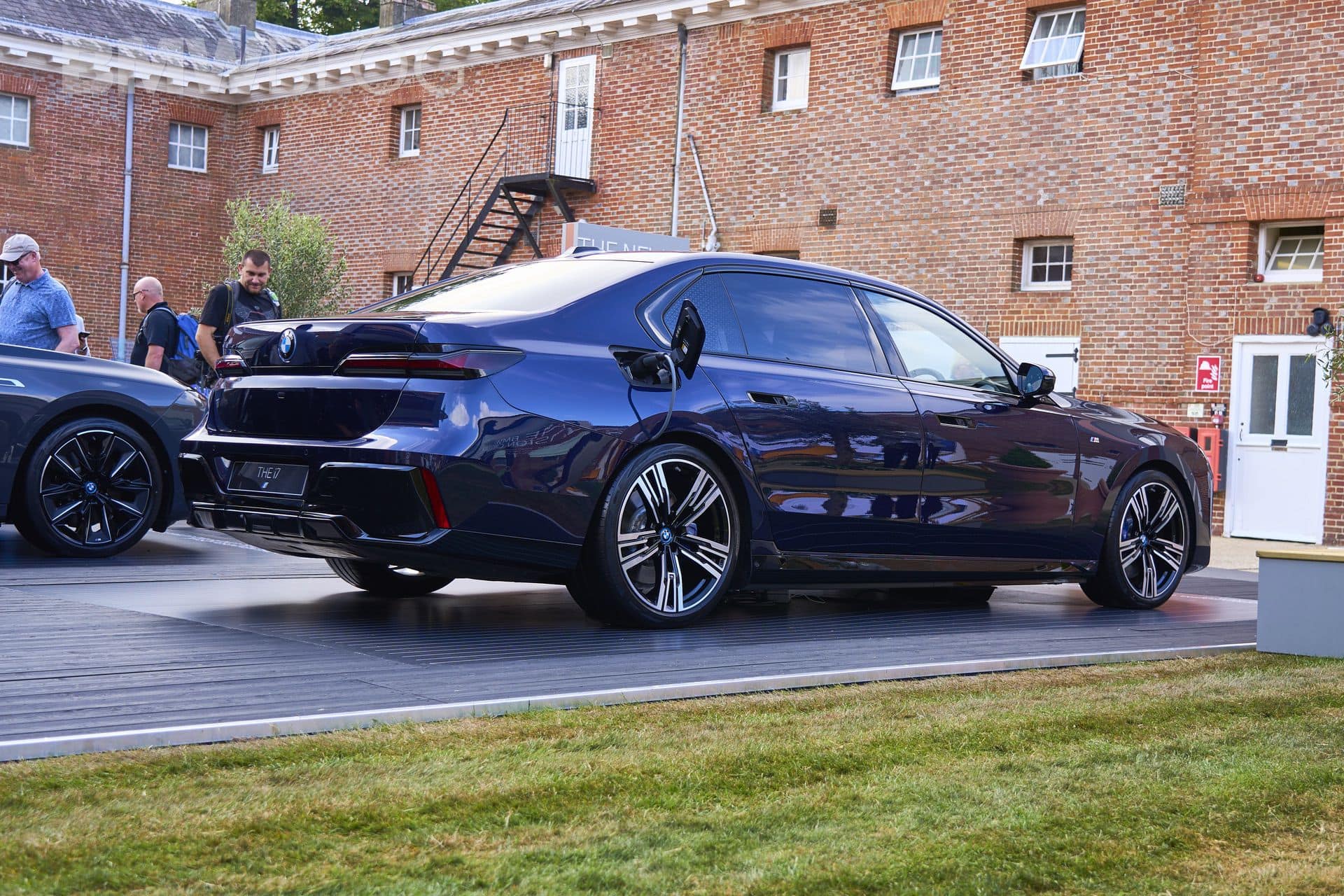 Looking large and in charge, both literally and figuratively, the 2023 BMW i7 has arrived at the Goodwood Festival of Speed. Visitors can discover a right-hand-drive example of the electric luxobarge, which comes painted in Tanzanite Blue Metallic as one of the Individual colors available for the flagship. Needless to say, we immediately jumped at the opportunity to shoot the first 7 Series without a combustion engine.