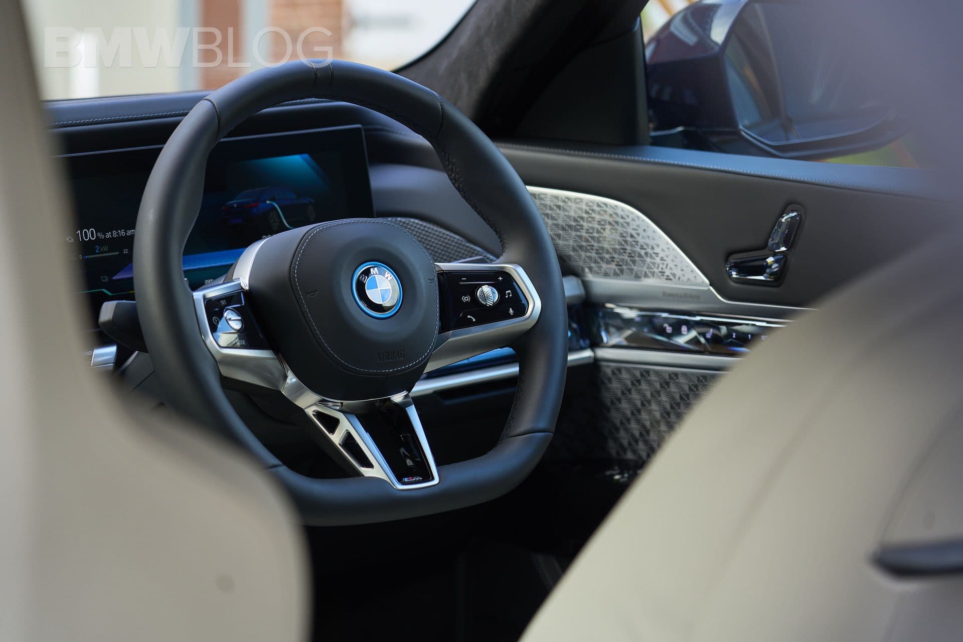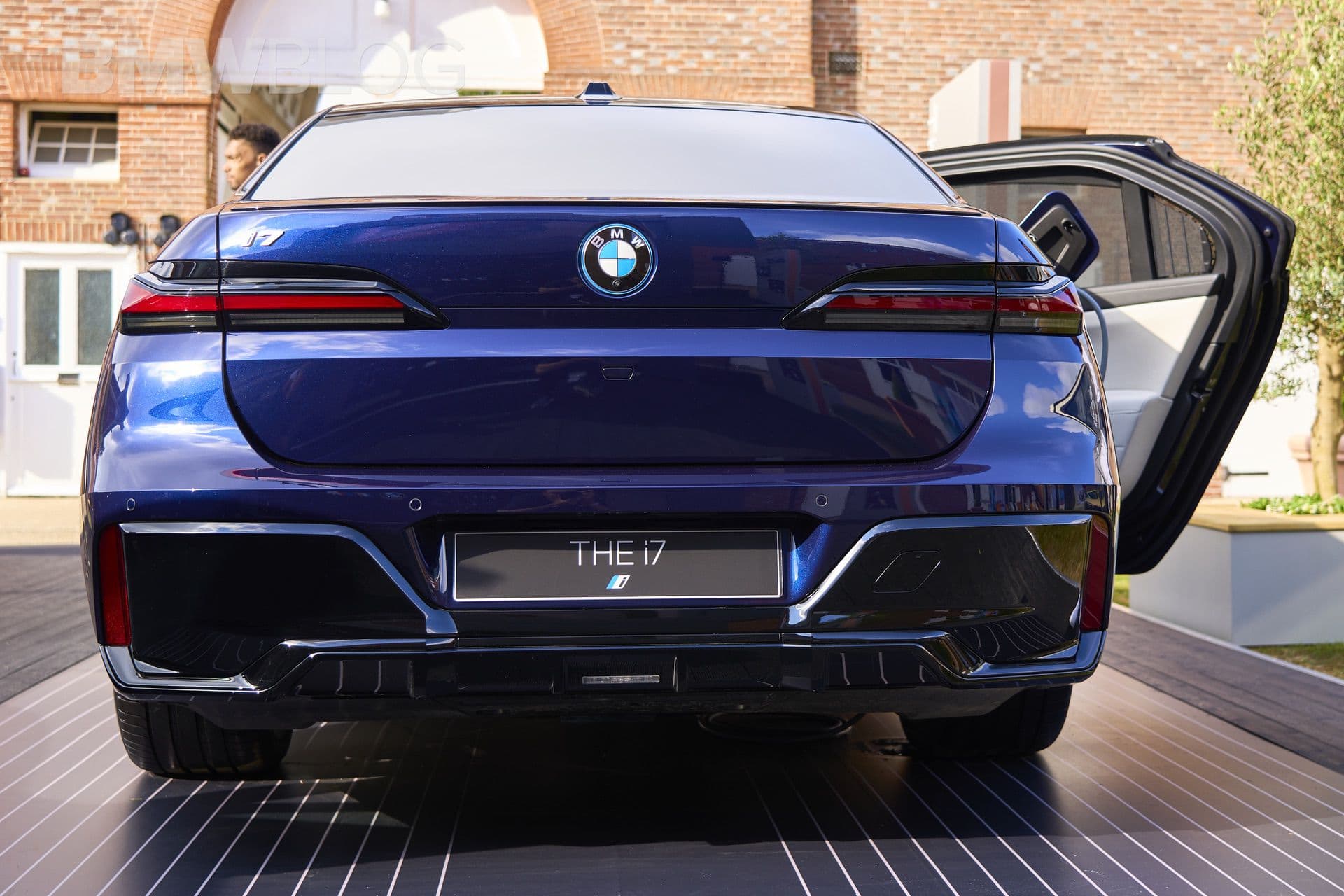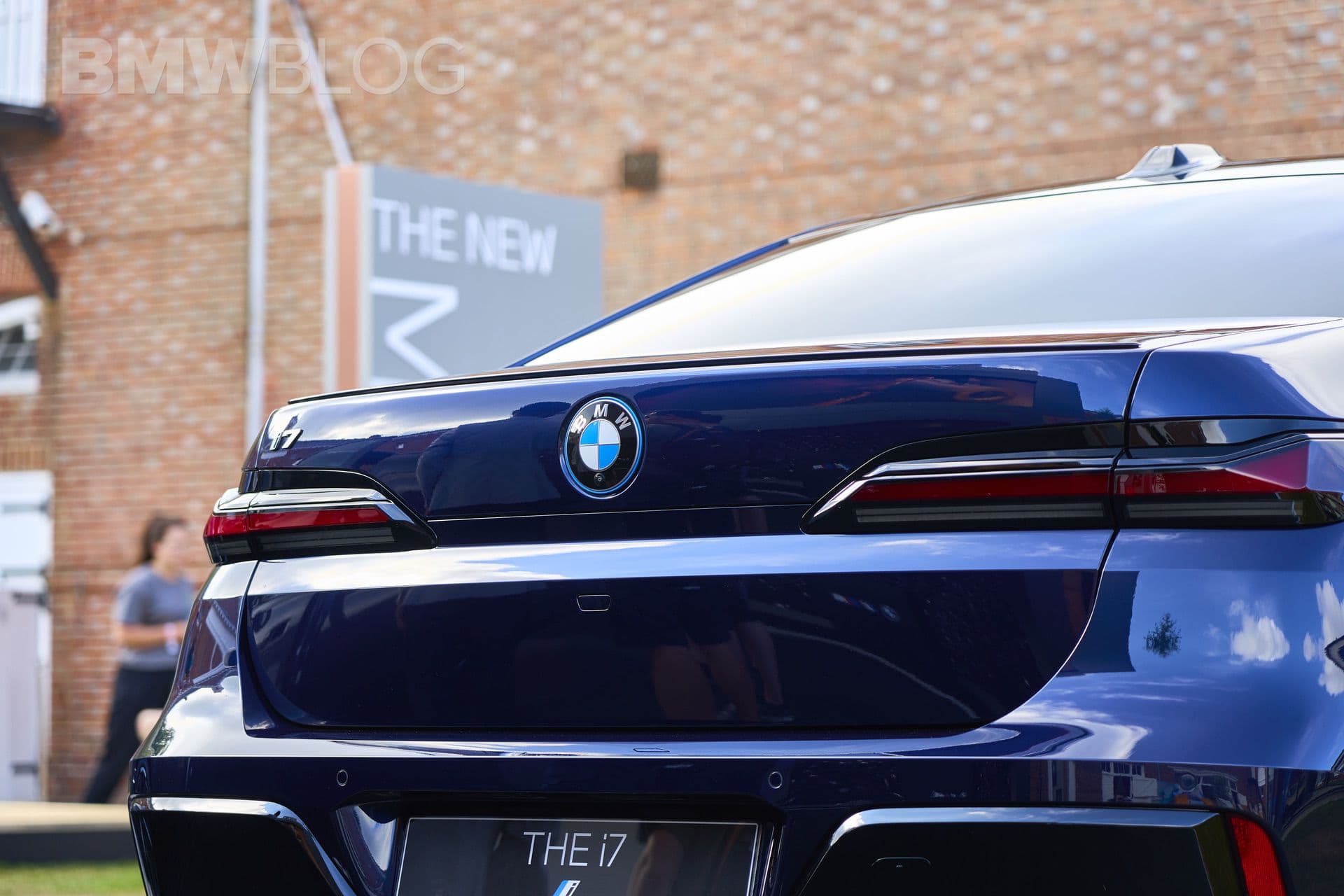 With a starting price in the United States of $119,300, the i7 xDrive60 certainly doesn’t come cheap. The paint alone is an extra $1,950, while the optional 21-inch M Aerodynamic wheels with a bi-color finish command a $1,300 premium. Much like the two-tone M760e also on display in Goodwood, the zero-emissions 7er gets a subtle trunk lid spoiler as part of the M Sport Professional Package. It also contains the Extended Shadowline Trim and can be upgraded to include M Sport Brakes with blue calipers as depicted here. Alternatively, the brake calipers can be had in black.