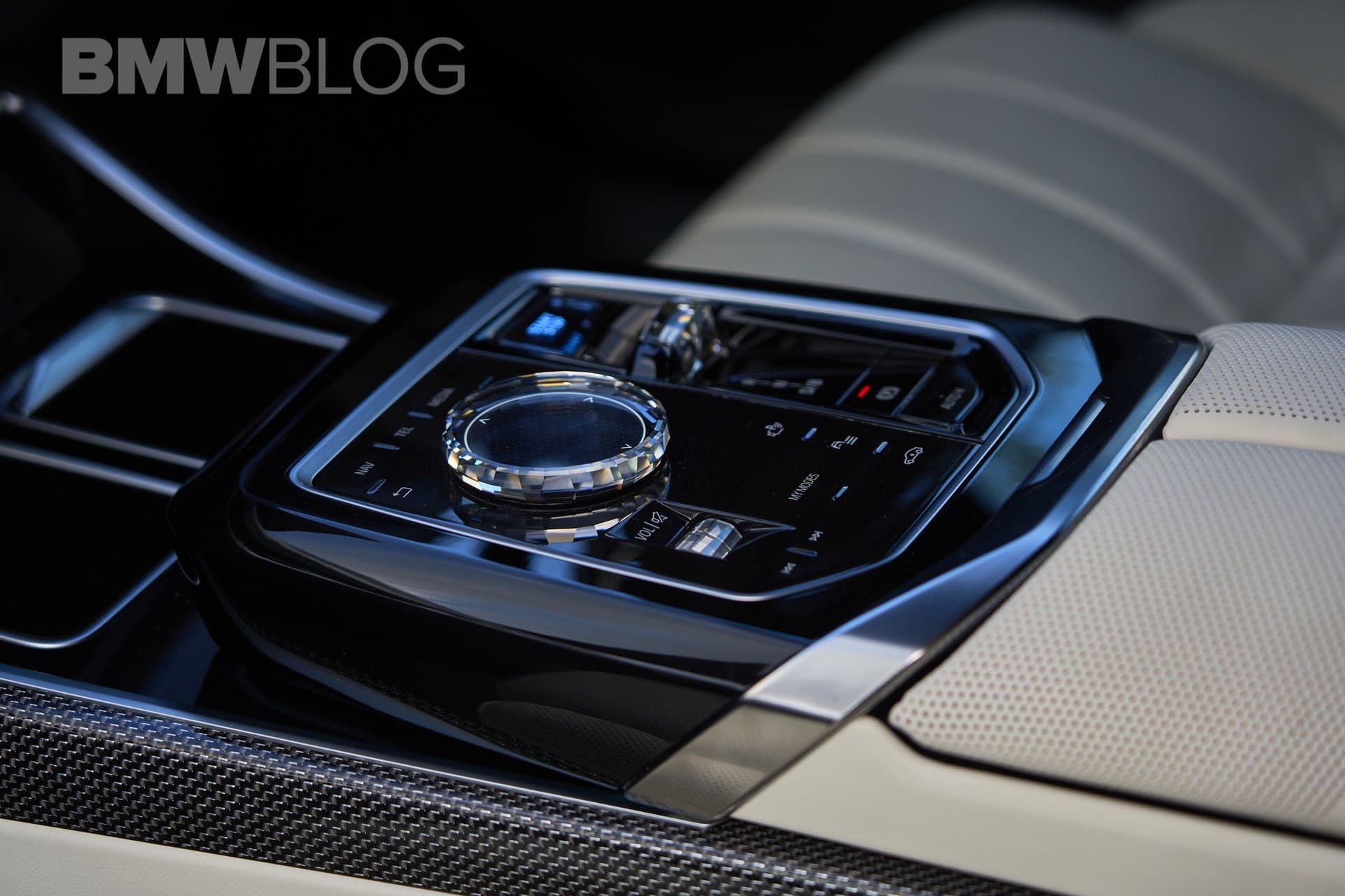 While the G70’s exterior has generated quite the controversy, the consensus regarding the interior is that BMW has done a stellar job. Seen here is the cabin with a Smoked White upholstery that will likely require a lot of attention to maintain over the years. Fit for a high-end vehicle attending a major car event, the i7 has the $4,800 Bowers & Wilkins Diamond Surround Sound System.