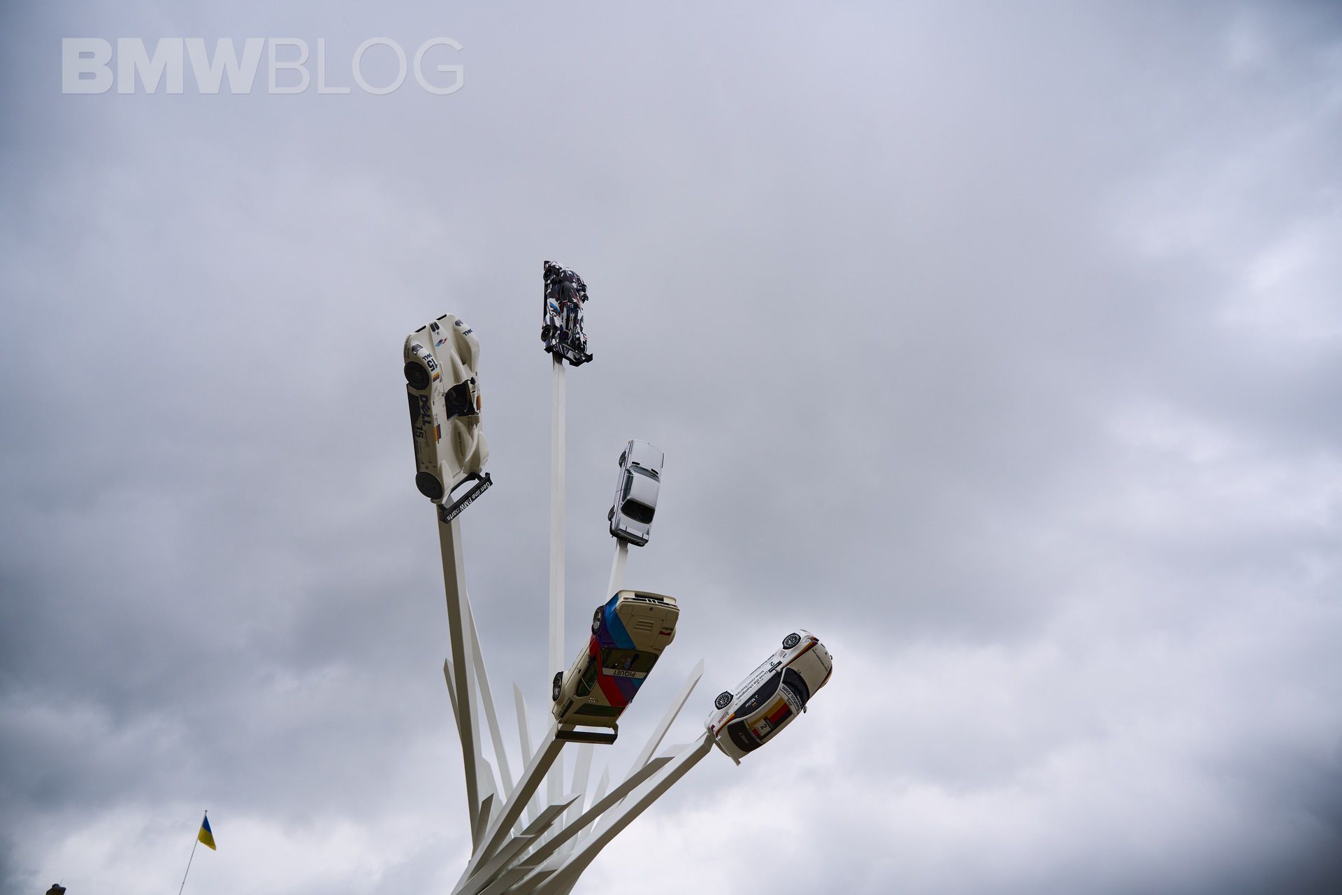 Four iconic BMW race cars have been attached to the sculpture: a 3.0 CSL from BMW UK’s heritage fleet, Jörg Müller’s WTTC-spec 3 Series, the V12 LMR, and an M1 Procar. Mind you, these are real vehicles rather than some mockups, but their engines have been taken out. For obvious reasons, all the fluids have been removed.