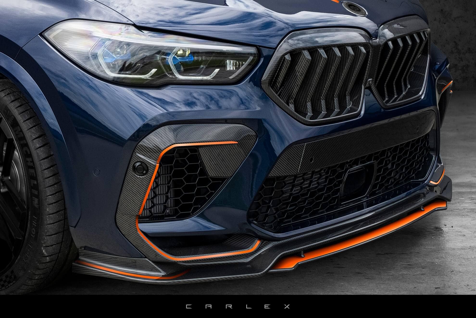 The BMW X6 M is already an opulent vehicle from the get-go by trying to fuse a large SUV with the silhouette of a sleek coupe. Polish aftermarket specialist Carlex Design decided to go for an even more eccentric look by installing a comprehensive carbon fiber exterior package with striking orange accents for a contrasting effect.