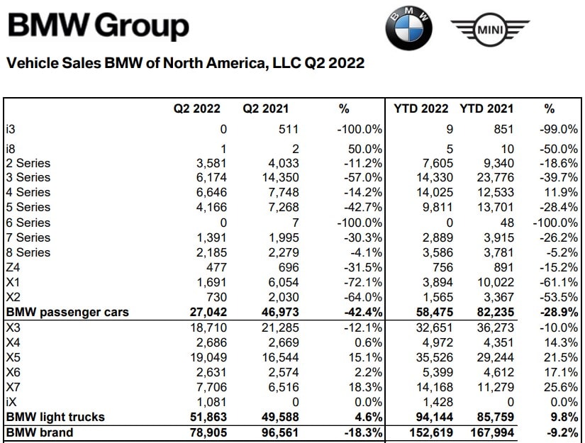 As a final twist, the X7 also outsold the 3 Series in the second quarter of the year and is lagging only 162 units behind in YTD sales.