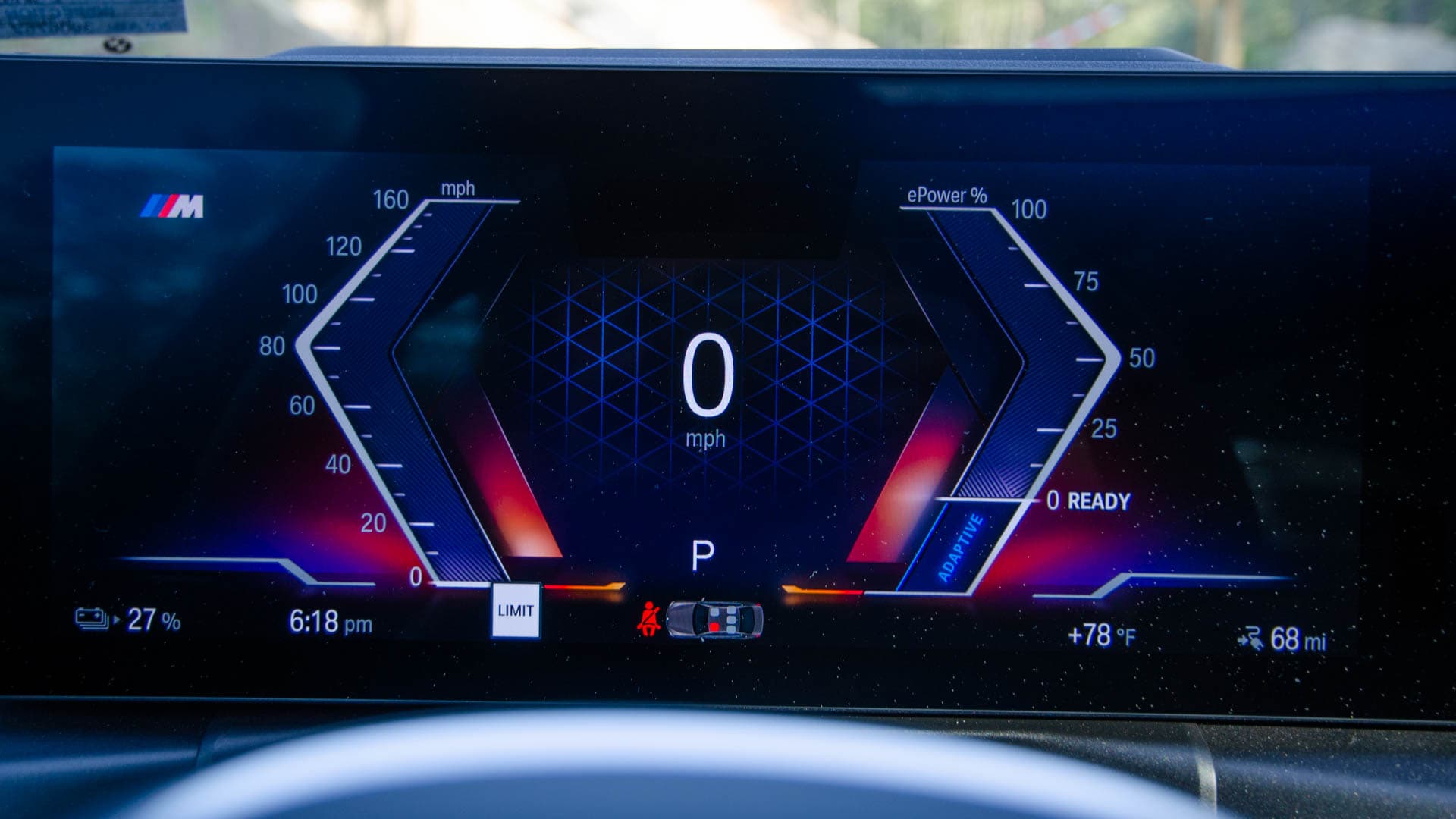Speaking of power, the BMW i4 M50 is a seriously quick car. Its dual electric motors make 536 horsepower and 586 lb-ft of torque, which are fed by an 80.7 kWh battery pack. While using launch control, on a pretty dusty, dirty surface, I was able to get a 3.9 second 0-60 mph time. That’s quick but it’s not quick enough to beat something like the Model 3 Performance. I’d like to see what it can do with a proper launch surface. Though, to be fair, 0-60 mph times don’t actually matter in the real world. Instead, what matters is that full-throttle acceleration in the i4 M50, combined with its spaceship noises, feels like being launched out of the Death Star and it’s hilarious good fun.
