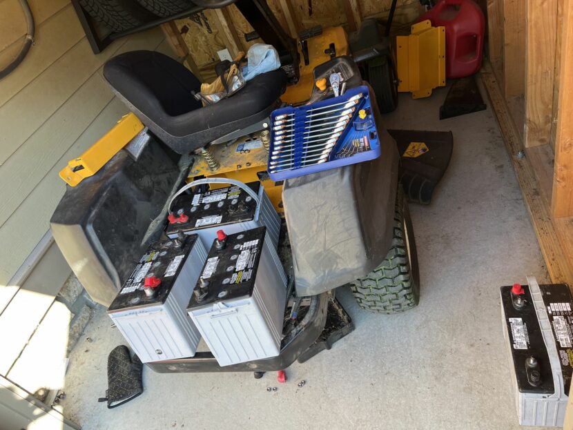 Back in 2017, we bought our electric lawnmower with zero research. It seemed a good fit for us with solar panels, electric vehicles and why not add an electric riding mower. Sadly my lack of research on what batteries were used in this mower and COVID shortages would come back to bite me. Much to my amazement, the repair manual was online and a dealer that had these same batteries in stock. These are super common as they were also used in boats and golf carts.
