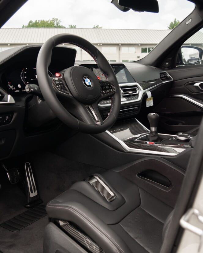 This particular BMW M3 comes from North Carolina at the local Hendrick BMW dealership. The Fashion Grey M3 also comes with the 50 Years of M anniversary retro badges, a unique offering from BMW M for 2022 models. Being a non-Competition model, this G80 M3 is as pure as it can get today, thanks to its six-speed manual transmission.
