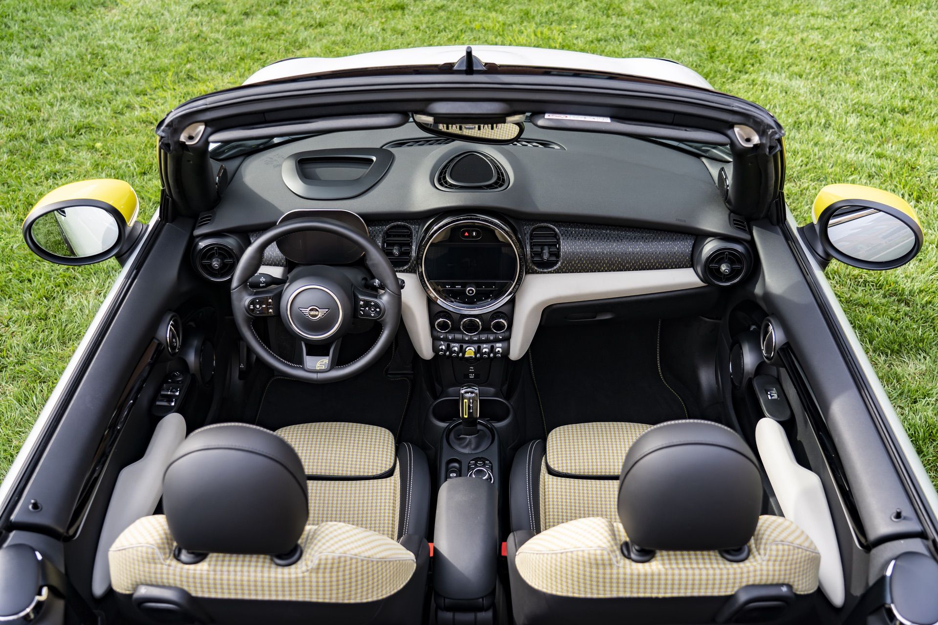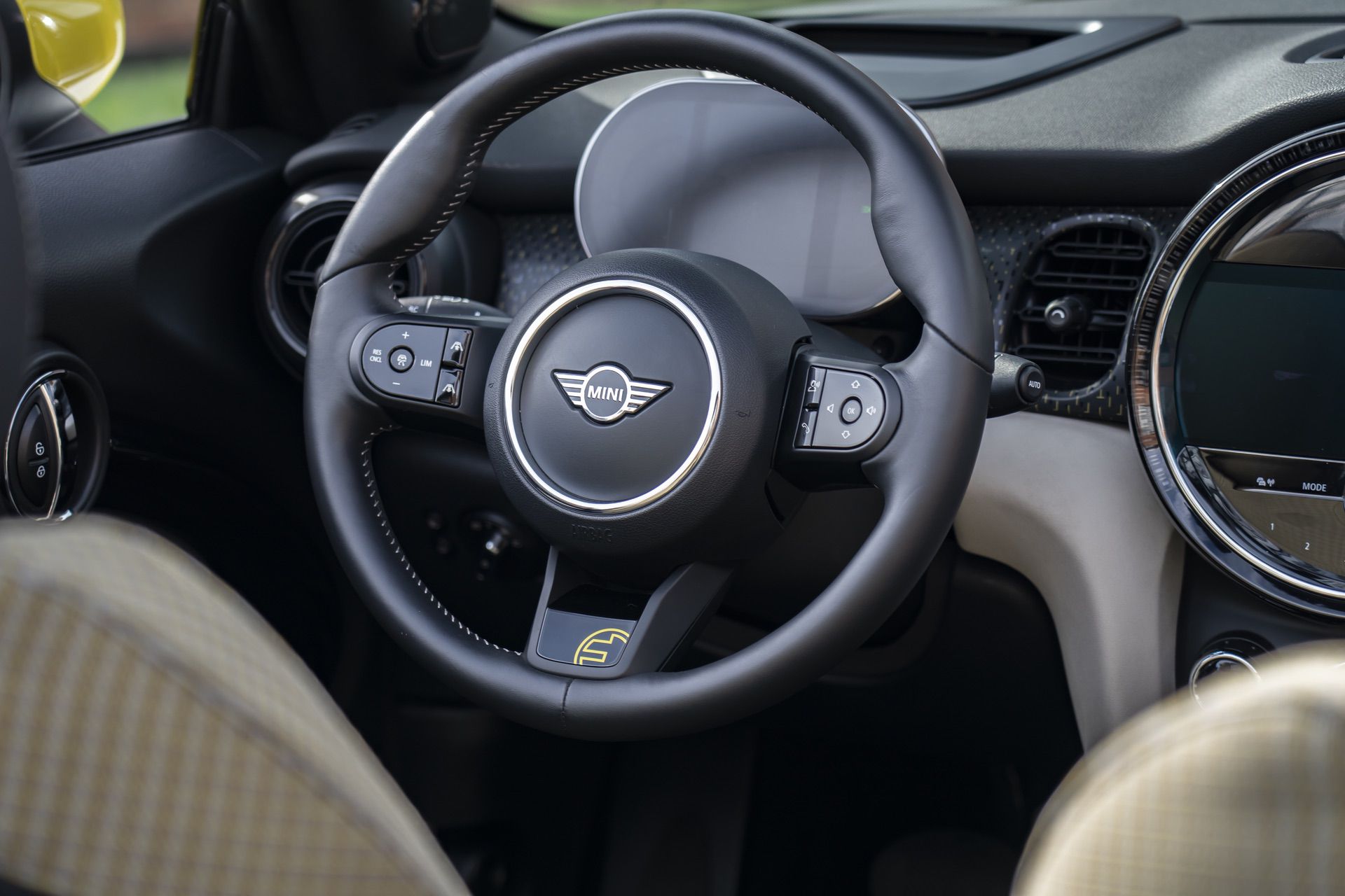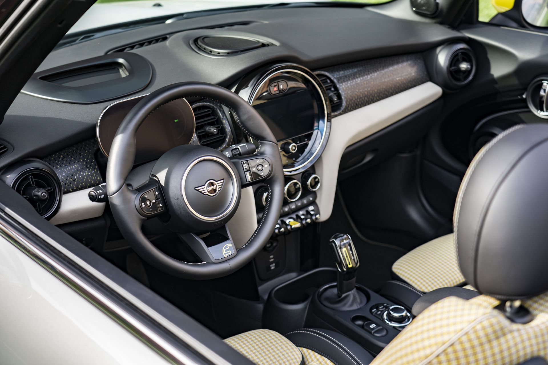 Naturally, the convertible looks the same as the standard car, just without a roof. That’s a good thing, though, as the Cooper SE is a smart looking little car. It has cool aerodynamic wheels and bright yellow accents, which work well with its typically adorable MINI design. As with all MINI Convertibles, it looks pretty good with the top up, too, as it keeps the hart-top’s form pretty well.