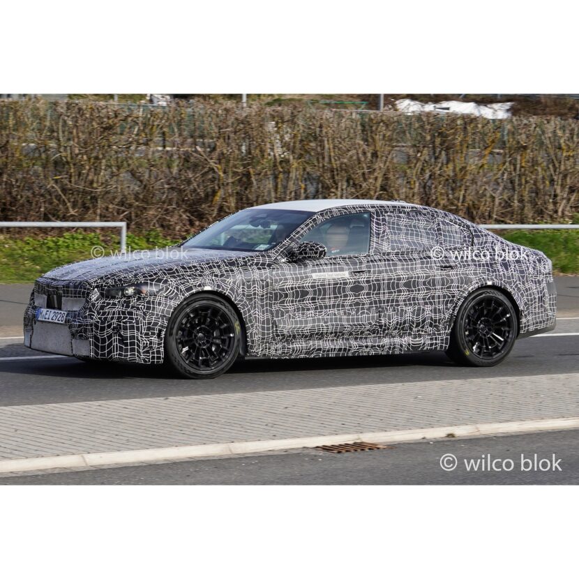 On the side of the car, barely visible in these photos, are “Hybrid Test Vehicle” badges, proving what we already knew—the G90 M5 will be a hybrid. In fact, it will pack the same plug-in hybrid powertrain as the upcoming BMW XM, a twin-turbocharged 4.4-liter V8, paired to an electric motor, which is rumored to make more around 750 horsepower. The full-on XM is said to be getting around 750 horsepower, so the M5 will likely be in the same ballpark.