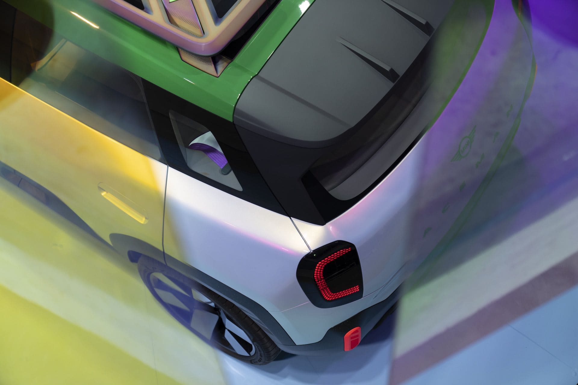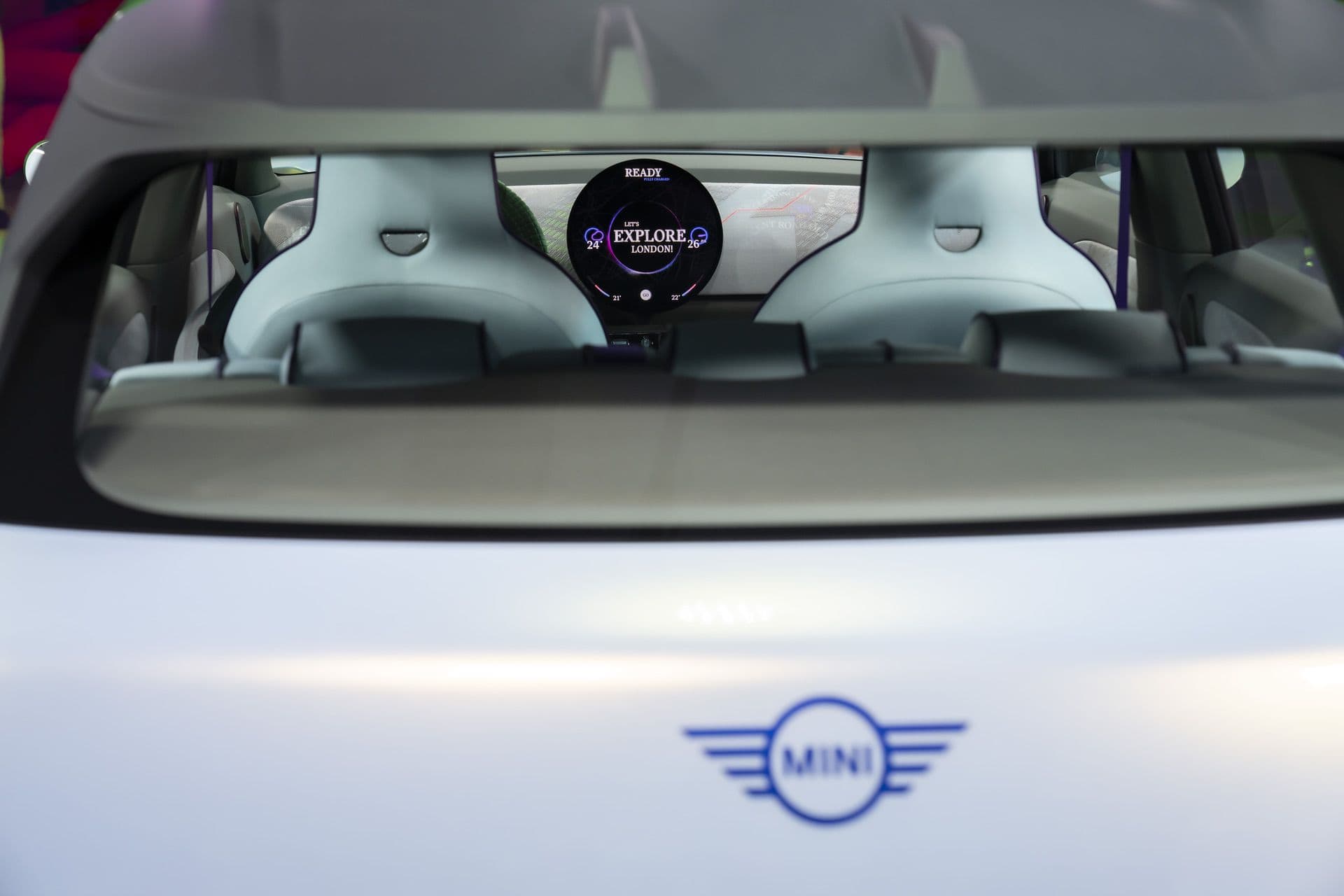 Of course, there are Union Jack taillights. It wouldn’t be a MINI without them. The headlights get a new feature, though, called Companion mode. Essentially, it uses the headlights to track and follow you as you walk in front of the car, which might be nice at night. Also, the flat grille panel illuminates, changes color, and pulses to the beat of your music.