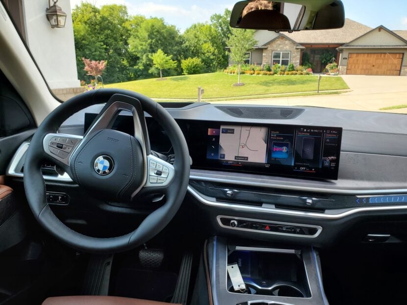 Inside, the BMW X7 Facelift gets the massive new iDrive 8 screen, borrowed straight from the BMW iX. Not only is it the same screen but it’s implemented the same way, with a floating design, so it now hangs over the expansive piece of wood trim on the dashboard. In the photo gallery below, you get the chance to see some real life photos of the 2023 BMW X7 Facelift: