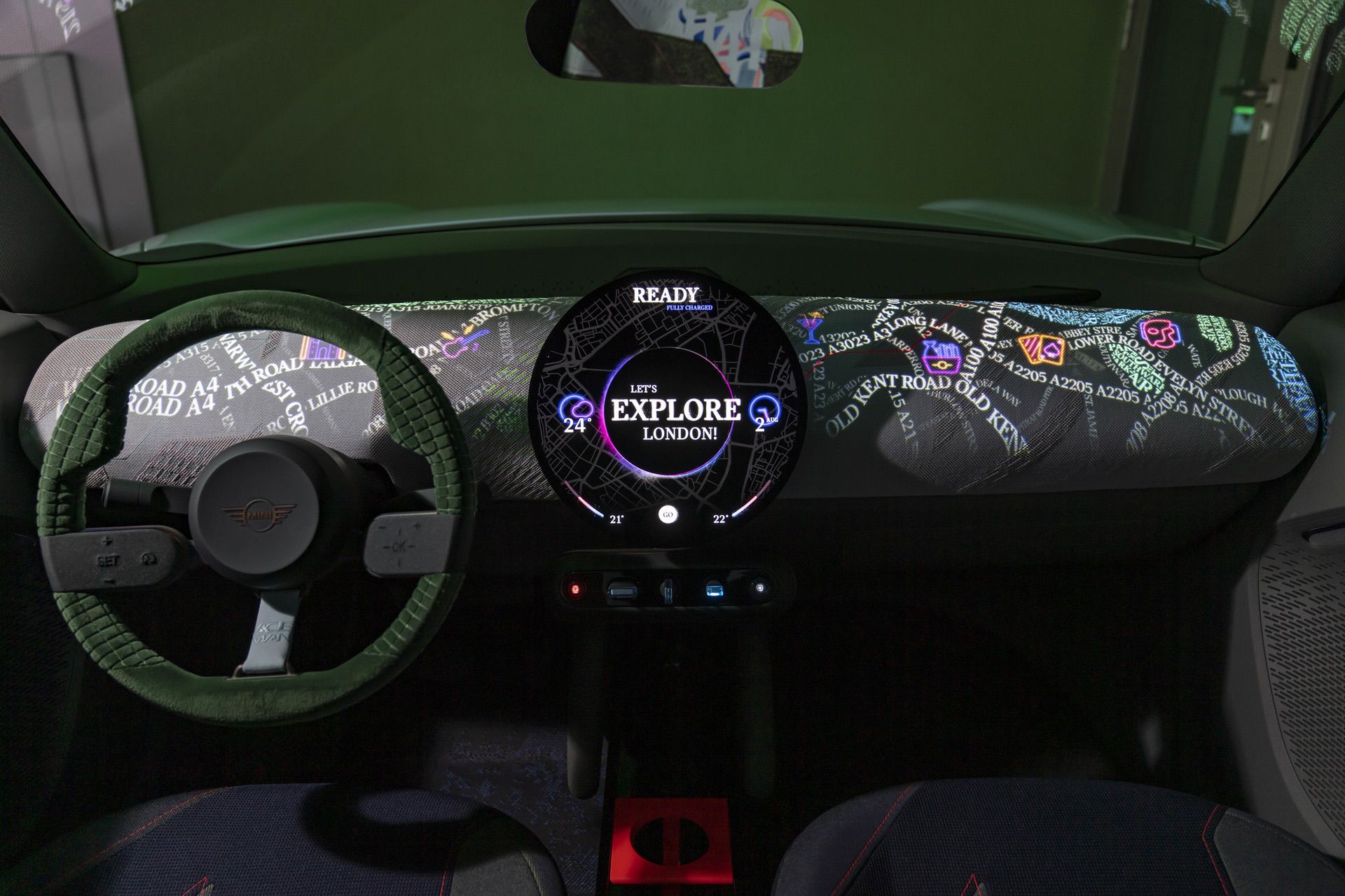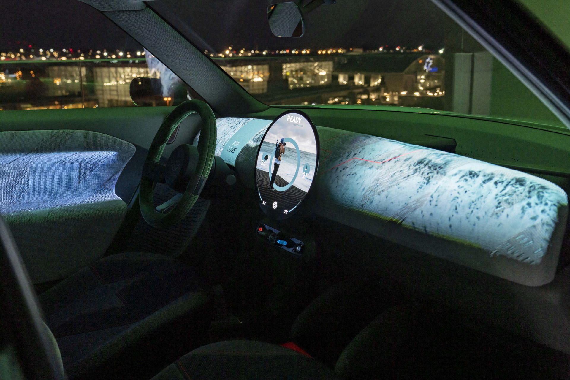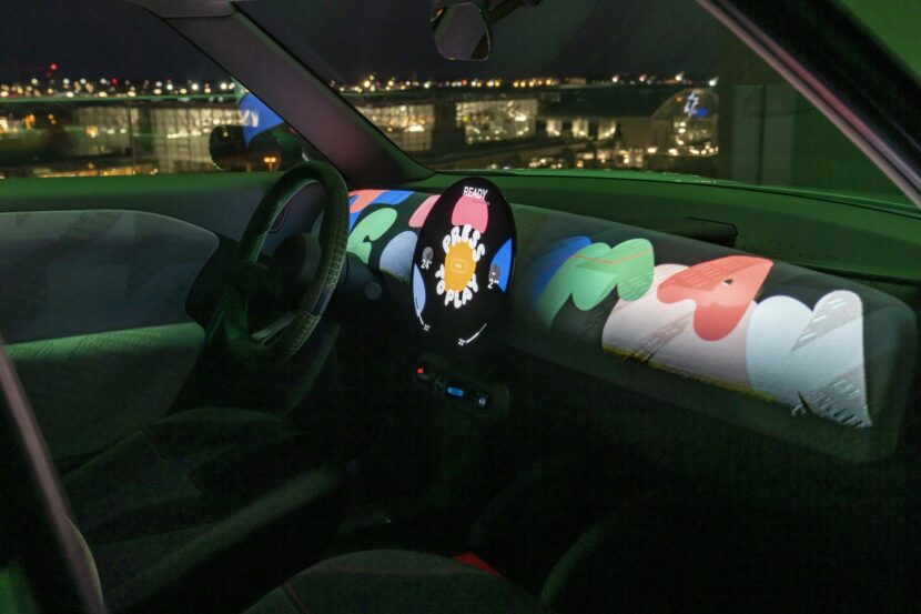 The interior is where the MINI Aceman really shines. The massive OLED display takes center stage and is joined by a toggle switch bar below it for accessing the audio volume, parking brake/gears, and choosing from the three available Experience Modes to individualize the big screen. For instance, the Personal mode allows you to change the main photo of the screen, as well as customize different settings in the cabin. The personal images, which can be sourced from the cloud, can also be displayed on the dashboard, and sort of float around. It’s neat way to sort of decorate the inside of the MINI. There is also a secret gaming mode which will be unveiled at the Gamescon in Cologne, Germany between August 23-28. We will also have a video demo of that mode on August 23rd.