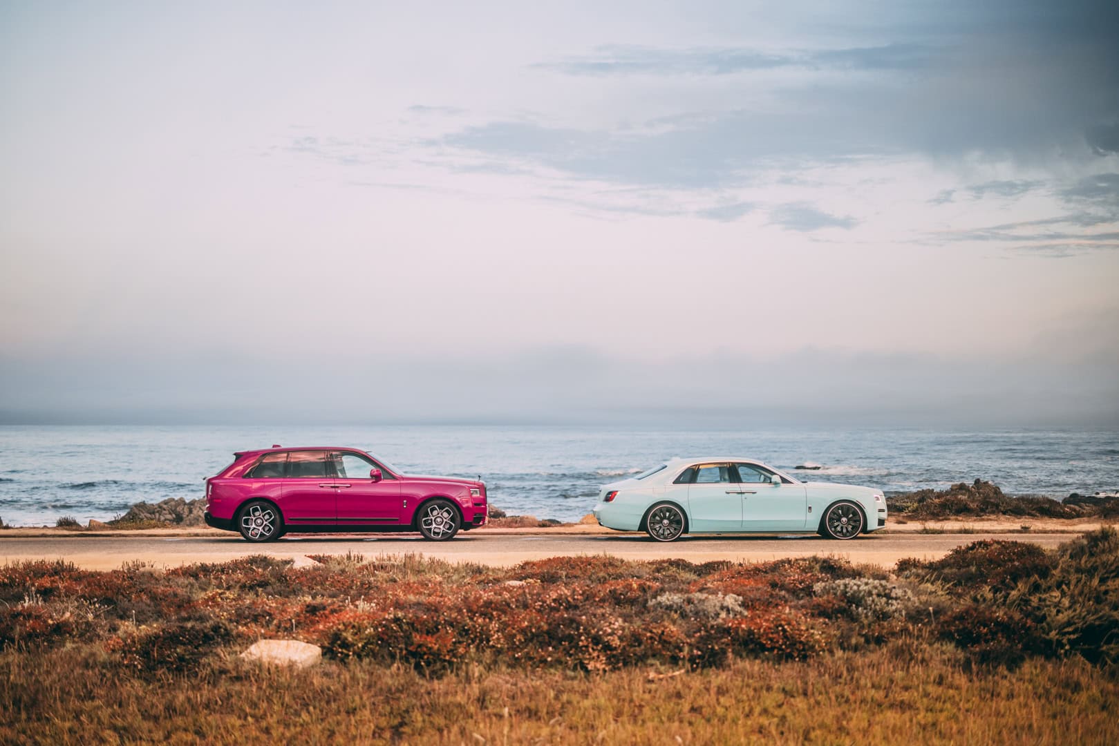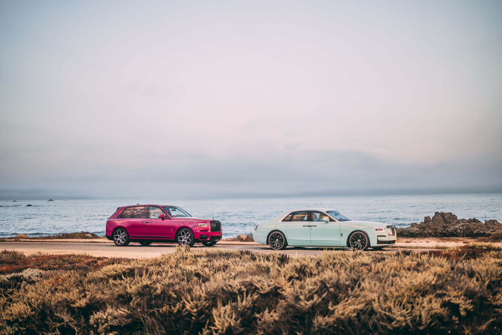 Rolls-Royce always shows off some new and exciting colors and models at Pebble Beach and this year’s no different. In Monterey, California, the Rolls-Royce Pebble Beach Collection Cullinan and Ghost will be on display, with new exclusive colors. The two new colors are Forbidden Pink (Cullinan) and Crystal over Sagano Green (Ghost) and they’re both pretty special looking.