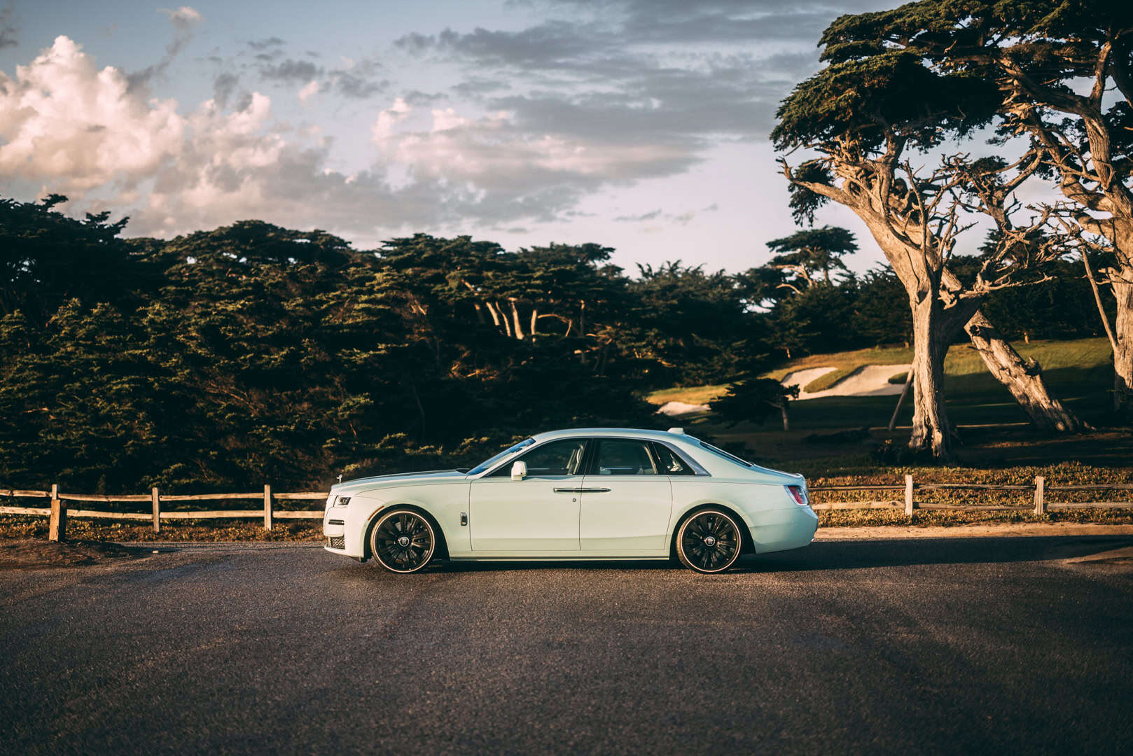 However, it’s the Rolls-Royce Ghost “Silver Badge” Pebble Beach that’s even more interesting. Its Crystal over Sagano Green, which means it uses a Sagano Green paint but get six layers of Rolls’ new Crystal finish. It’s a gorgeous pastel looking green that works perfectly in the beautiful Monterey. No special luggage for the Ghost but it’s the better looking car overall. In fact, the Ghost is the best looking Rolls on sale, with its more subtle, delicate features and athletic feel. The Ghost is the Rolls you actually want to drive, rather than ride in.