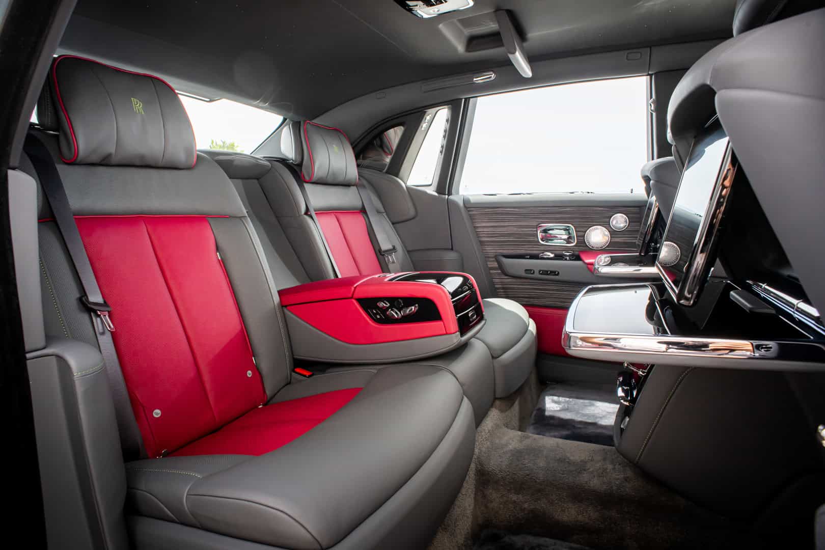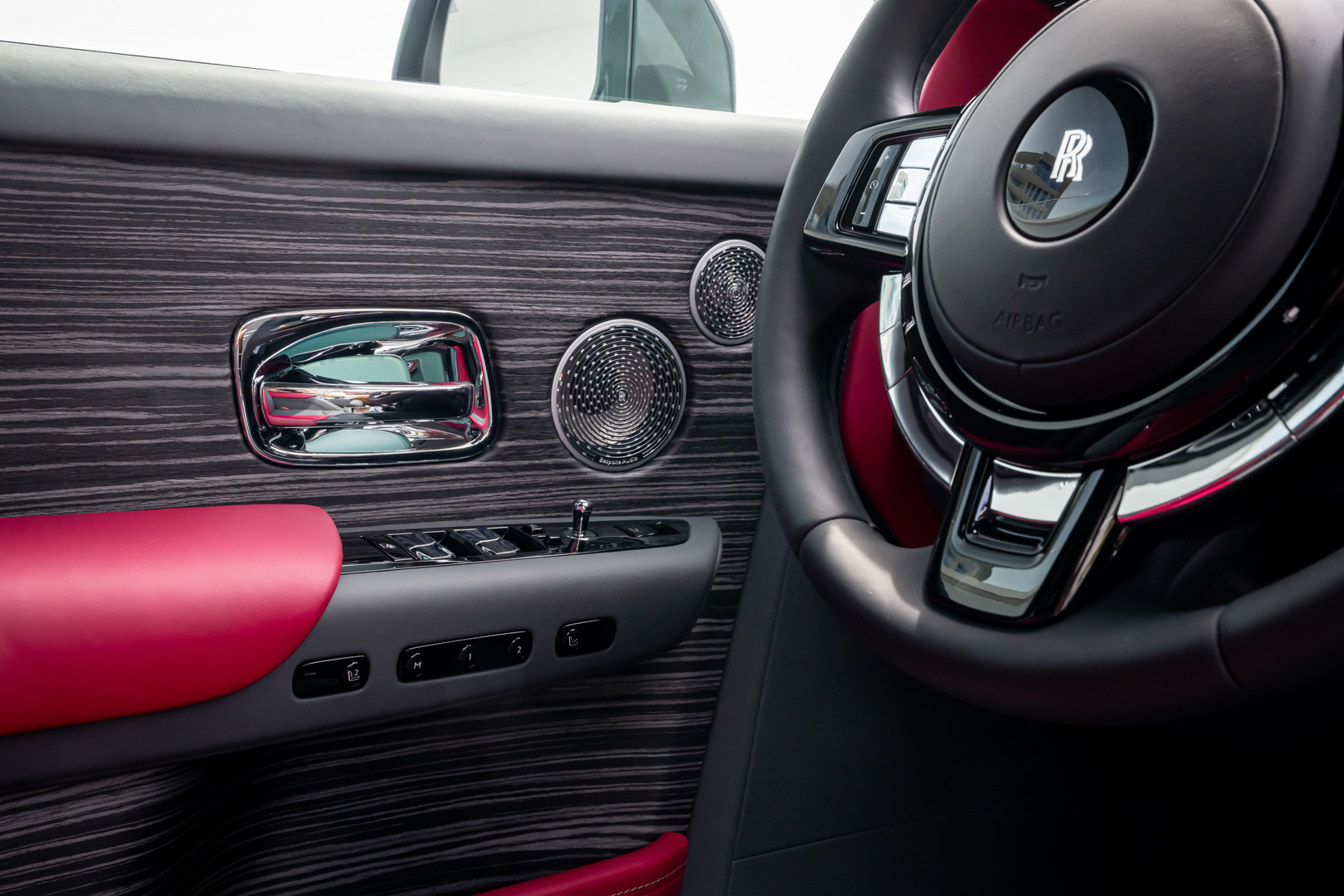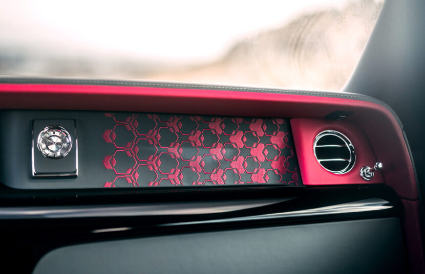 The specific Phantom on display at The Quail is based on the “Maverick” bespoke commission and gets an exterior two-tone black over Monteverde Green color scheme. To add some more style, it also gets a Peony Pink coachline and 3D-milled stainless steel wheels.