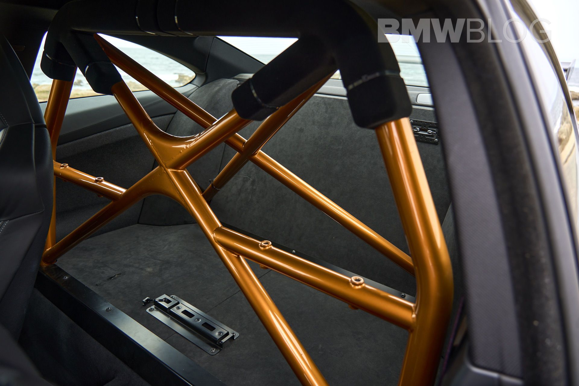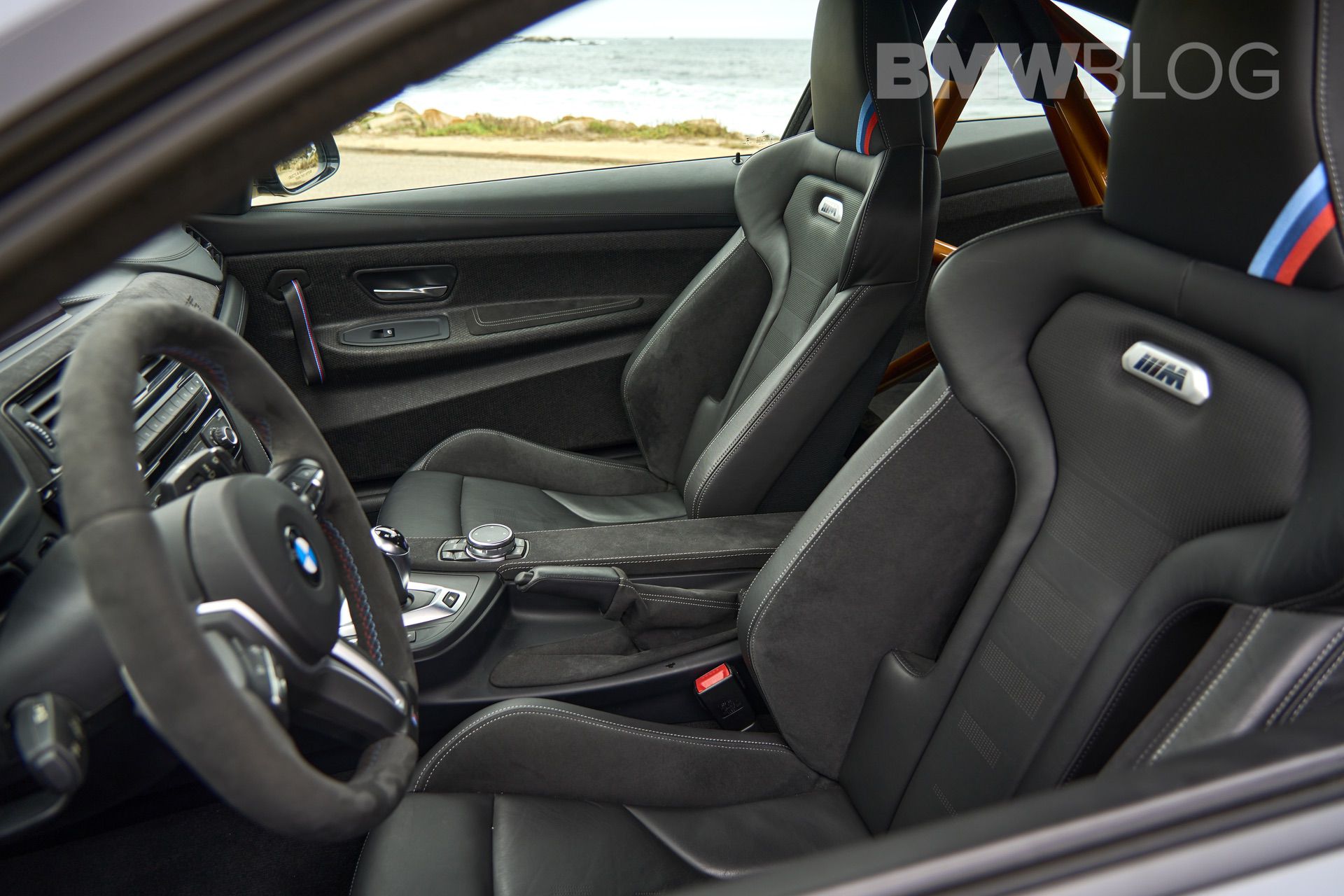 Inside, the door panels from the regular M4 have been replaced with the same carbon-fiber-reinforced plastic the i3 is built out of. The divider between the cabin and the trunk is made from fiberglass. And of course, it featured a real roll cage in some markets, with the faux, half cage reserved for the North American markets.