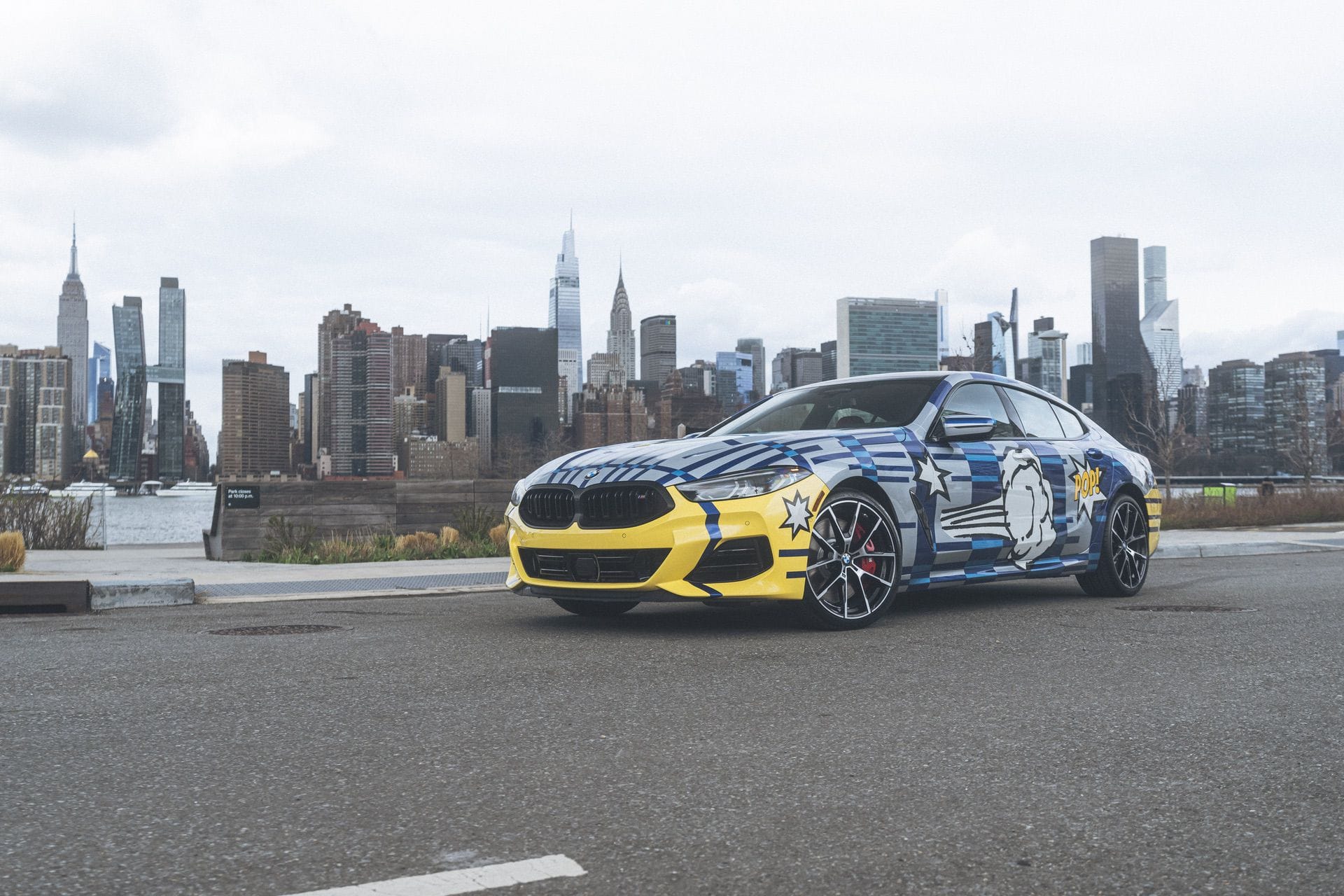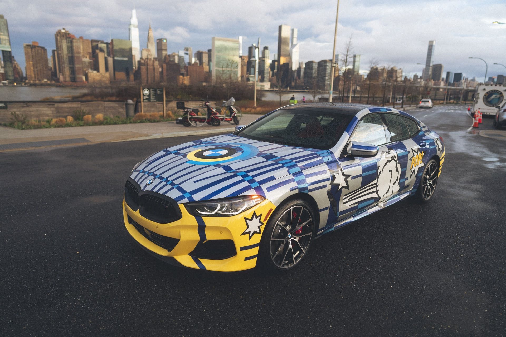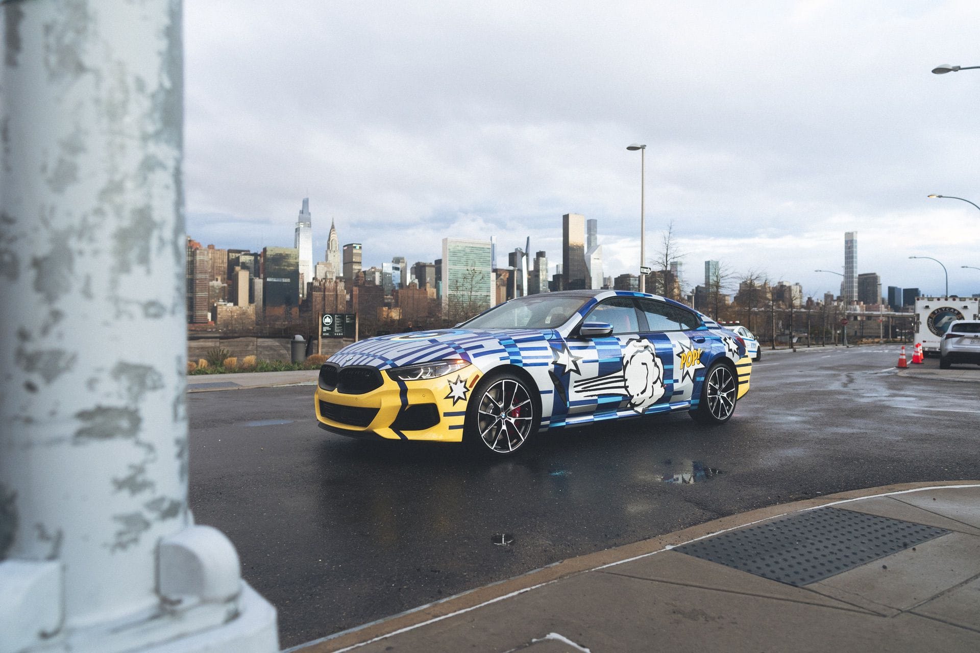 The BMW 8 X JEFF KOONS is easily one of the most fun collaborations between BMW and an artist, as it features bright, bold colors and expressions of power and speed, in a fun superhero comic motif. The “Pop!” symbol and cartoon explosions, along with “vapor thrust” make it look like it’s at speed in a comic book. The bright blue and yellow at the back end evoke images of Koons’ other BMW project, the E92 M3 GT2 Art Car that raced at Le Mans.