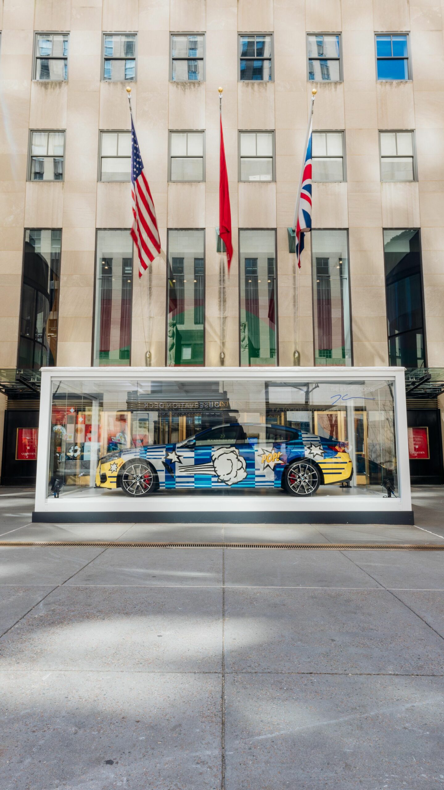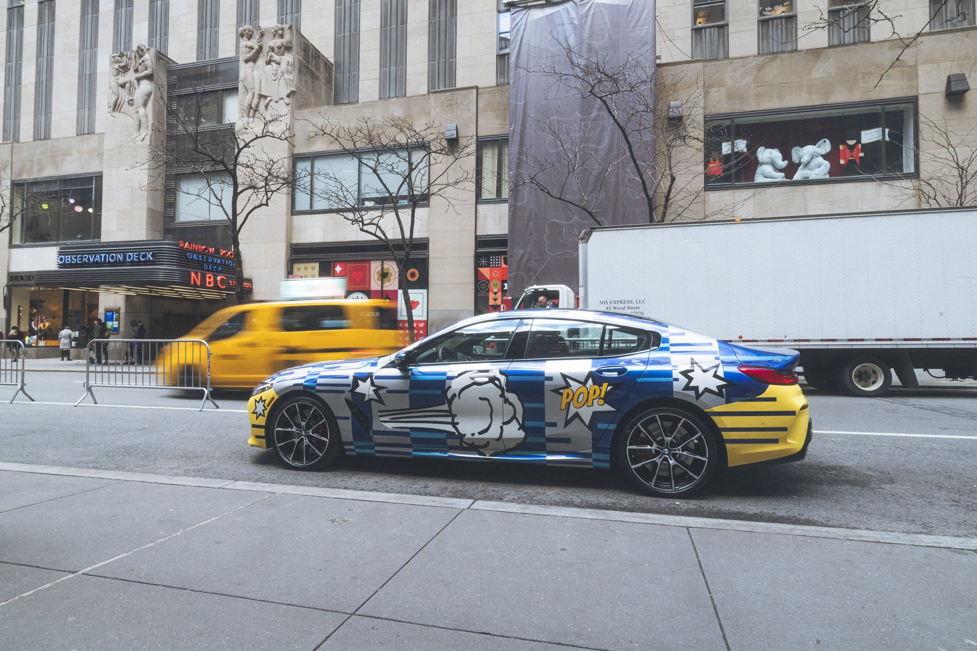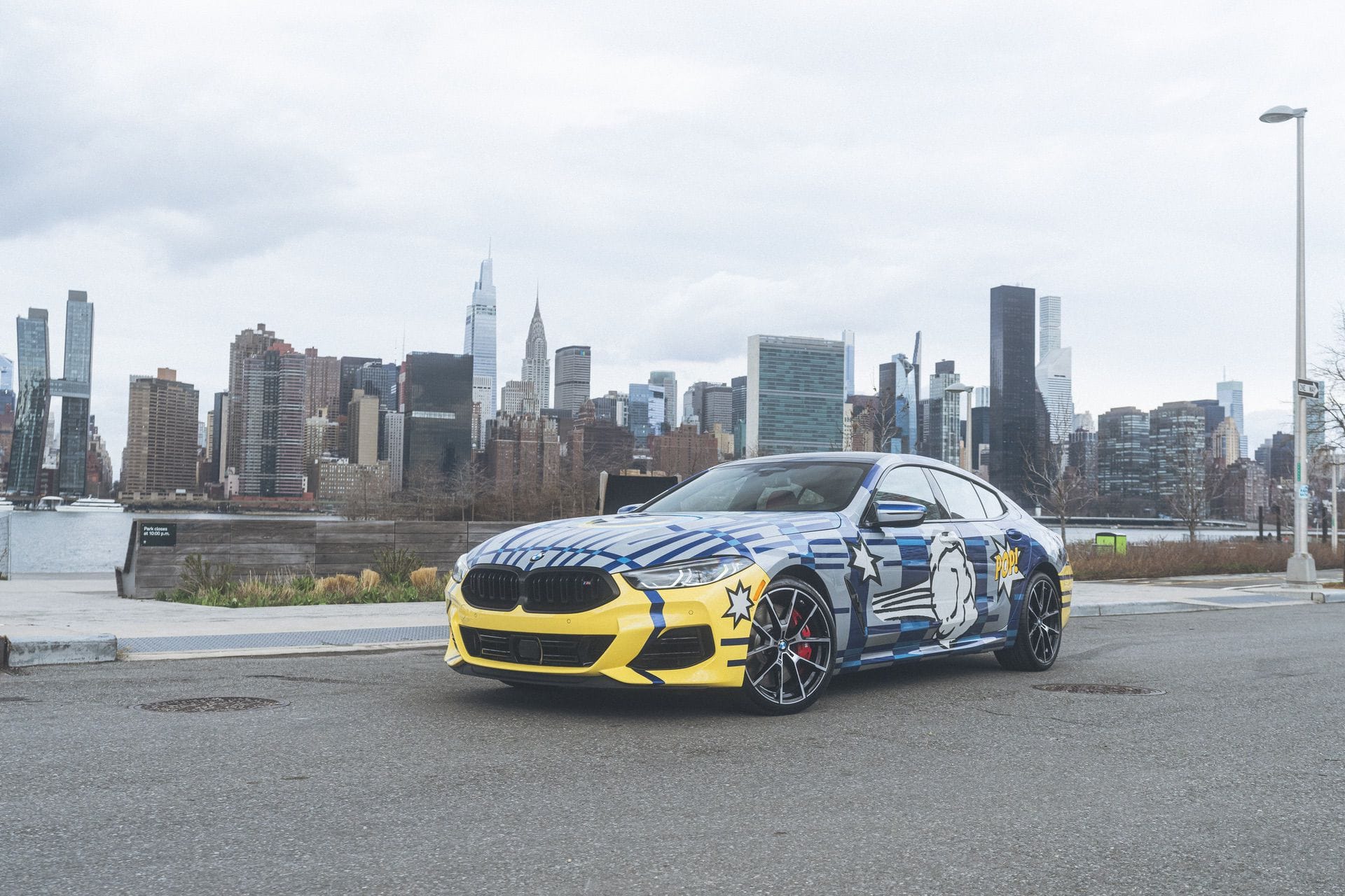 The BMW 8 X JEFF KOONS is easily one of the most fun collaborations between BMW and an artist, as it features bright, bold colors and expressions of power and speed, in a fun superhero comic motif. The “Pop!” symbol and cartoon explosions, along with “vapor thrust” make it look like it’s at speed in a comic book. The bright blue and yellow at the back end evoke images of Koons’ other BMW project, the E92 M3 GT2 Art Car that raced at Le Mans.