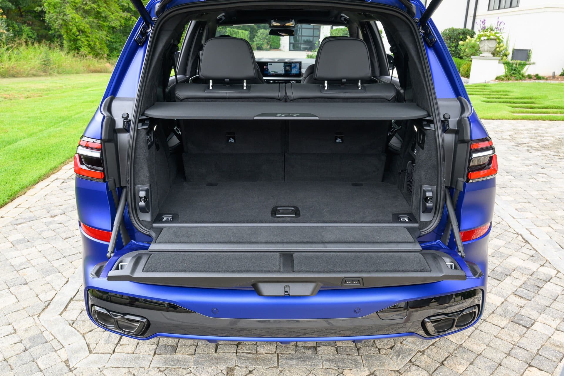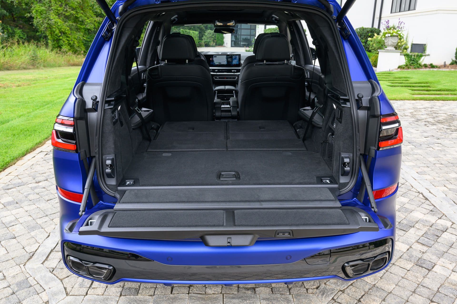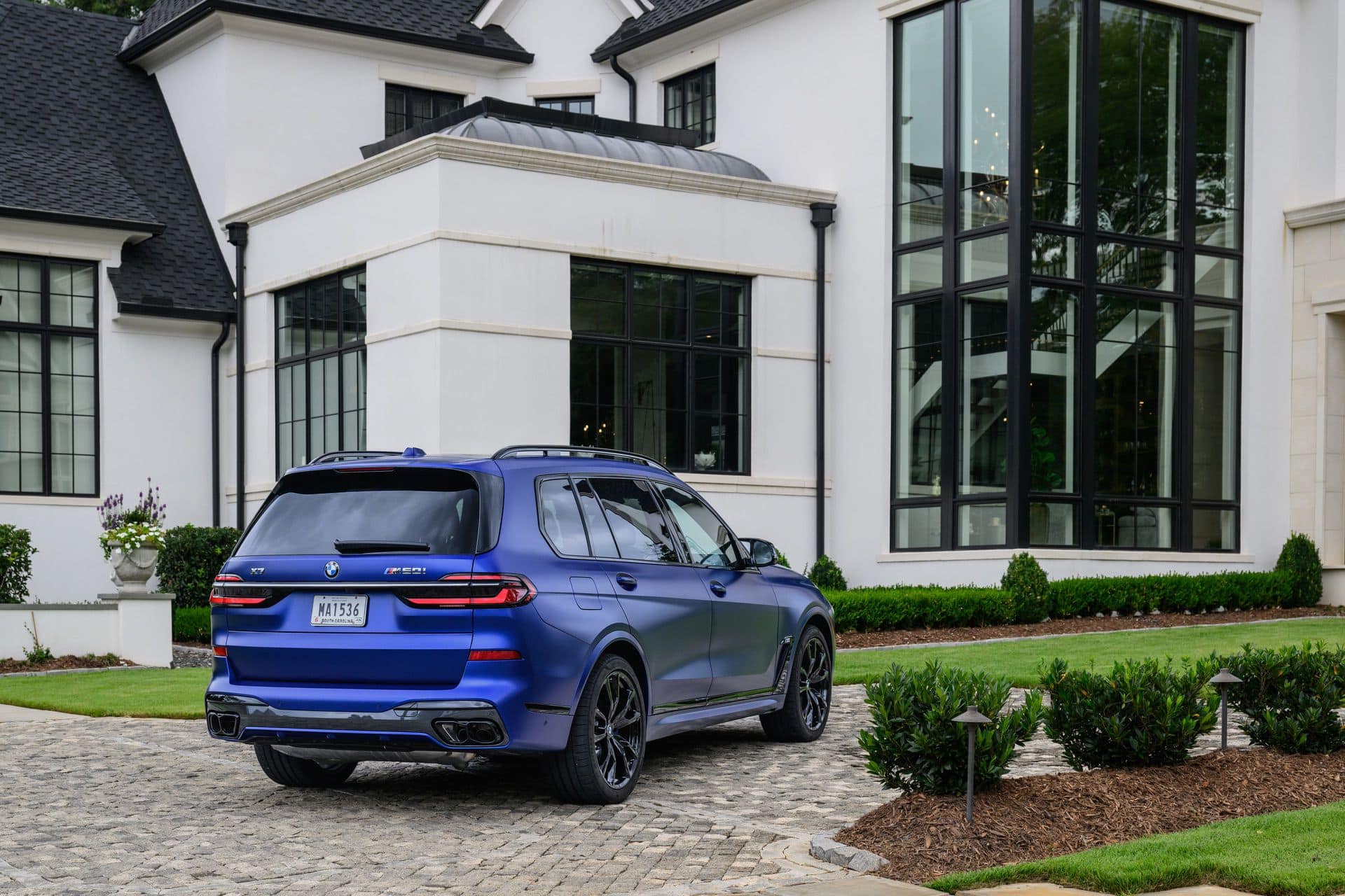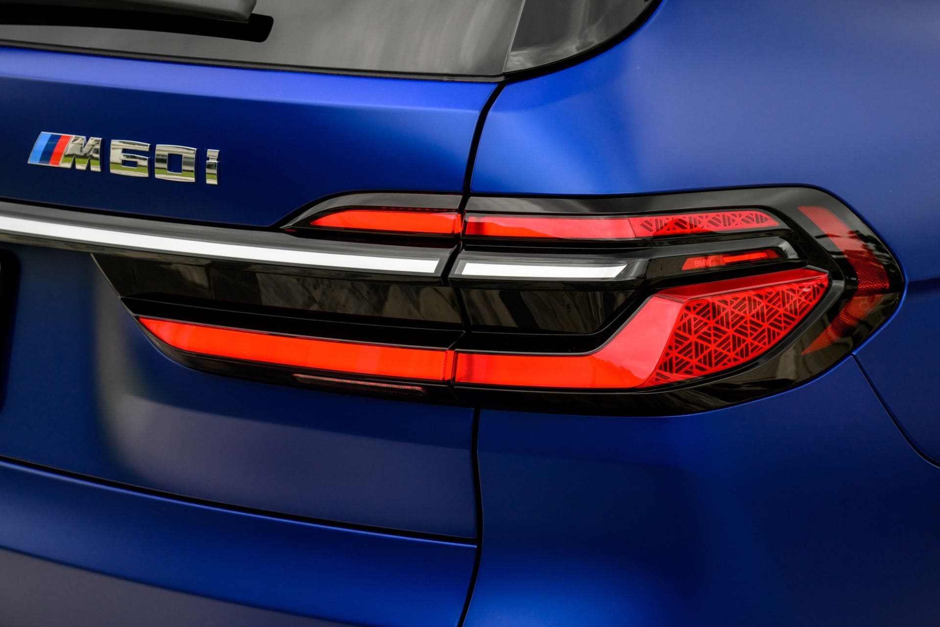 Out back, the BMW X7’s taillights are nearly identical to the pre-facelift taillights, except they have a bit more depth and beautifully integrate the slim chrome bar. New inner graphics are also part of the light package. For the first time, the BMW X7 also comes with a massive 23 inch wheel option. Next, a new color palette, including Sparkling Copper Metallic. The top of the line X7 M60i gets a few new shades as well, including M Marina Bay Blue (matte), Ametrine Metallic, and Frozen Pure Grey Metallic. There are of course a ton of new Individual colors available too, including Daytona Violet and Ruby Red. My tester was painted in a stunning Frozen Marina Bay Blue running on 22 inch wheels with Pirelli P Zero performance tires.