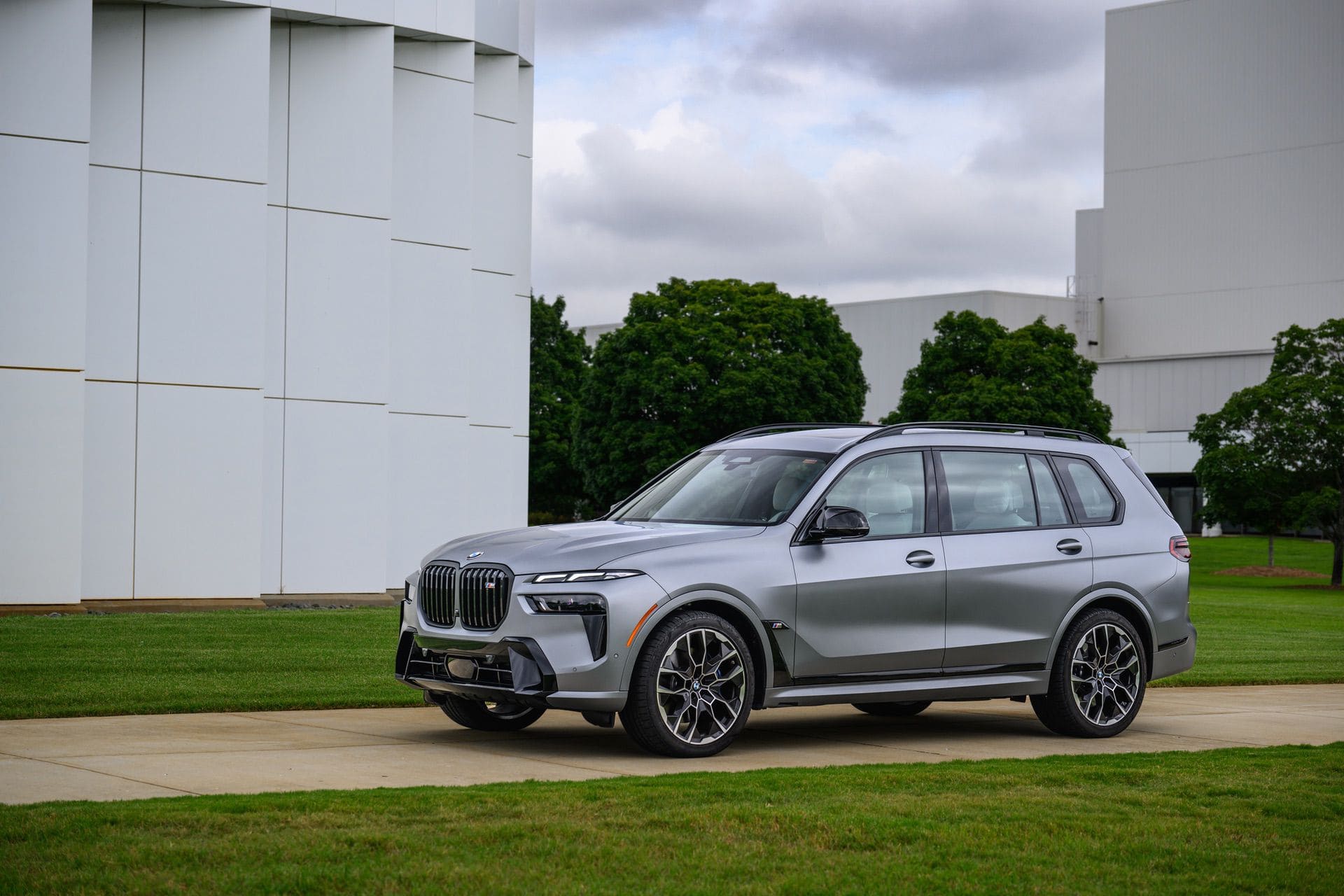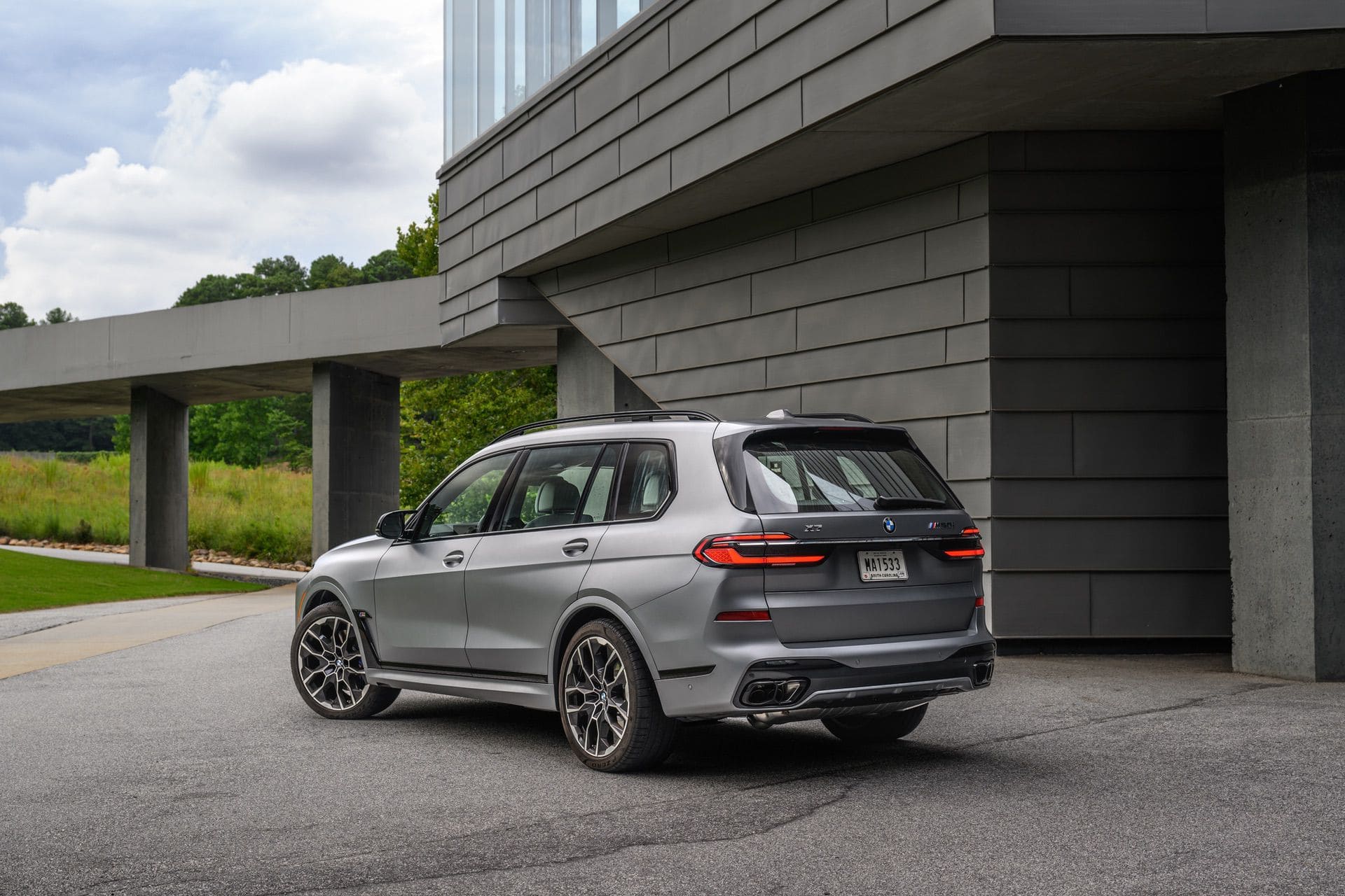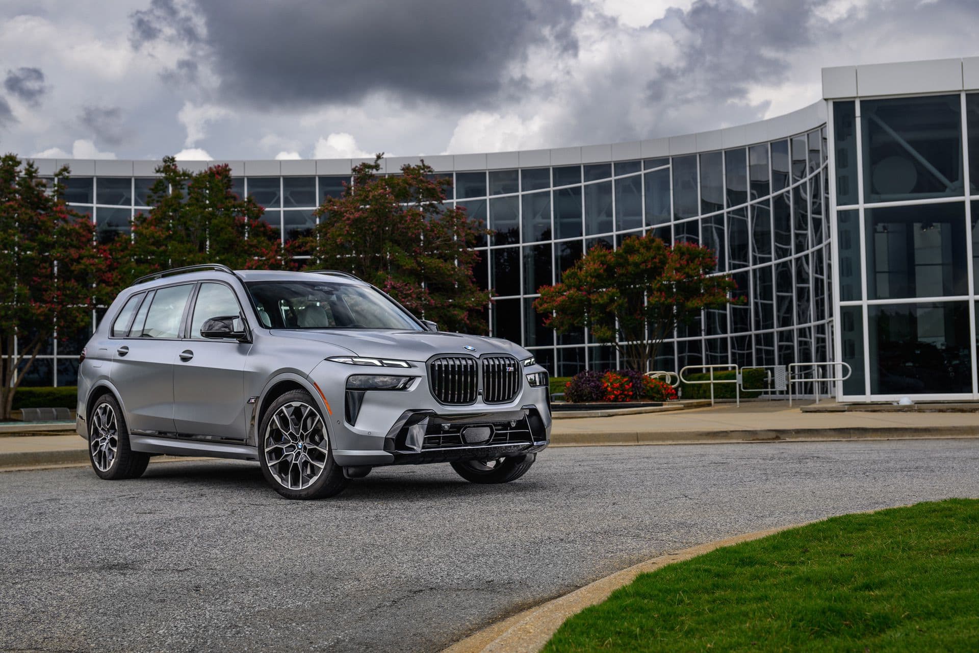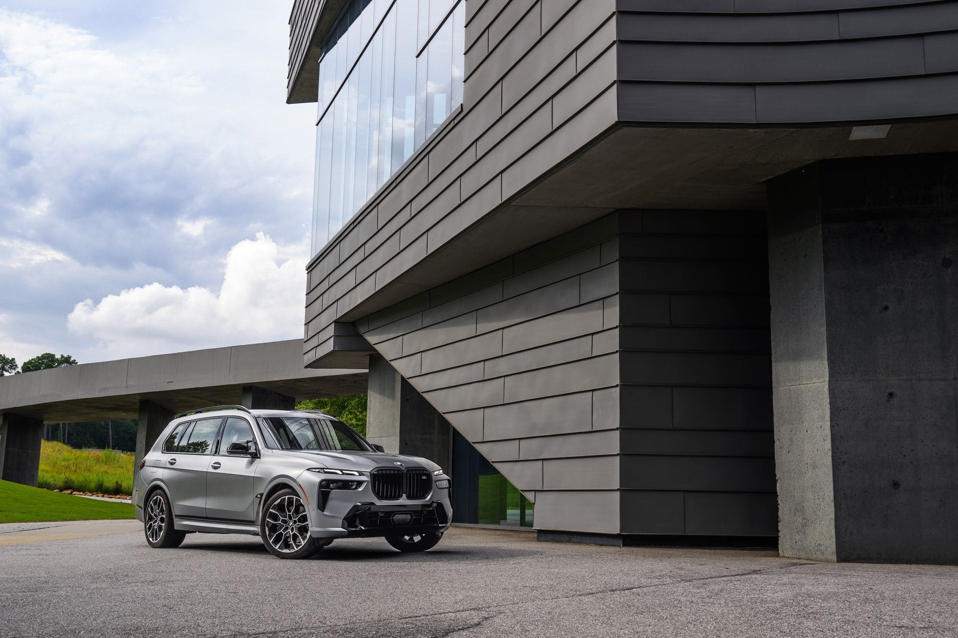 In these photos, the Frozen Pure Grey is on a BMW X7 M60i but you don’t need to get that version to get the sporty matte grey paint. You can option it on the X7 xDrive40i as well, even without the M Sport package, and it’s a normal factory color. It’s a $5,000 option, but it’s still part of the normal X7 list of colors. BMW offers a lot of its matte “Frozen” colors and not all of them work well but this one looks good on the X7.