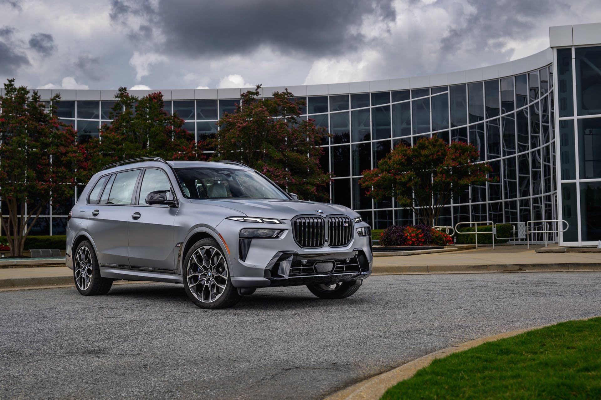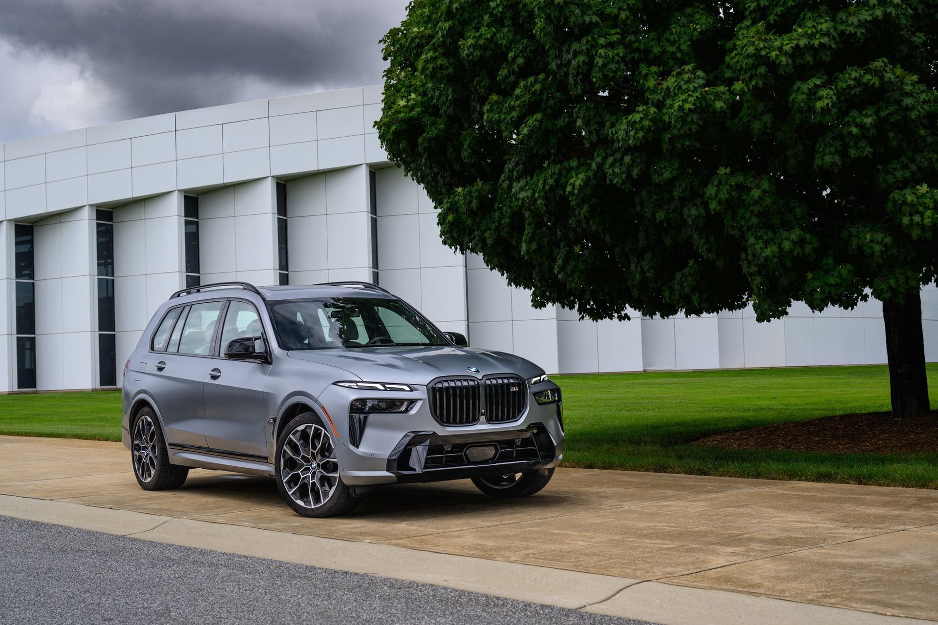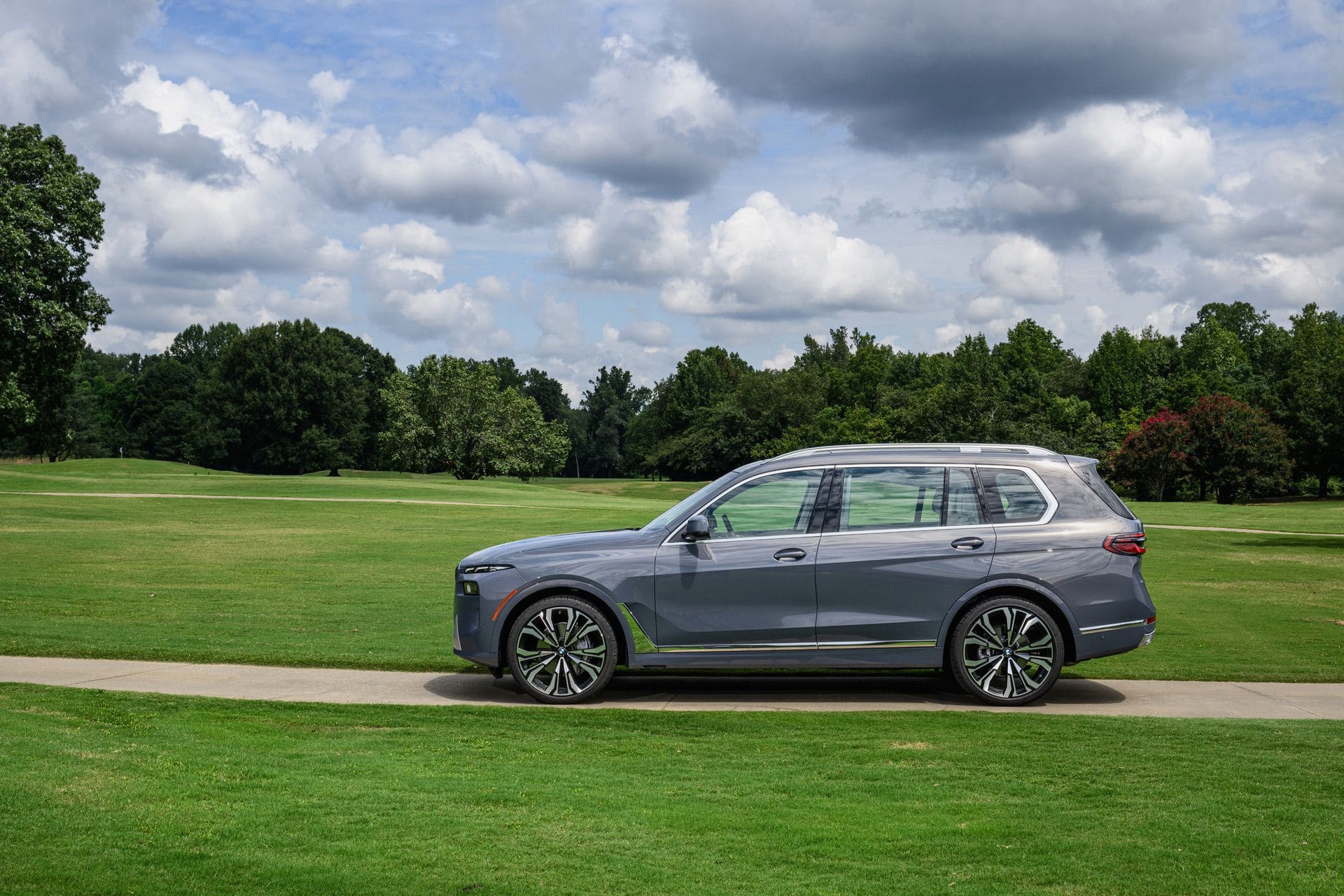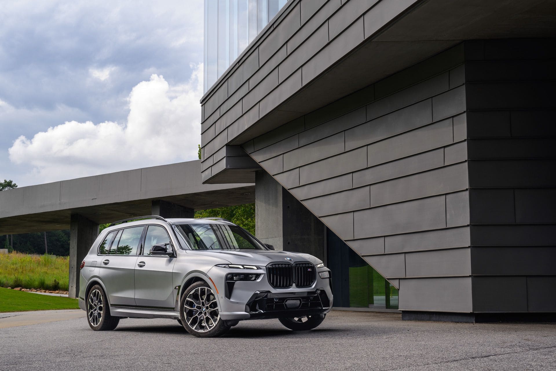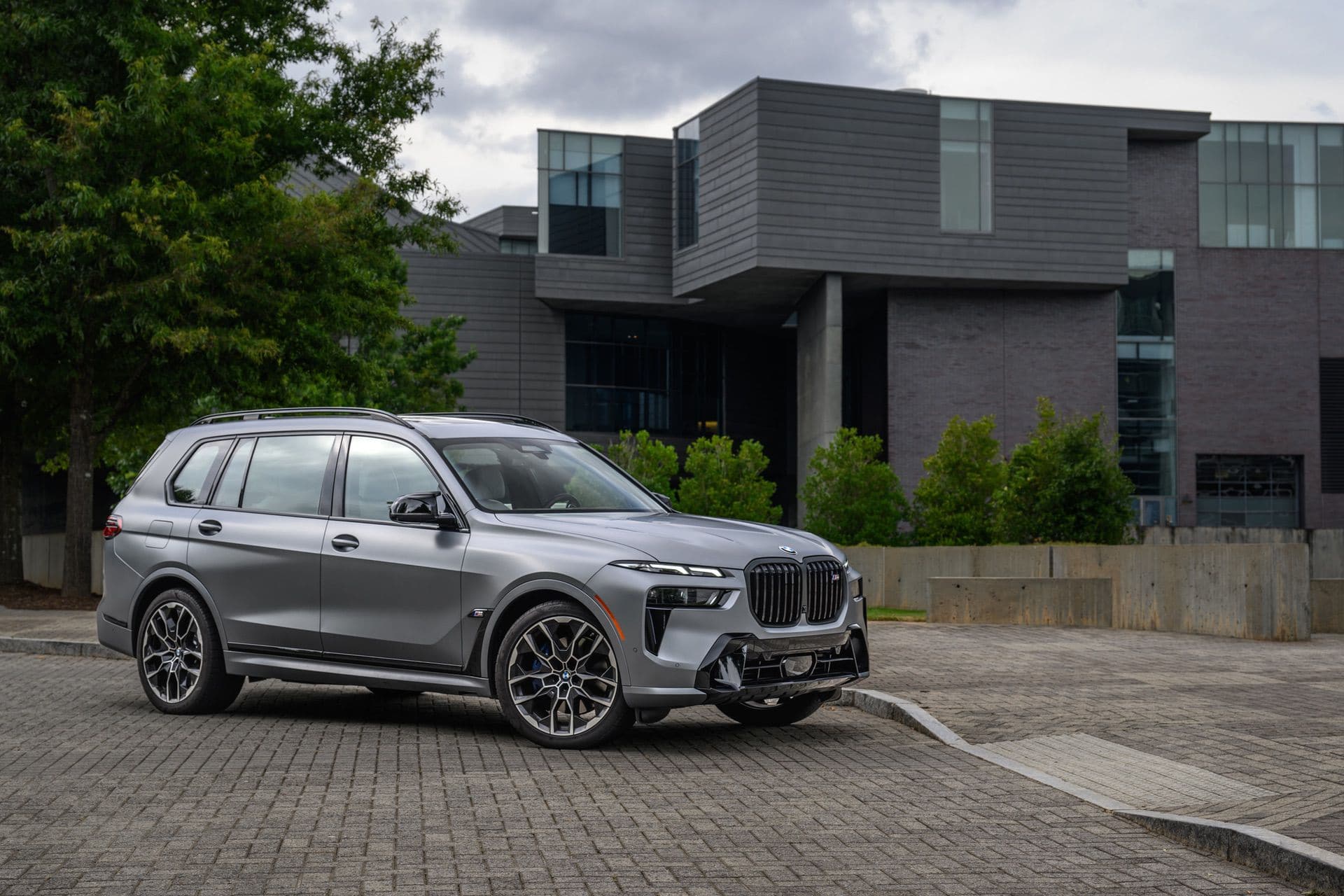 In these photos, the Frozen Pure Grey is on a BMW X7 M60i but you don’t need to get that version to get the sporty matte grey paint. You can option it on the X7 xDrive40i as well, even without the M Sport package, and it’s a normal factory color. It’s a $5,000 option, but it’s still part of the normal X7 list of colors. BMW offers a lot of its matte “Frozen” colors and not all of them work well but this one looks good on the X7.