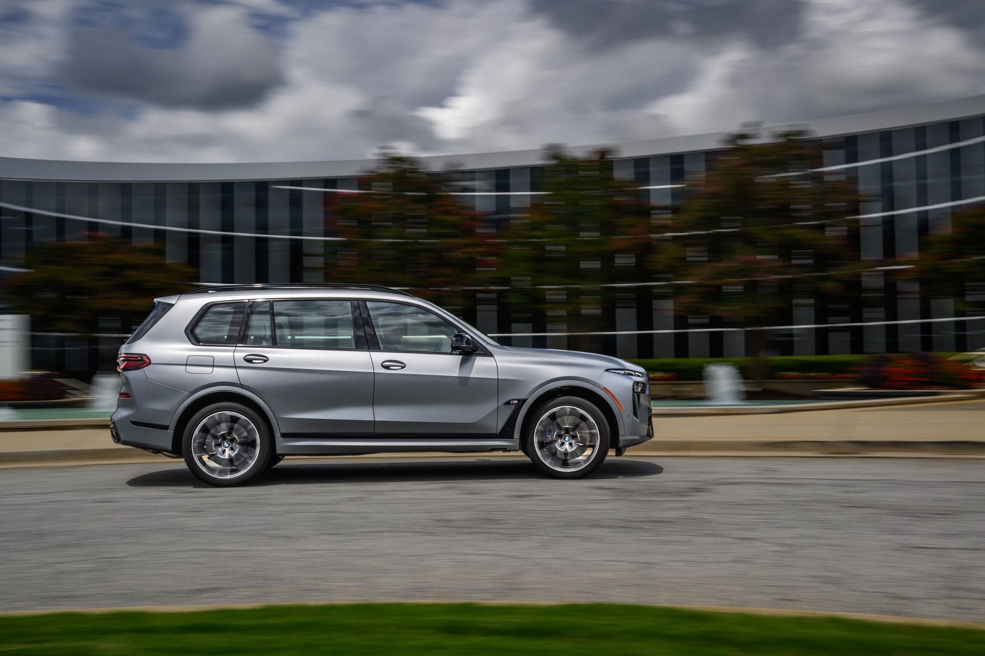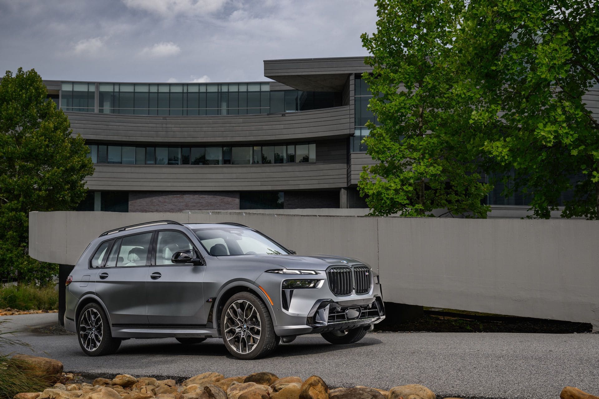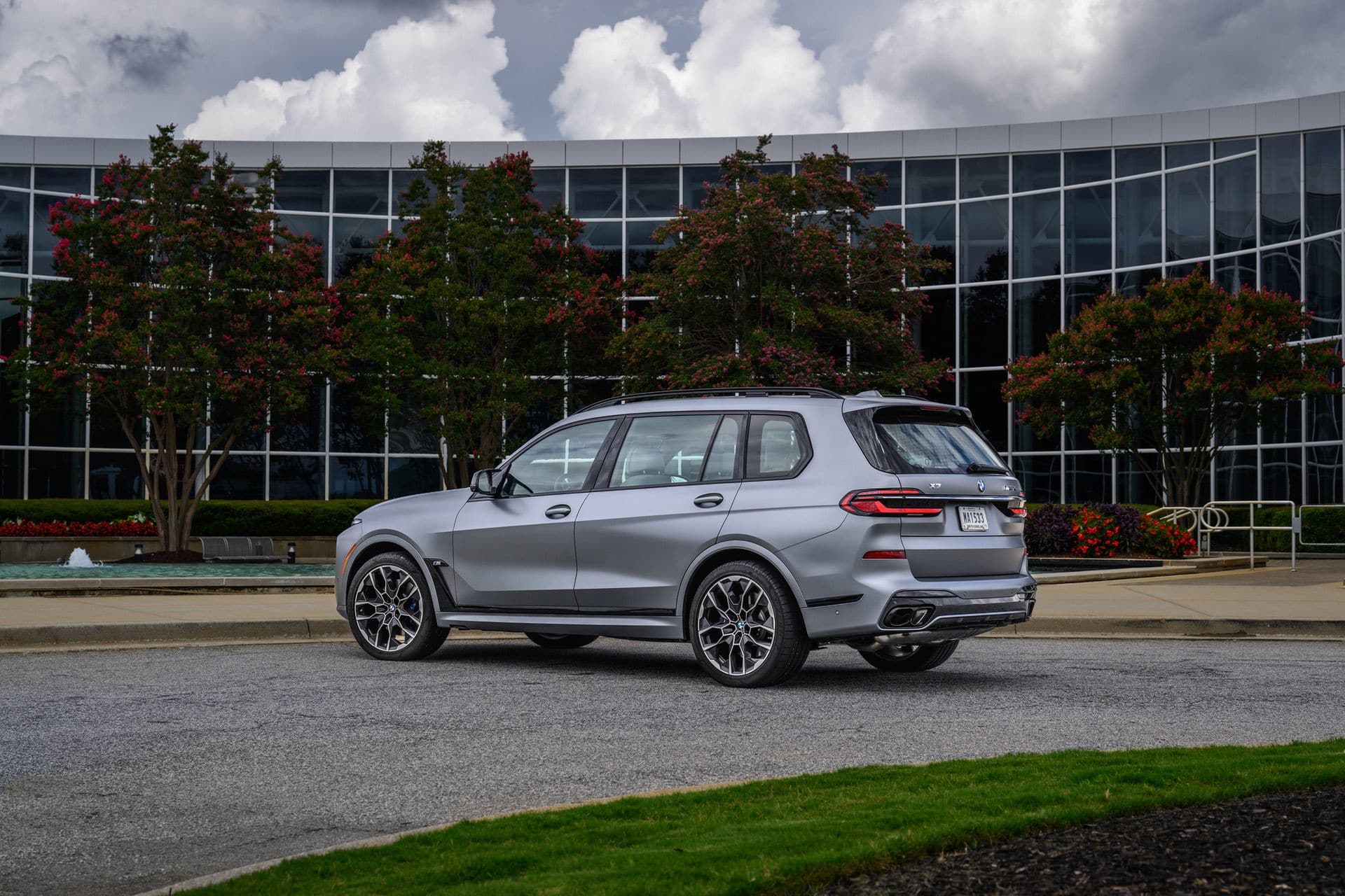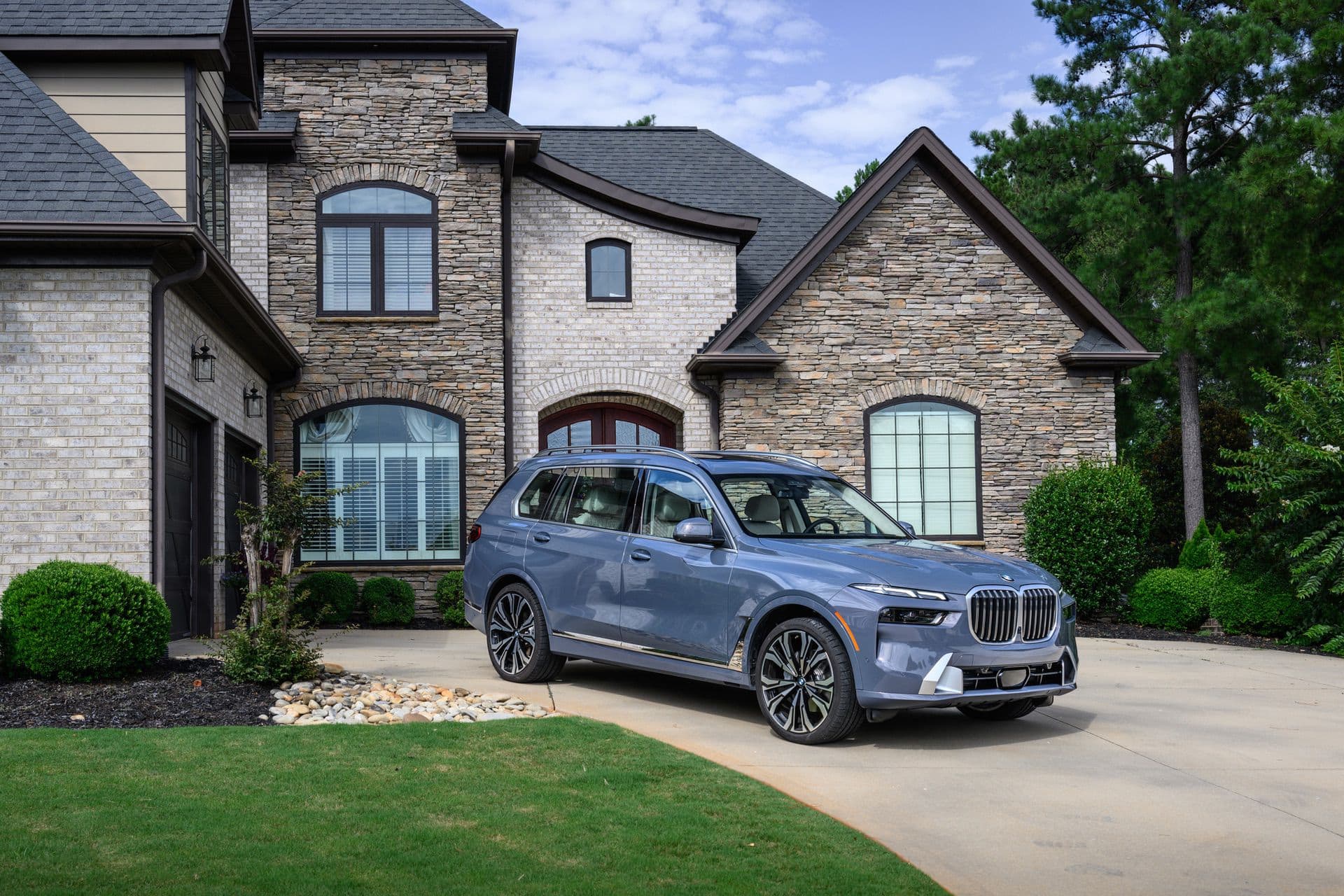 In these photos, the Frozen Pure Grey is on a BMW X7 M60i but you don’t need to get that version to get the sporty matte grey paint. You can option it on the X7 xDrive40i as well, even without the M Sport package, and it’s a normal factory color. It’s a $5,000 option, but it’s still part of the normal X7 list of colors. BMW offers a lot of its matte “Frozen” colors and not all of them work well but this one looks good on the X7.