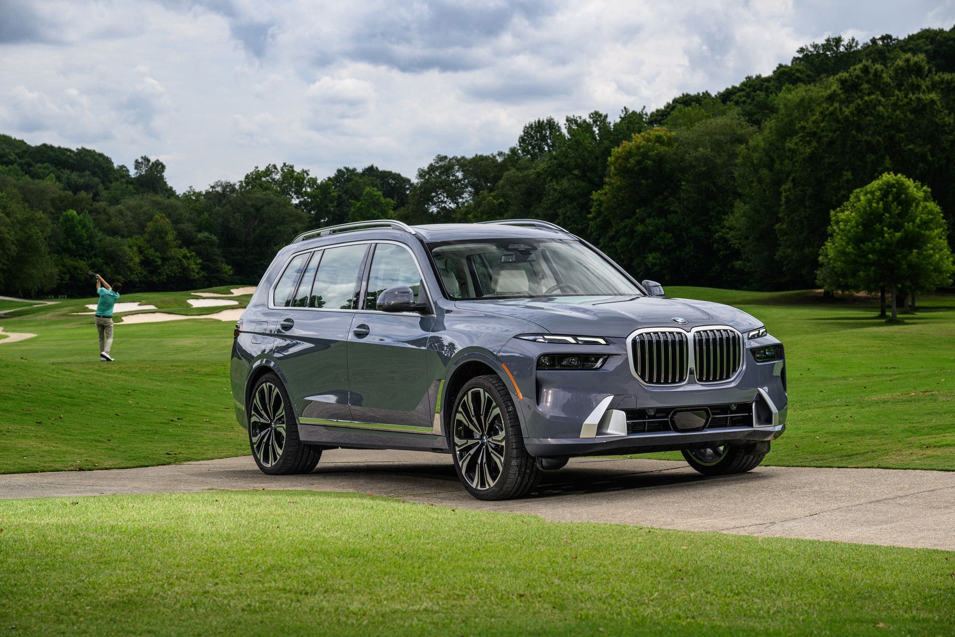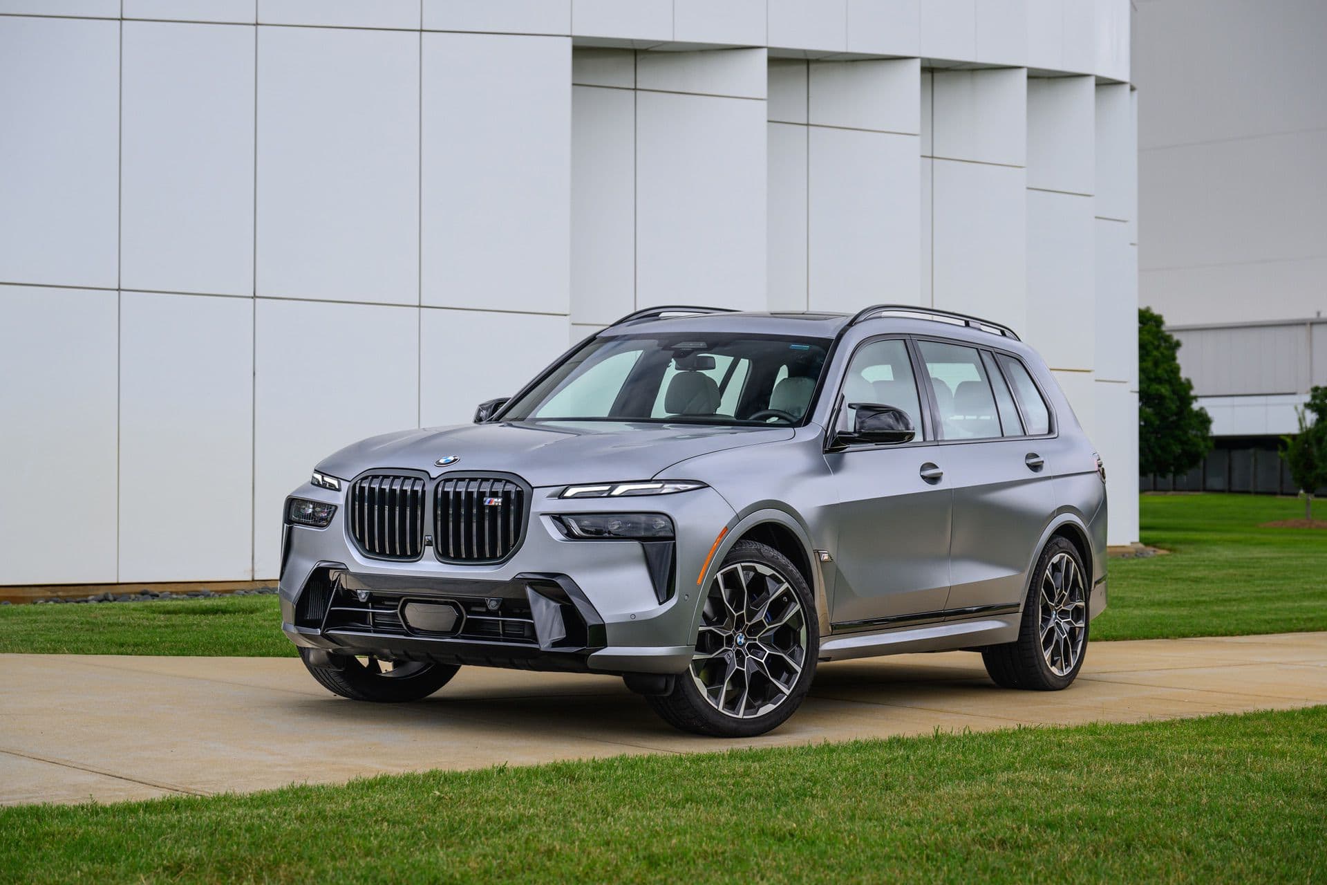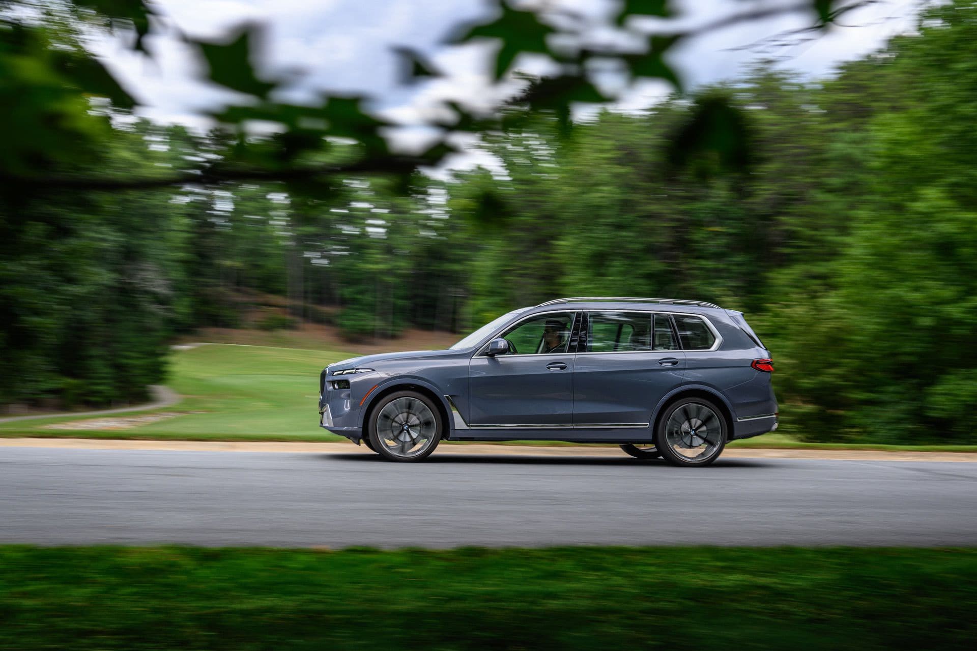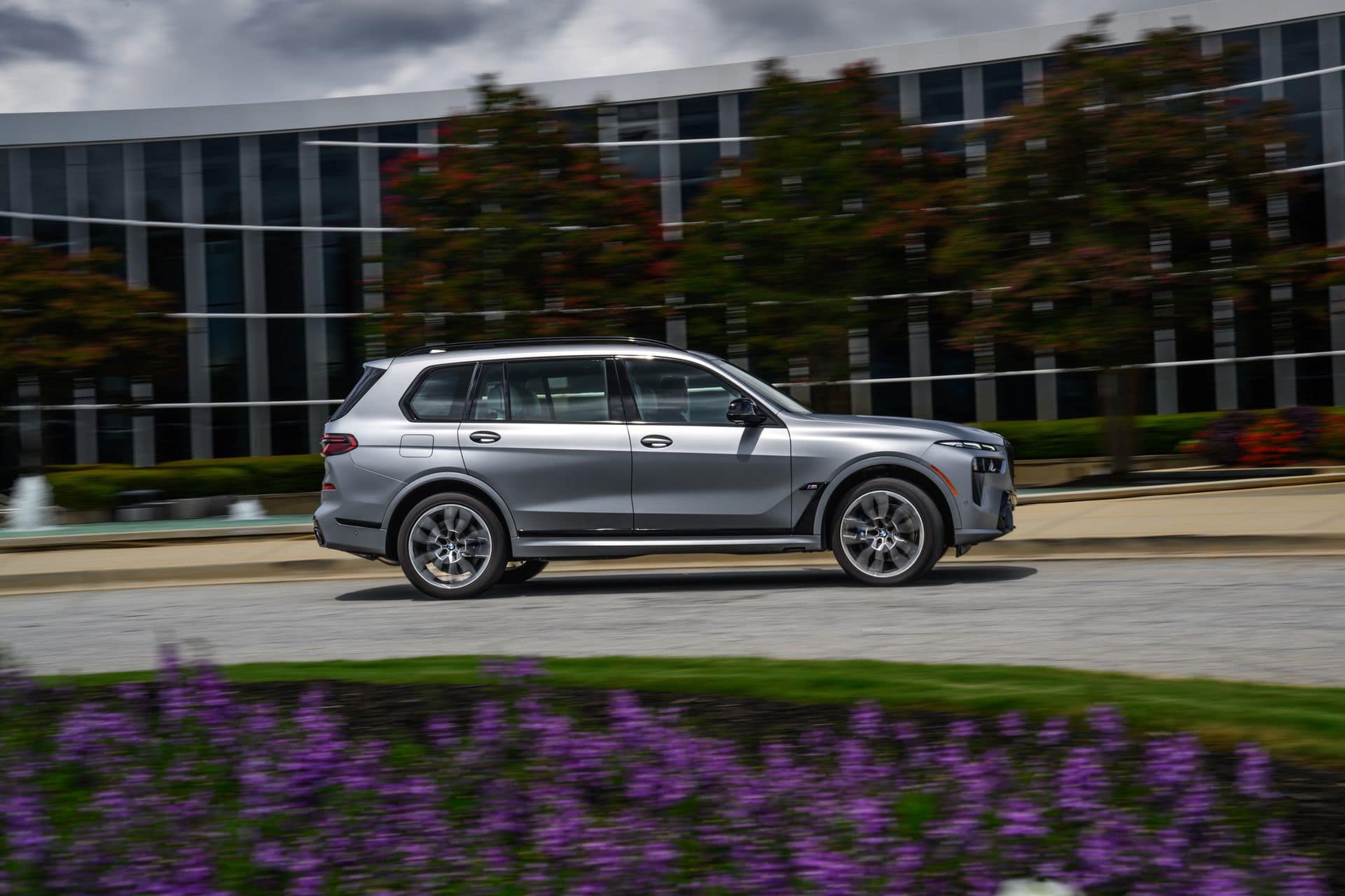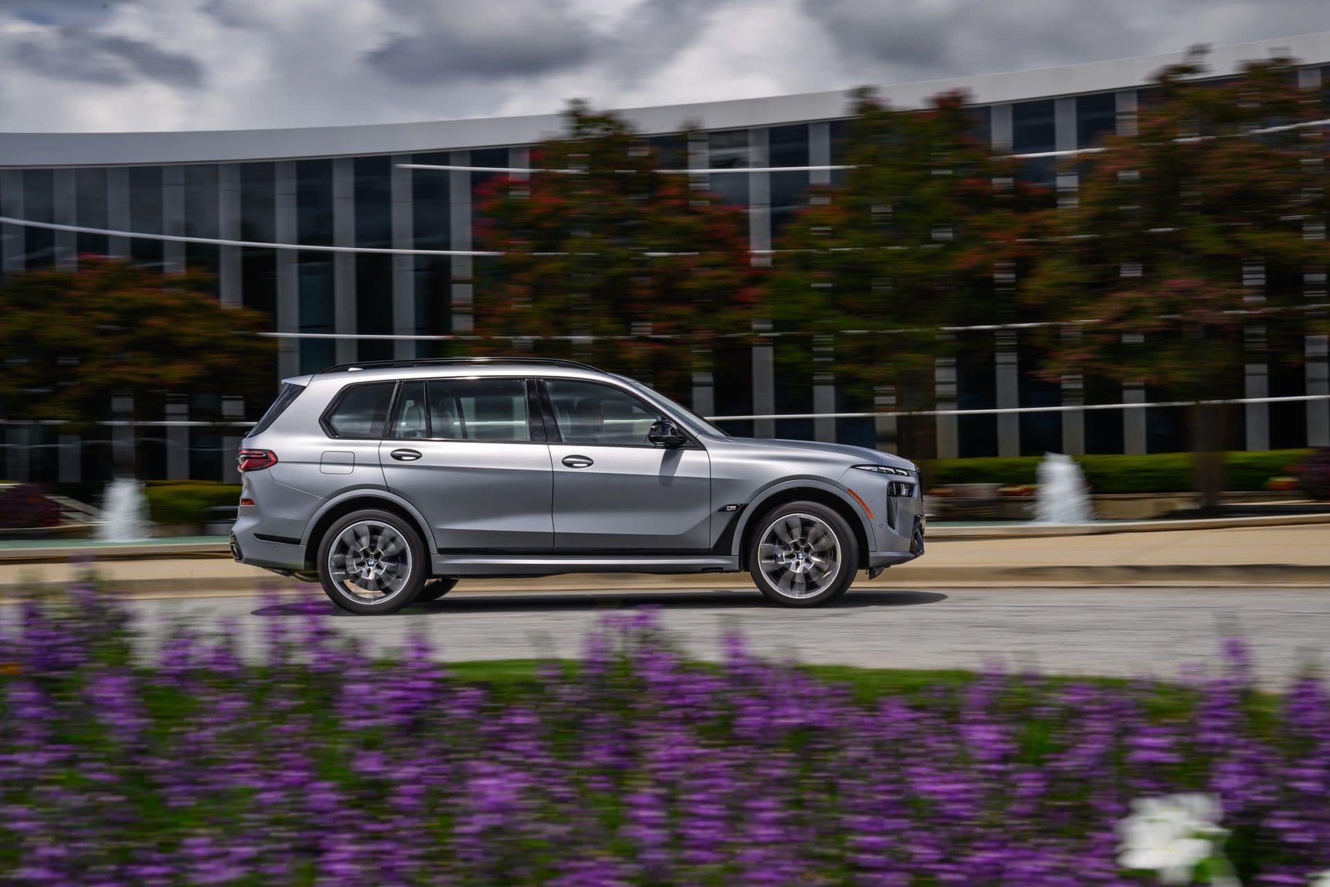 In these photos, the Frozen Pure Grey is on a BMW X7 M60i but you don’t need to get that version to get the sporty matte grey paint. You can option it on the X7 xDrive40i as well, even without the M Sport package, and it’s a normal factory color. It’s a $5,000 option, but it’s still part of the normal X7 list of colors. BMW offers a lot of its matte “Frozen” colors and not all of them work well but this one looks good on the X7.