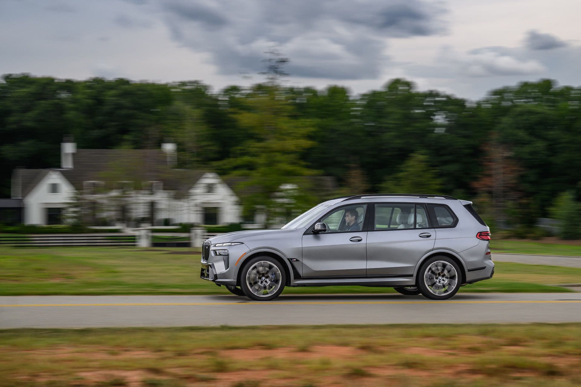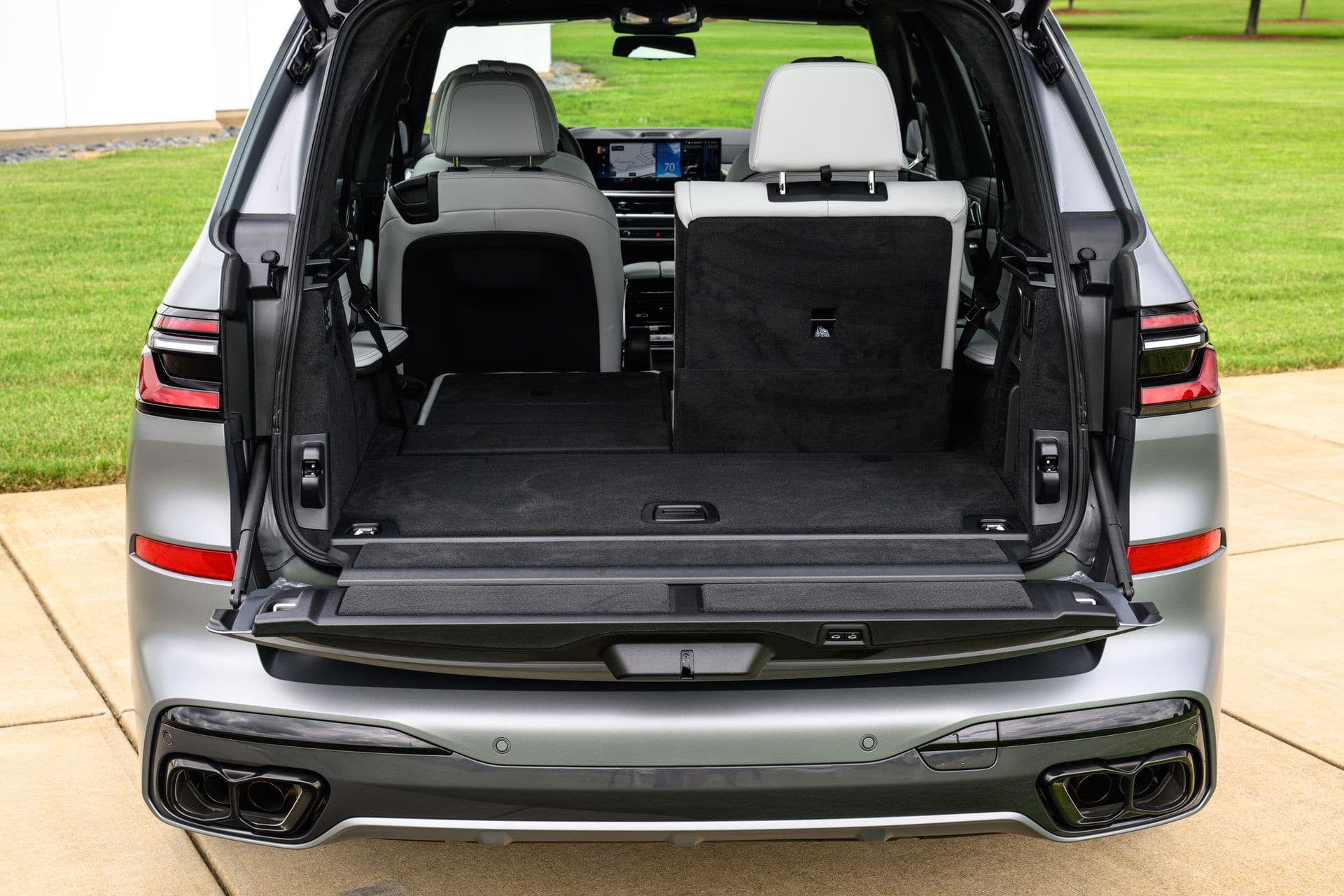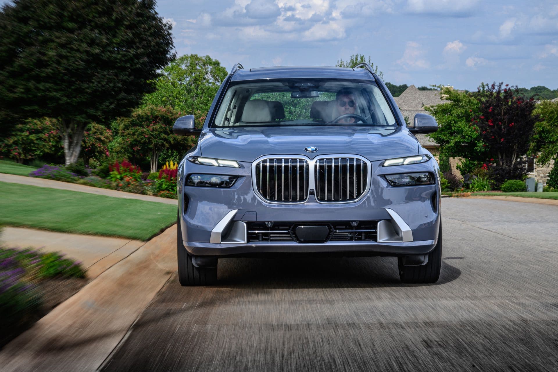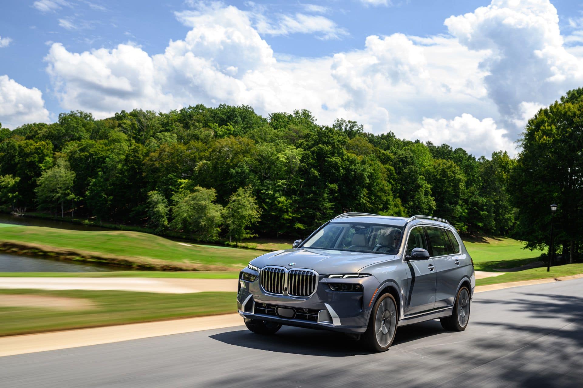 In these photos, the Frozen Pure Grey is on a BMW X7 M60i but you don’t need to get that version to get the sporty matte grey paint. You can option it on the X7 xDrive40i as well, even without the M Sport package, and it’s a normal factory color. It’s a $5,000 option, but it’s still part of the normal X7 list of colors. BMW offers a lot of its matte “Frozen” colors and not all of them work well but this one looks good on the X7.