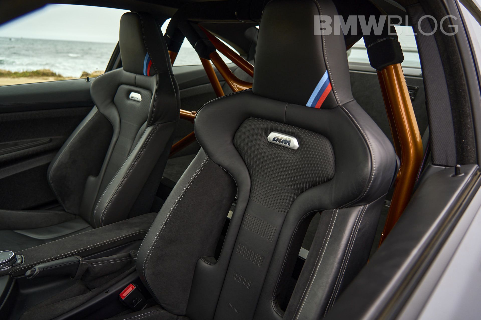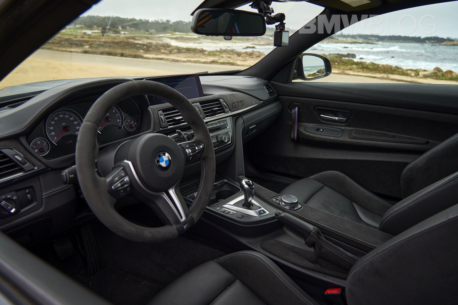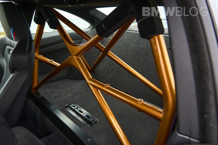 A quick look inside the M4 GTS and you will immediately notice why this car is meant for the track. The GTS features a real roll cage in some markets, with the faux, half cage reserved for the North American markets. Furthermore, the divider between the cabin and the trunk is made from fiberglass. The sound proofing material was also removed, all with one goal: to reduce weight. Next, the door panels were replaced with the same carbon-fiber-reinforced plastic in the i3 electric car. Additional weight-saving measures include a full titanium exhaust system that’s 20 percent lighter than the normal exhaust.