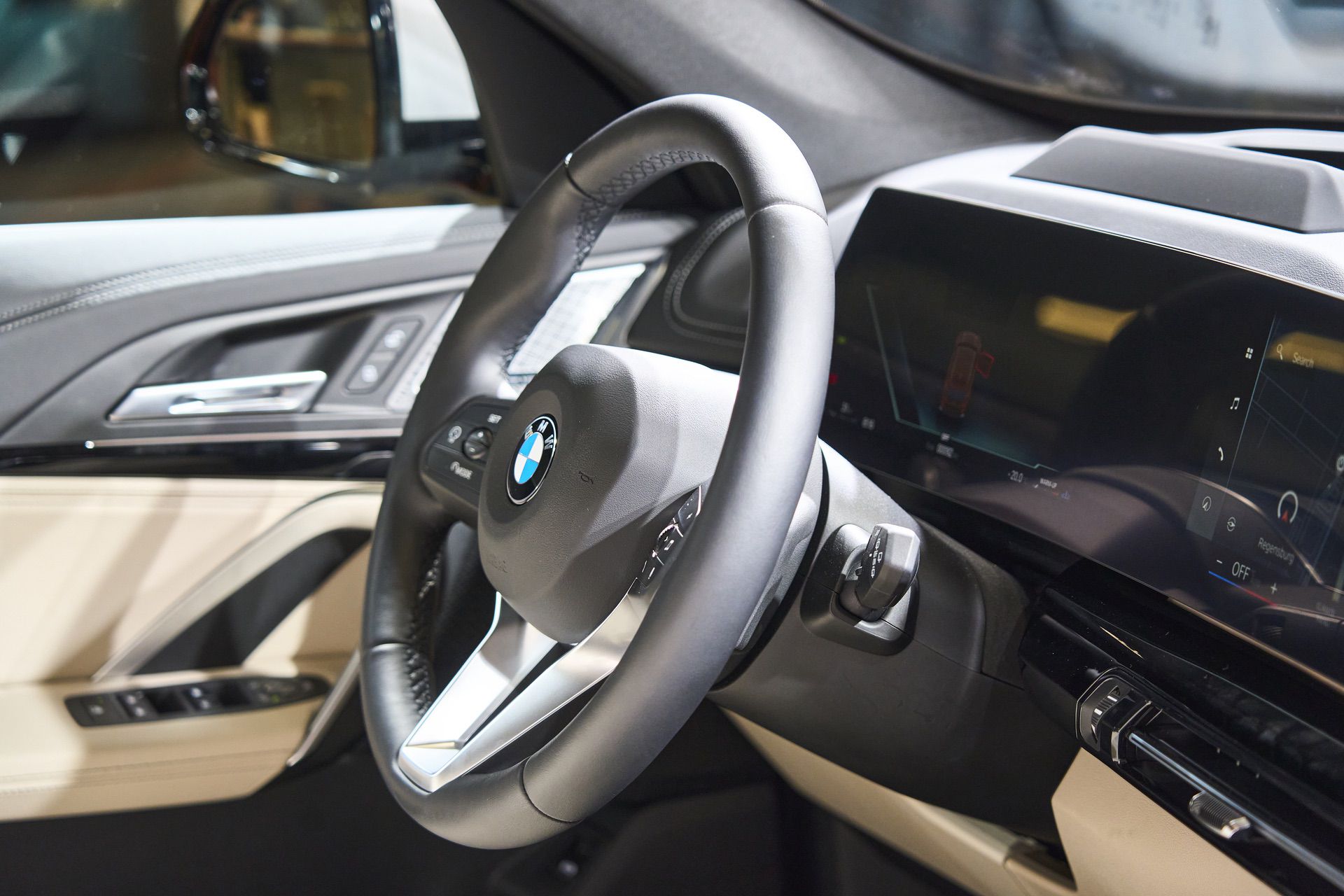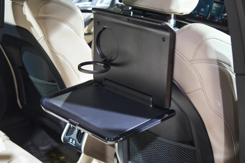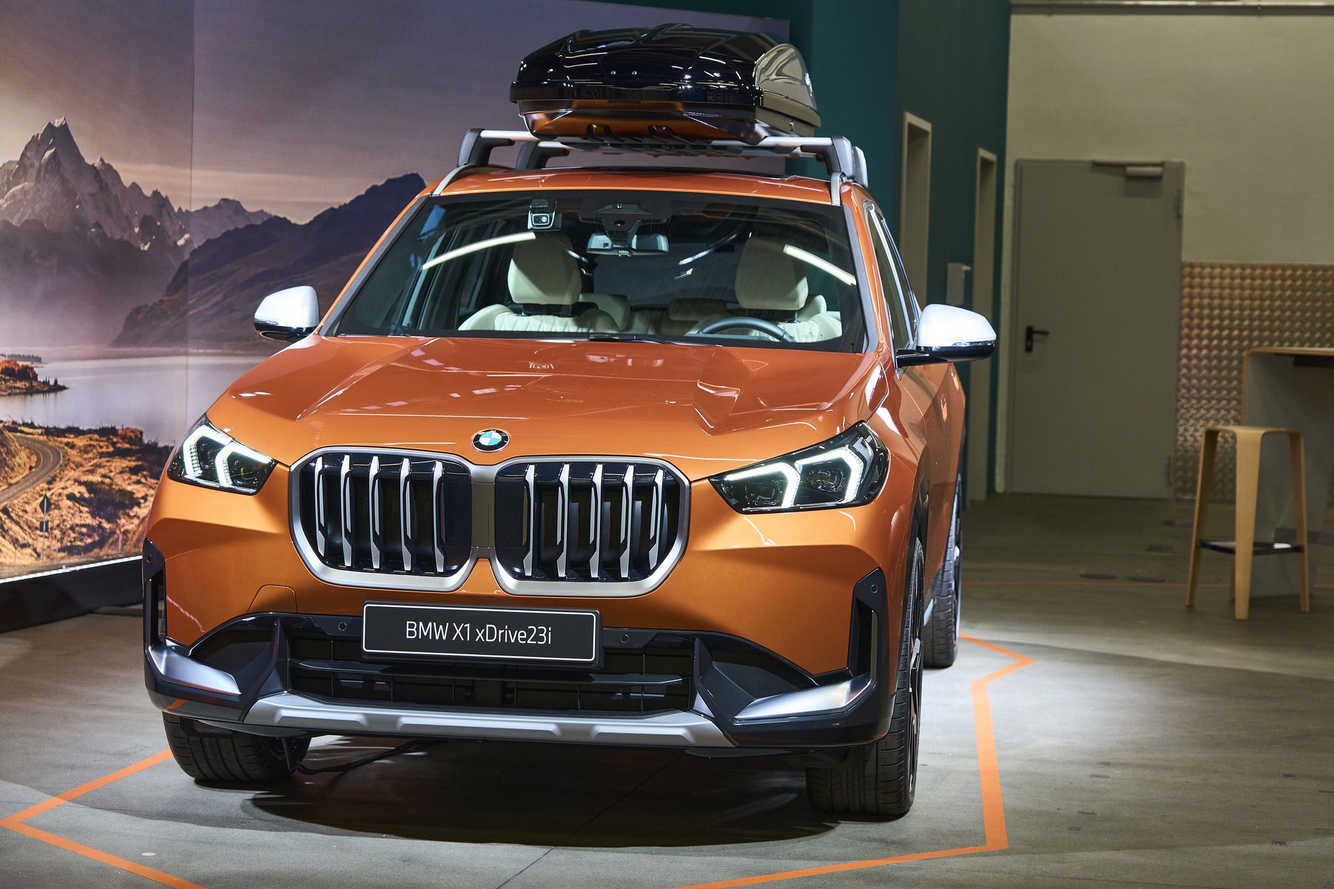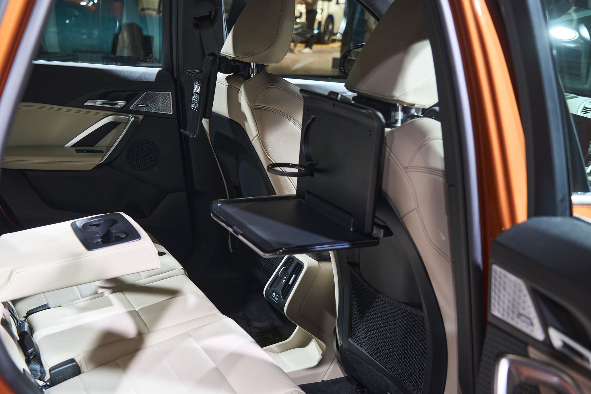 As for the interior, the 2023 BMW X1 has been configured with the optional oyster Vernasca leather. One of the more interesting extras is the BMW Drive Recorder allowing owners to film their surroundings, which might be useful to document dangerous driving situations. In the back, there are a couple of BMW Accessories – a smartphone holder behind the driver’s seat and a folding table with an integrated cup holder behind the front passenger’s seat.
