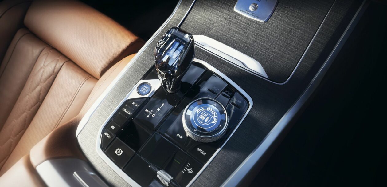 Naturally, two-axle air suspension comes as standard to enable a silky-smooth ride. ALPINA gives the glass iDrive controller its own design and installs blue illumination in the gear selector. Other tweaks include a hand-finished leather-wrapped steering wheel and a wood interior trim that can be optionally swapped out for either piano lacquer or natural walnut anthracite.