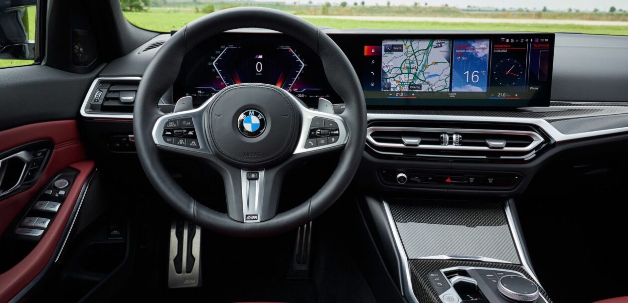 While the exterior changes are mild, the cabin’s updates are not. Long gone is iDrive 7 and its smaller LCD screens, and in is a large curved display powered iDrive 8. For the most part, the 3 Series Facelift gets the same interior as the BMW i4. But unlike the i4, the 2023 3 Series ditches the old and beefy gear shifter for the iX’s toggle switch. A subtle update to the interior is one that does make a significant difference and that’s the piece of dash trim that’s now taller, more sculpted, and more premium looking than in the pre-facelift.