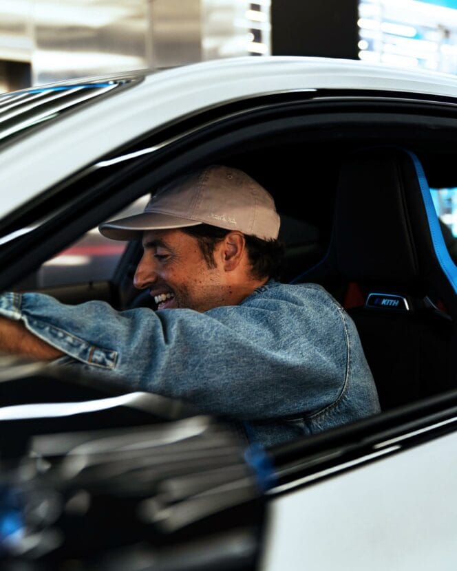 NYC-based KITH is preparing for a second car collaboration with BMW. KITH’s owner Ronnie Fieg has just teased the collaboration on his Instagram account. Fieg also sat down with BMW-M Magazine to talk about his personal connection with BMW and share his car collection. His previous collaboration with BMW delivered 150 units of the M4 Competition which were sold out in minutes. Fieg wouldn’t reveal yet which BMW model he worked on next, but in one of his Instagram posts he’s seen wearing a varsity jacket with a BMW Elektro-Auto text.