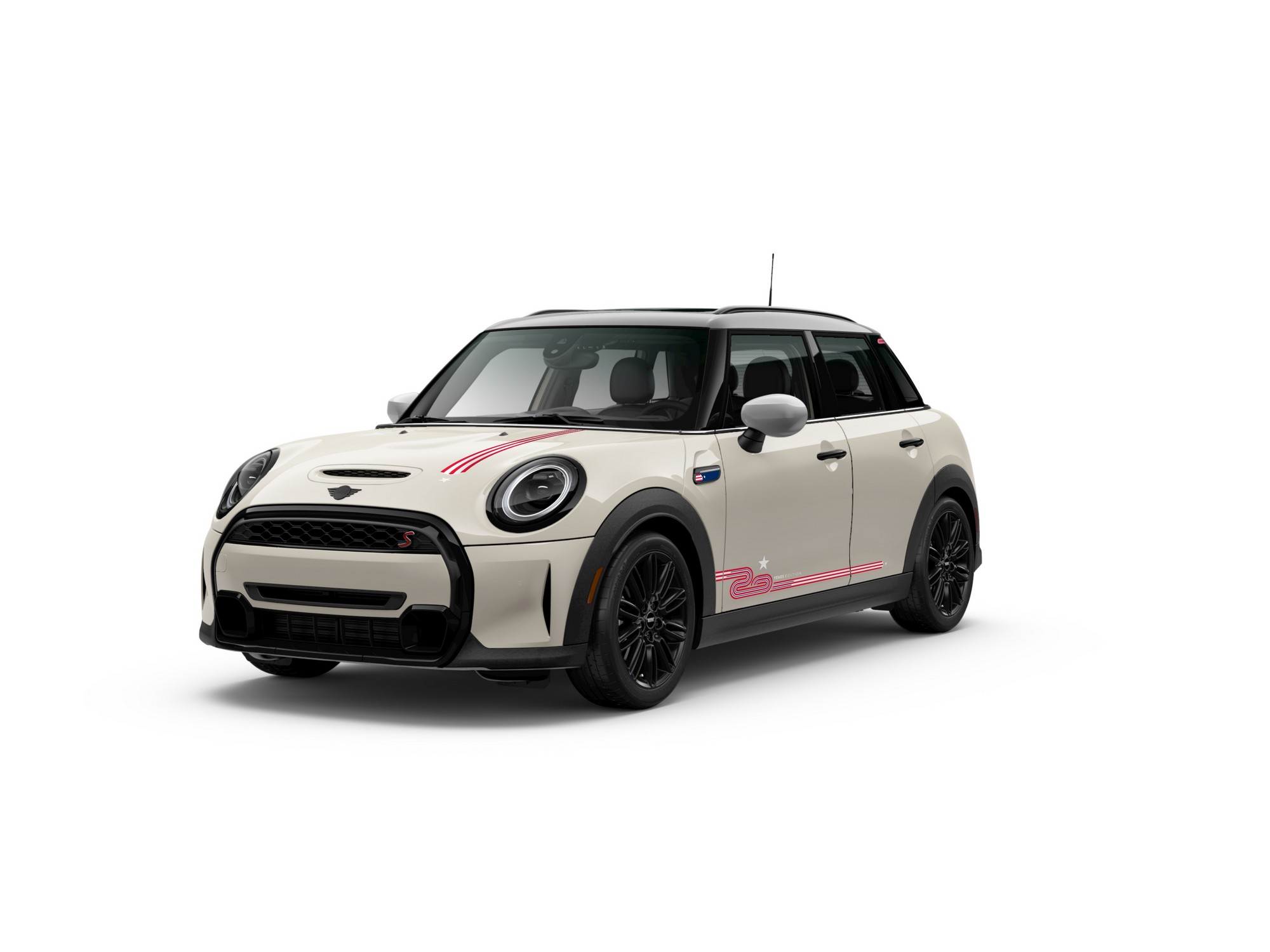 Much like the original MINI launched in 2002 in the US, the special hot hatchback comes painted in Chili Red. Alternatively, you can go for Island Blue or Pepper White. We’re being told these three colors have been chosen since they illustrate both the American and British flags. Regardless of the one you go for, all cars have the side mirror caps and the roof finished in silver. In addition, they all get a black trim and patriotic red, white, and blue stripes.