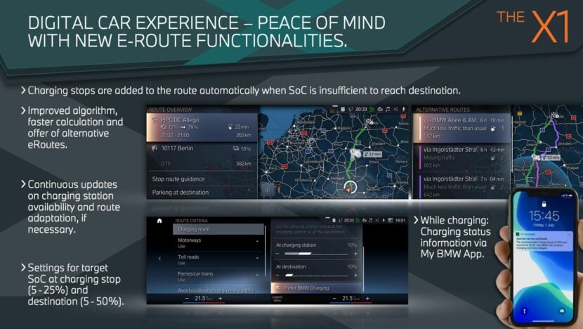 Another novelty in the BMW iX1 is the new E-Route. And this is how it works. If the State of Charge is insufficient to reach the destination, the navigation system will automatically add charging stops along the route. I haven’t had a chance to sample this system, but BMW assures me that it works flawlessly.