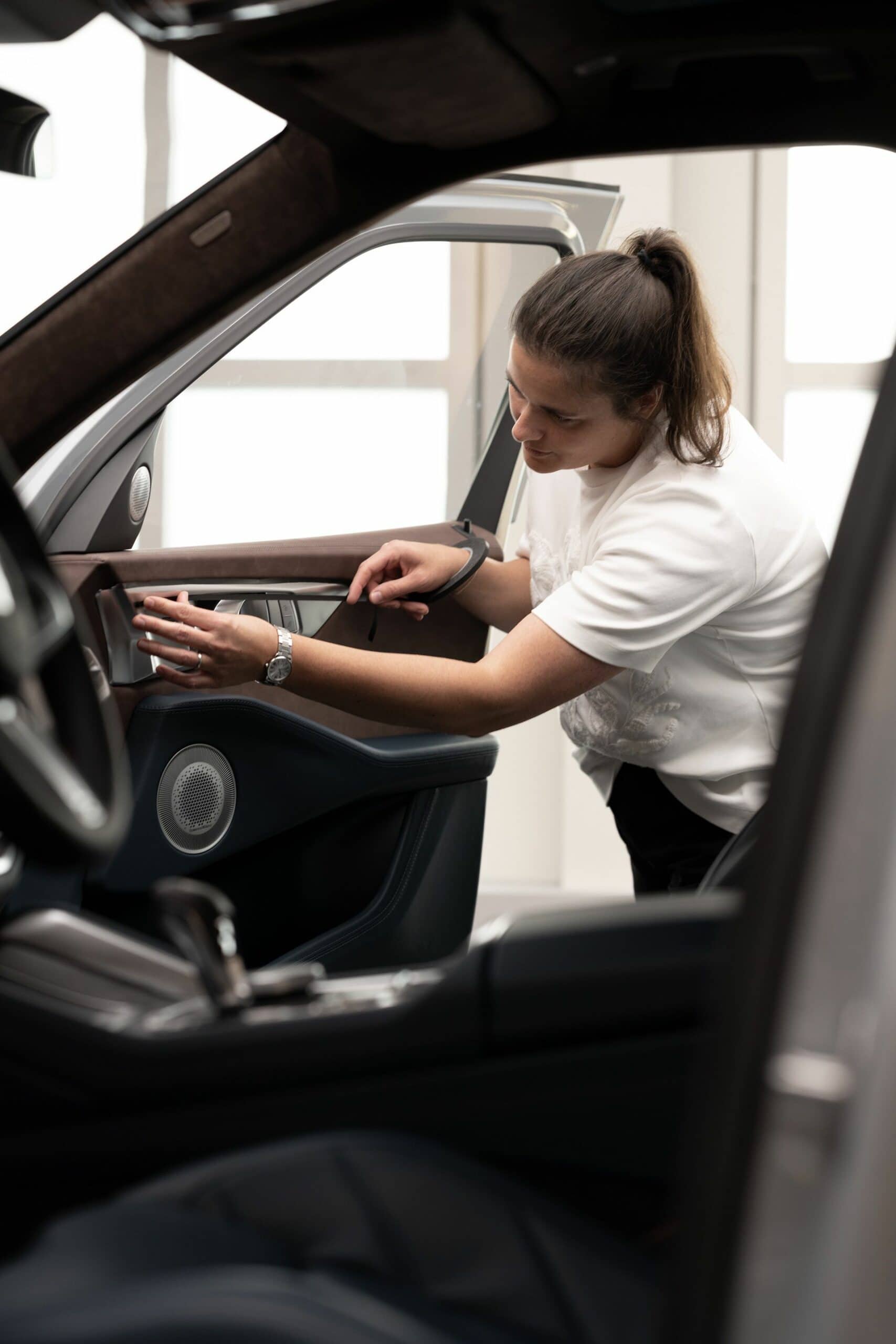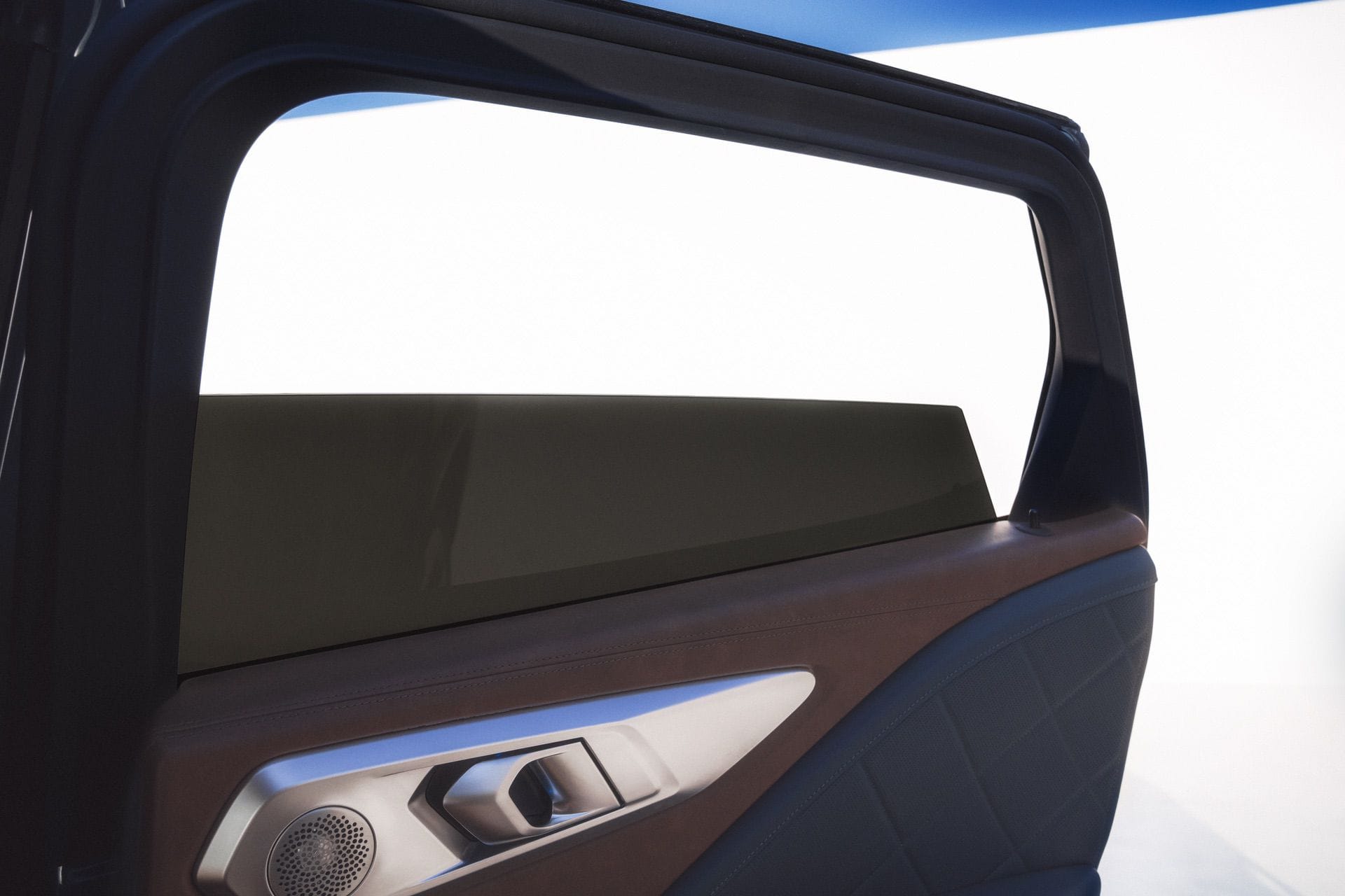 Above all passengers is a new “3D prism-sculpted” Alcantara headliner, which also comes with LED lighting. So as to not step on Rolls-Royces toes, the BMW XM doesn’t use its headliner lighting to recreate any starry nights. Instead, it borders the headliner, to create what BMW calls a “photo mount” border. Those lights can also change based on driving mode, the welcome and goodbye modes, and when the driver starts the car. That LED border is supposed to give passengers a sense of mood lighting, more than anything else.