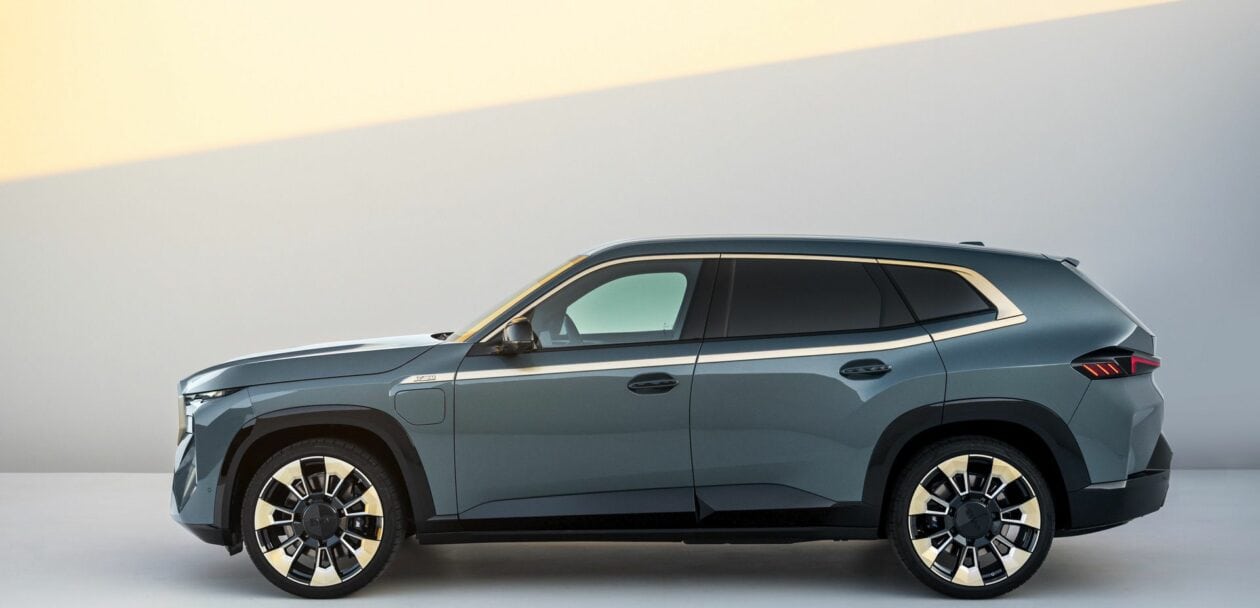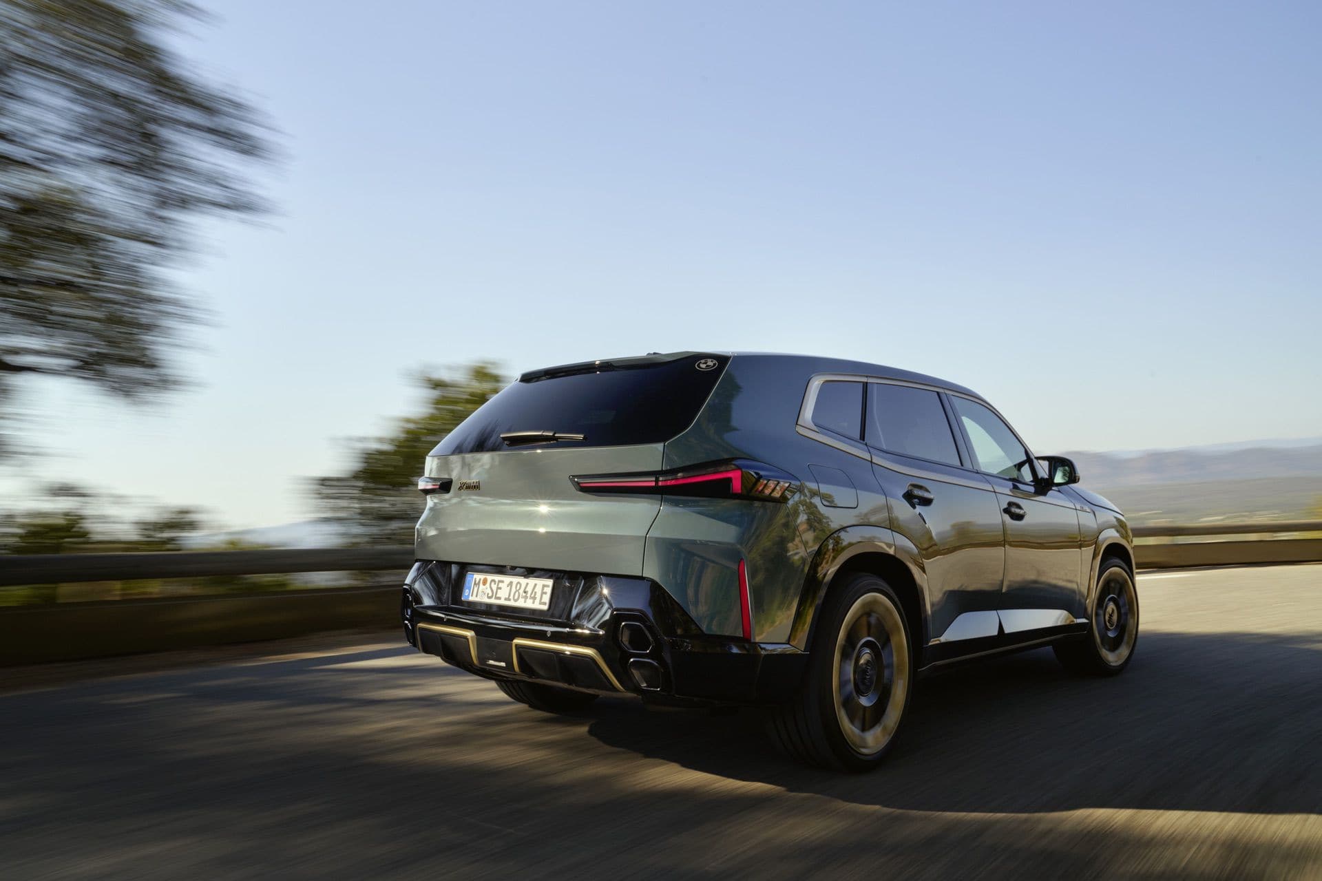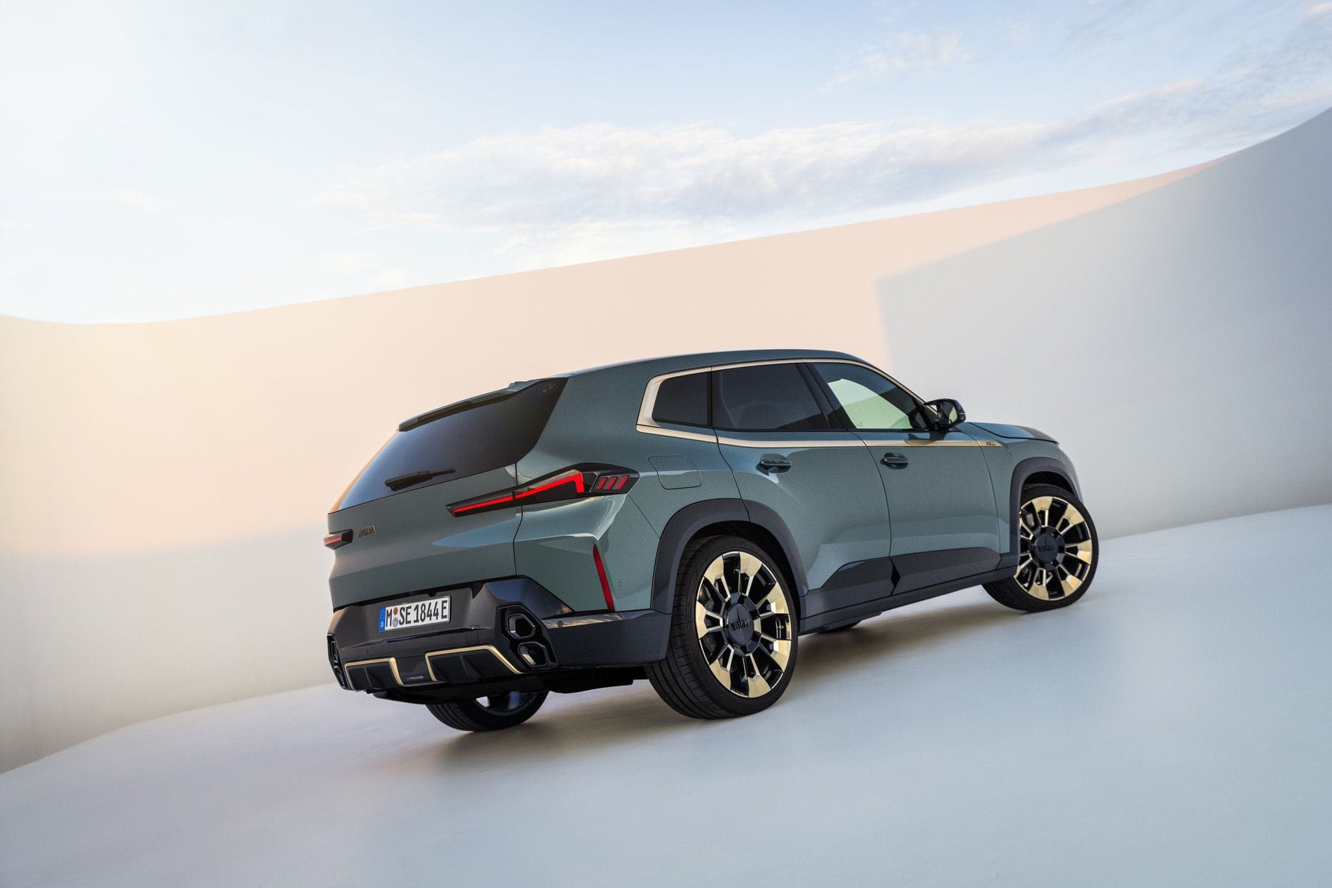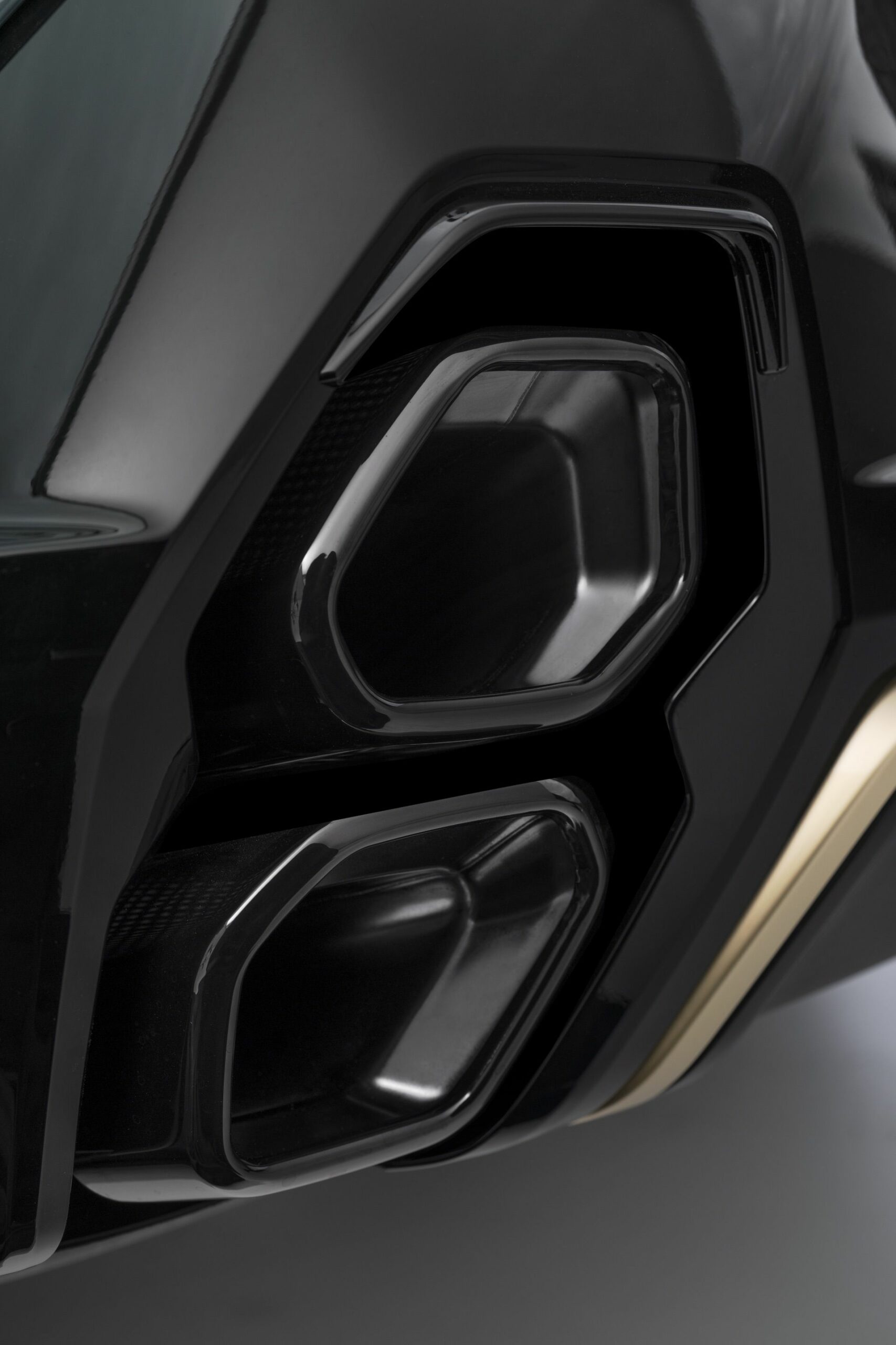 BMW XM can be ordered with a NightGold Metallic exterior trim. If this option is specified, the accent band along the sides of the vehicle, the BMW M kidney grille’s outer border, and the surrounds for the diffuser elements at the rear are finished in NightGold.