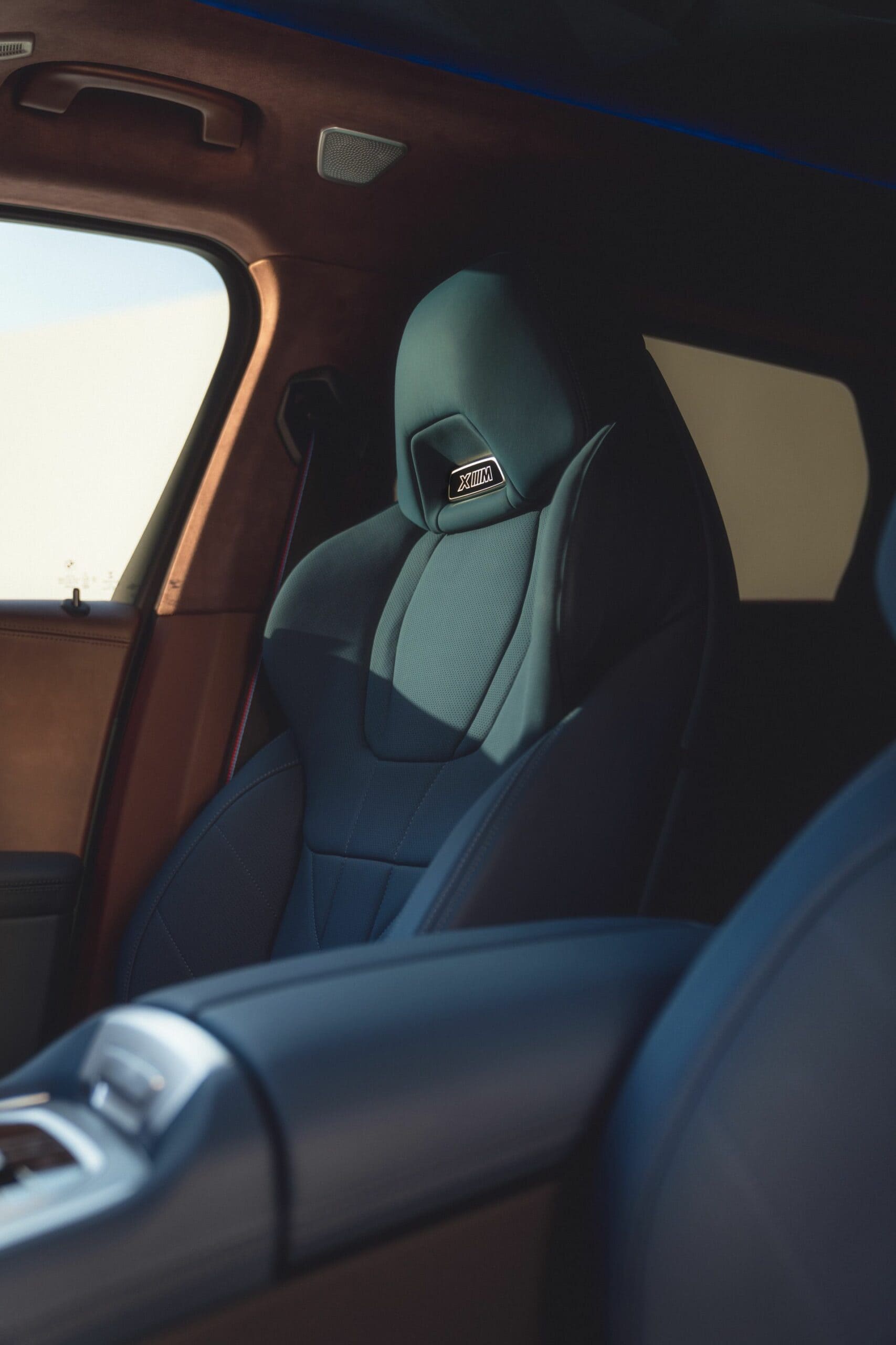 However, the headline news is two-fold: the back seat and the leather. Since when is the back seat more important news than the front seat, in an M car? Since now, apparently. In the back of the BMW XM, passengers are greeted to a more lounge-like atmosphere, with rear seats that allow the side two passengers to look at each other, creating a more conversational environment. While there is a middle seat, and BMW claims it’s large enough for a passenger, the XM is really about seating two people in comfort in the back. Even the rear seat bottoms are angled in such a way to create a more comfortable, relaxed experience.