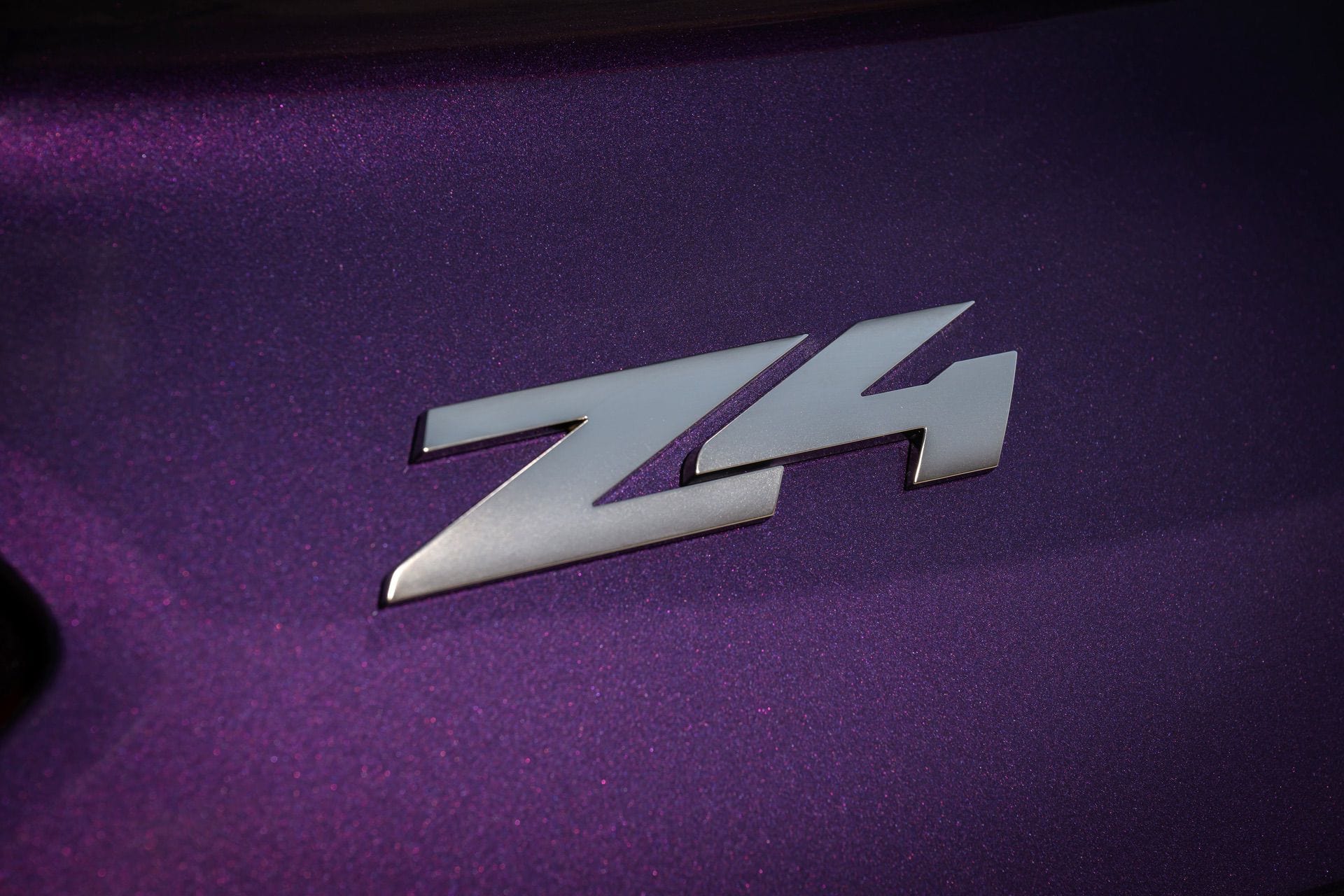 In the United States, the M Sport Package becomes standard on the Z4 sDrive30i to lend the base model a slightly more aggressive appearance. For the 2023MY, the kidney grille has a new look by incorporating larger honeycombs to give the soft-top convertible a slightly meaner front end. Pictured here is the hotter M40i painted in Thundernight, one of the three new metallic colors available for the Z4 along with Skyscraper Grey and Portimao Blue.