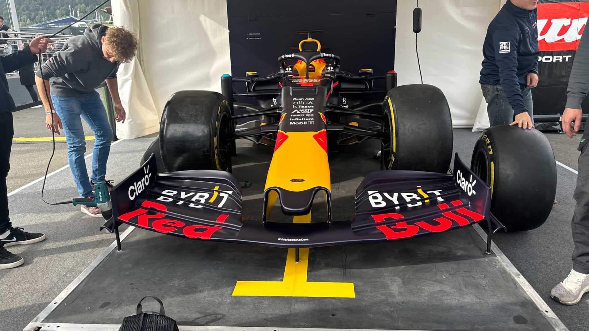One such activity was a competitive Formula 1 tire change game, featuring a real F1 car tire change. It was actually the front of a Red Bull F1 car, with the real air-powered wheel guns, and teams of either one or two would have to see who could swap tires the fastest. It was a lot of fun watching beer-filled fans try and beat each other at changing the tires on an F1 car.