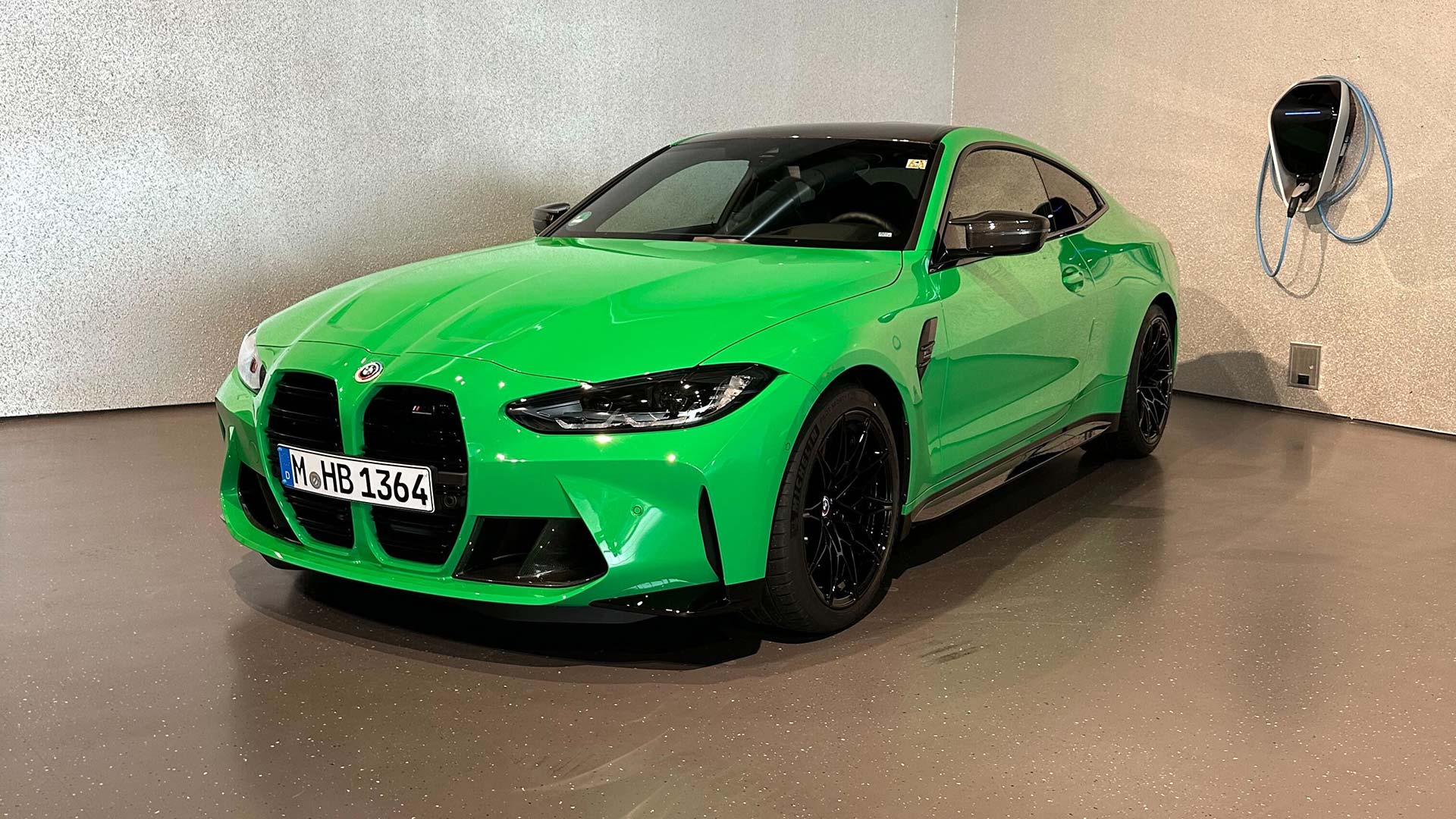 When I arrived at BMW M, I was greeted kindly and escorted to a room that can only be described as the garage of a Bond villain’s lair. Concrete walls, mood lighting, and two rows of Individual-painted M cars made it seem like I’d snuck into the base of a monocle-clad megalomaniac. Then, I was handed the keys to a bright green M4 Competition xDrive, given a toll pass for the Austrian border, an M engineer politely switched the iDrive to english for me, and I was on my way.