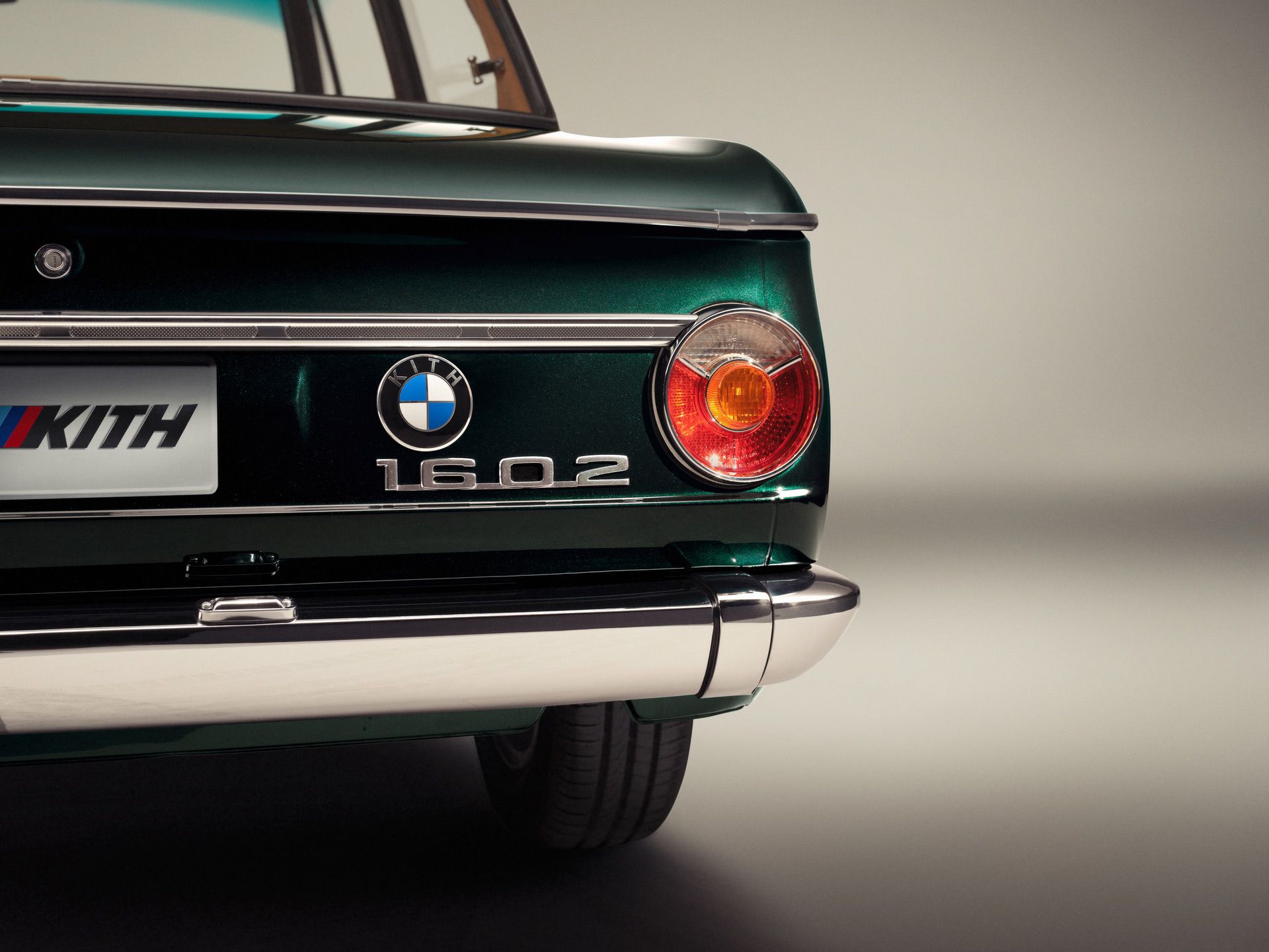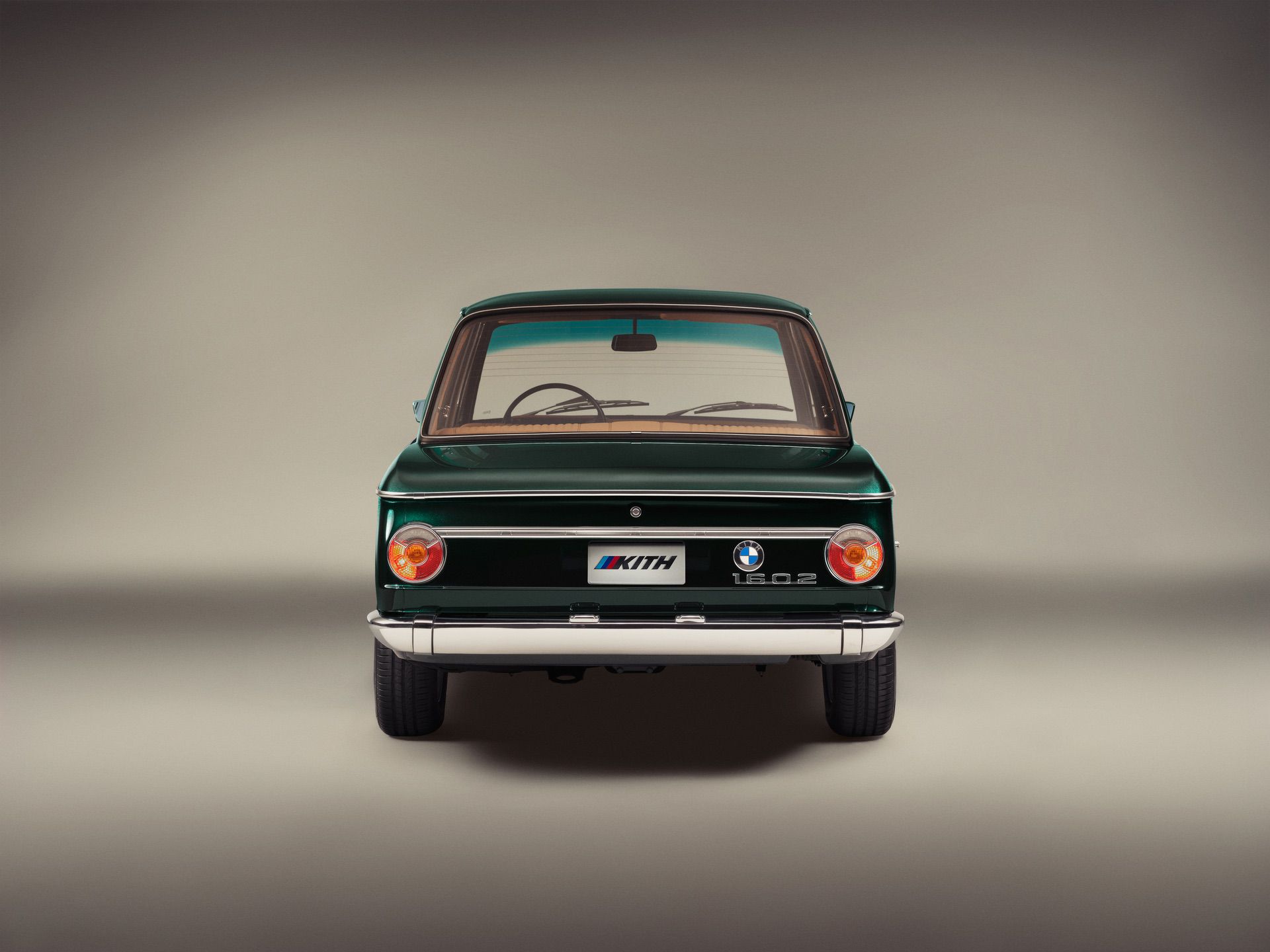 The luxurious shade of green is paired with a caramel interior. In the 1972 BMW 1602 Elektro by Ronnie Fieg, the leather of the seats is embossed with the Kith lettering, as are the leather inserts in the footwells for the driver and front passenger. The redesigned roundel can also be found on the wheels.