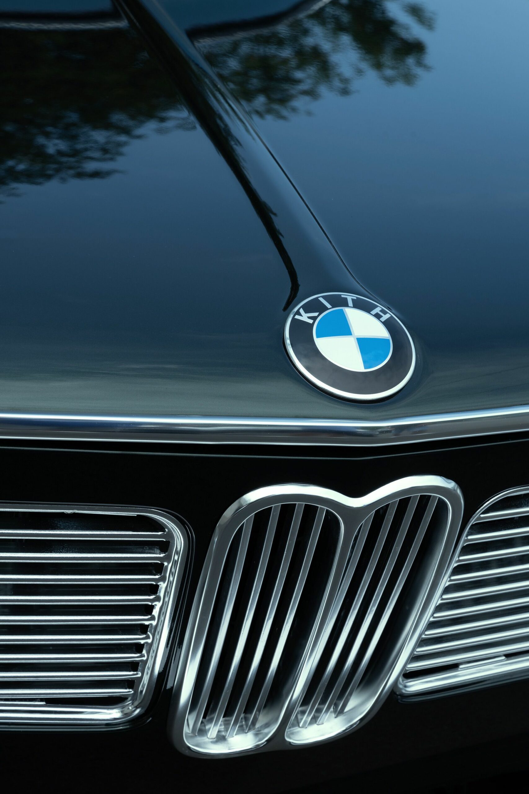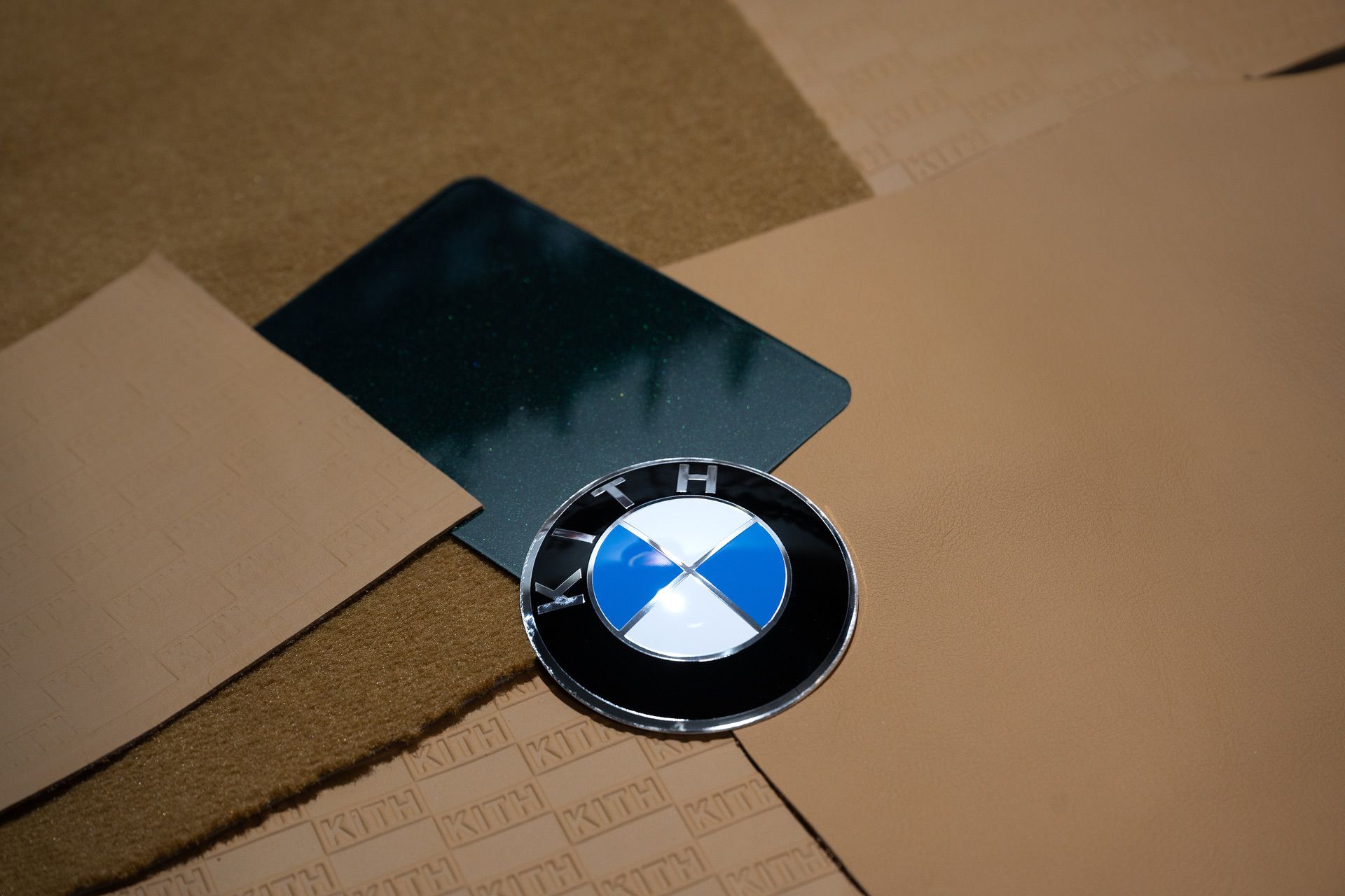 As you’d expect, the roundel on the 1972 BMW 1602 by Ronnie Fieg gets a unique design as well. The BMW letters were swapped for Kith. A similar logo in black and white with the subline “Elektro-Auto” can be found as an engraving on the lid of the cup holder in the BMW i4 M50 by Kith.