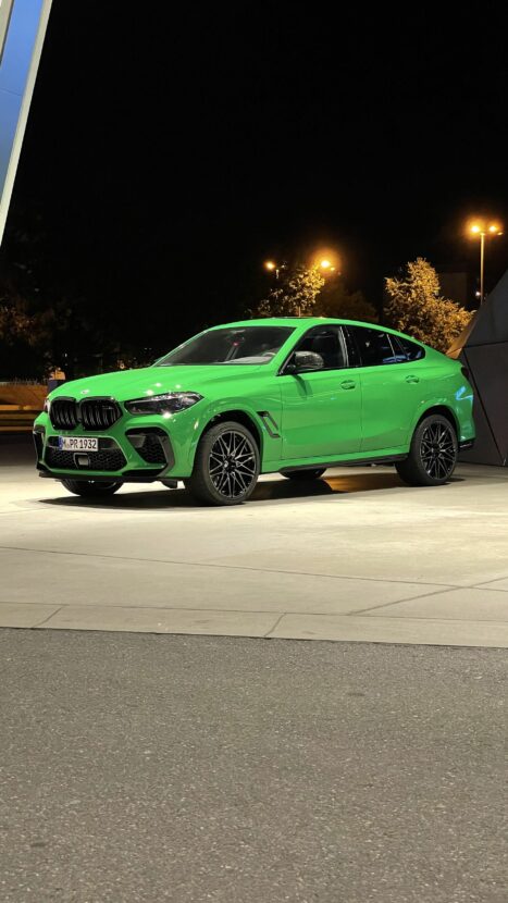 Signal Green is one of the most vibrant and polarizing colors BMW offers today. Part of the BMW Individual offering, Signal Green has built a name for itself after being featured on different M products. Today, we see the shinny green on a BMW X6 M Competition. The power SUV is displayed at the iconic BMW Welt, in the heart of Munich. The landmark hosts millions of visitors every year and lays across the equally iconic BMW four-cylinder building.