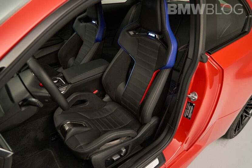 In the United States, the 2023 M2 will get a Carbon Package at an additional cost. It encompasses M Carbon bucket seats, which are fully electric and heated. The body-hugging seats come with integrated headrests featuring illuminated M2 badges. Compared to the regular M Sport seats, the optional ones are approximately 24 pounds (nearly 11 kilograms) lighter thanks to carbon fiber-reinforced plastic (CFRP) in the structural elements of the seat bottom and backrest.