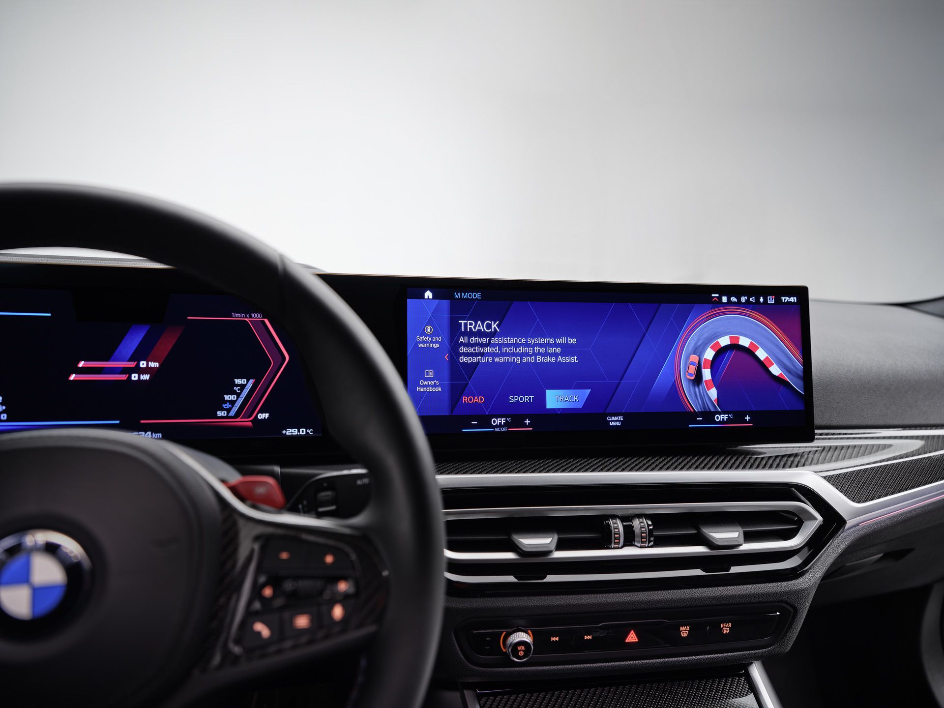 There is also an optional Carbon Package for the US market which adds the M carbon roof, M Carbon bucket seats in Black Full Merino Leather with M Color Highlight and Carbon fiber trim. Three-zone climate control and ambient lighting are standard, which can’t be said about many Bimmers.